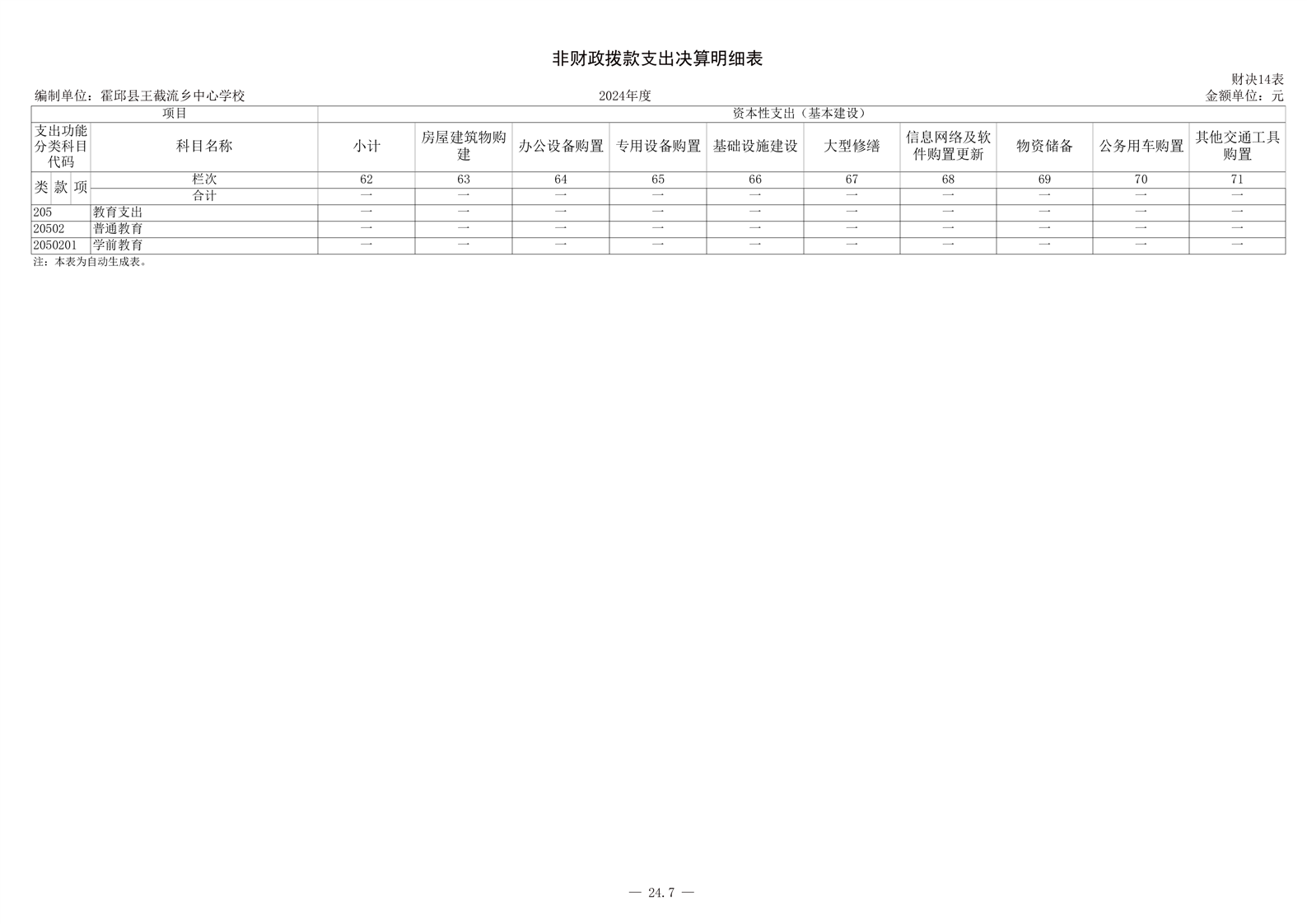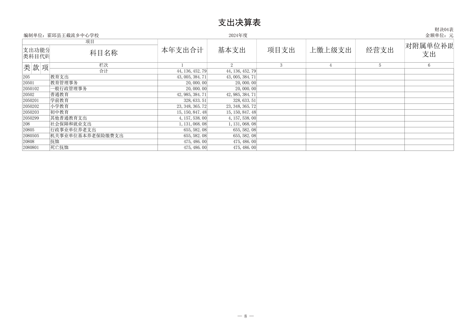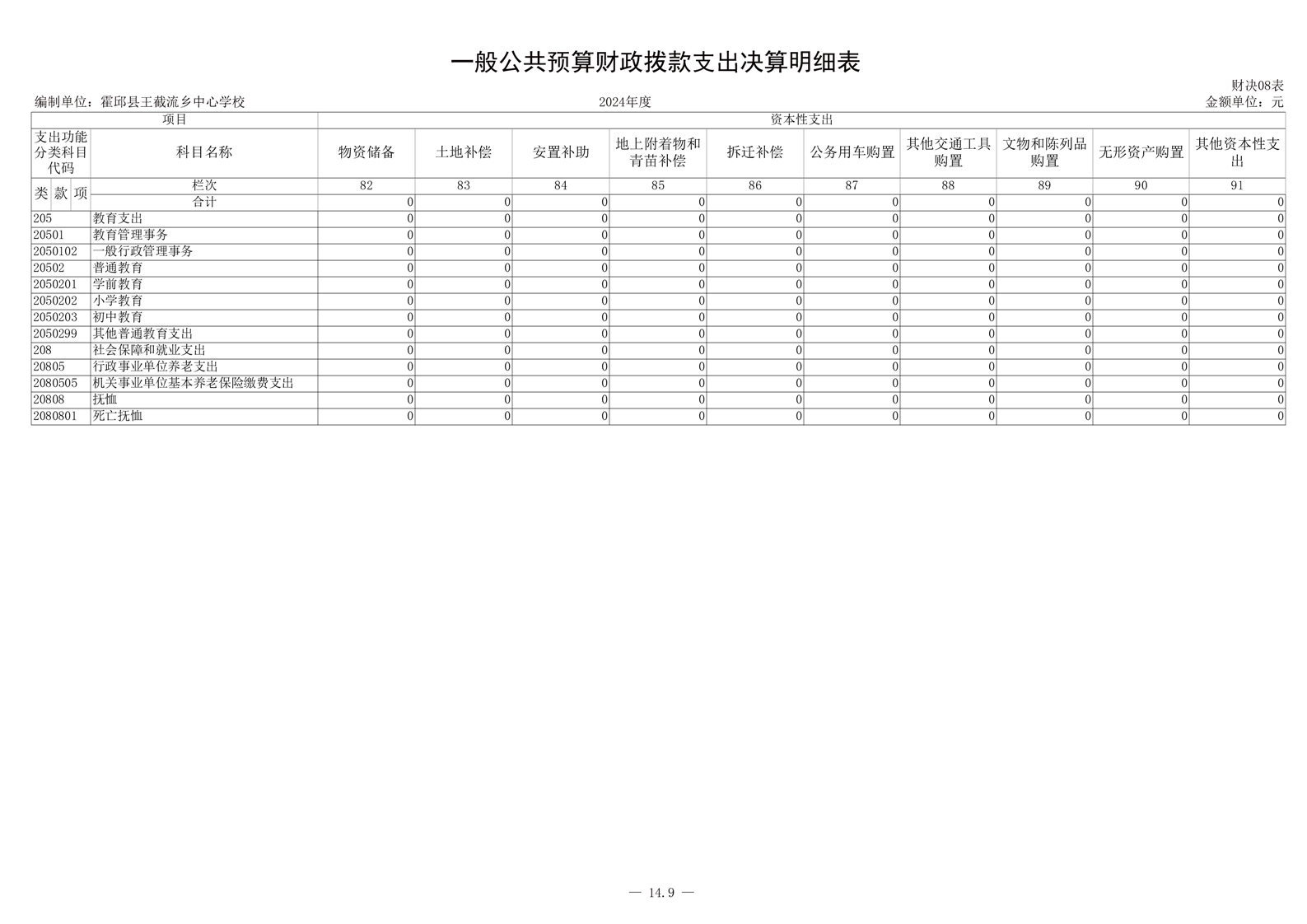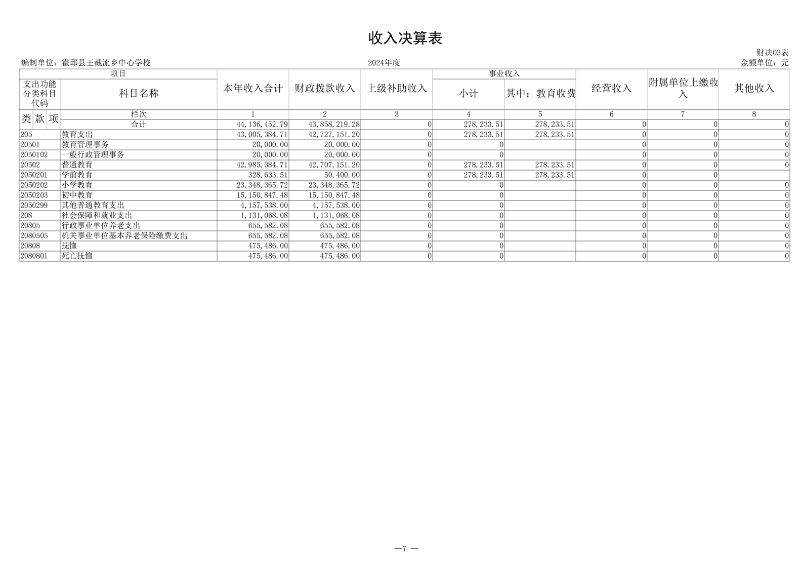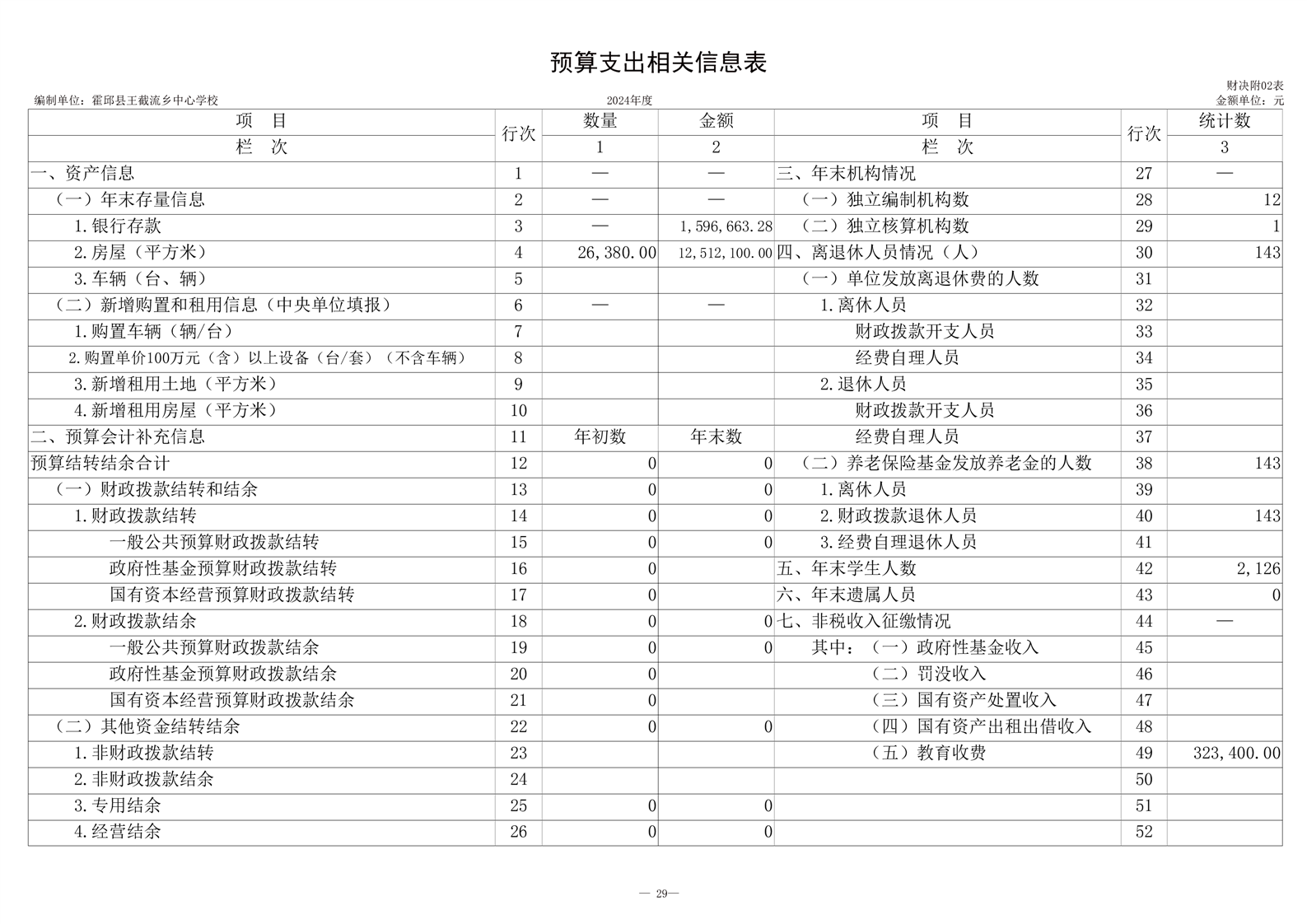 霍邱县王截流乡中心学校 2024 年度单位决算