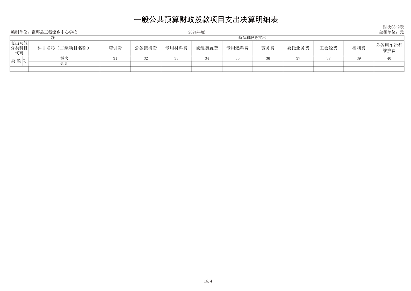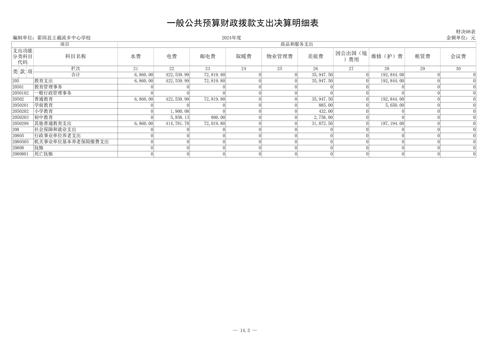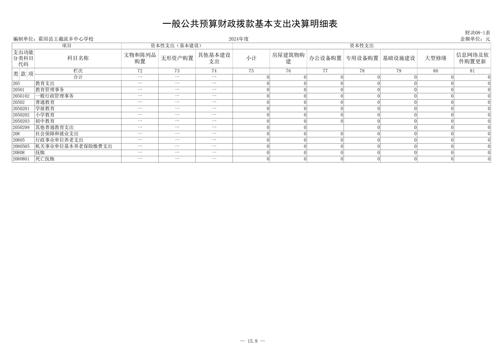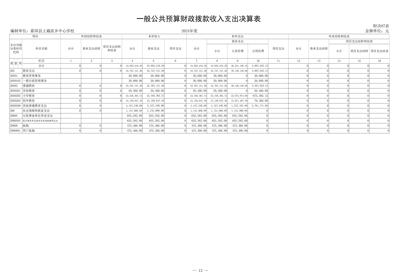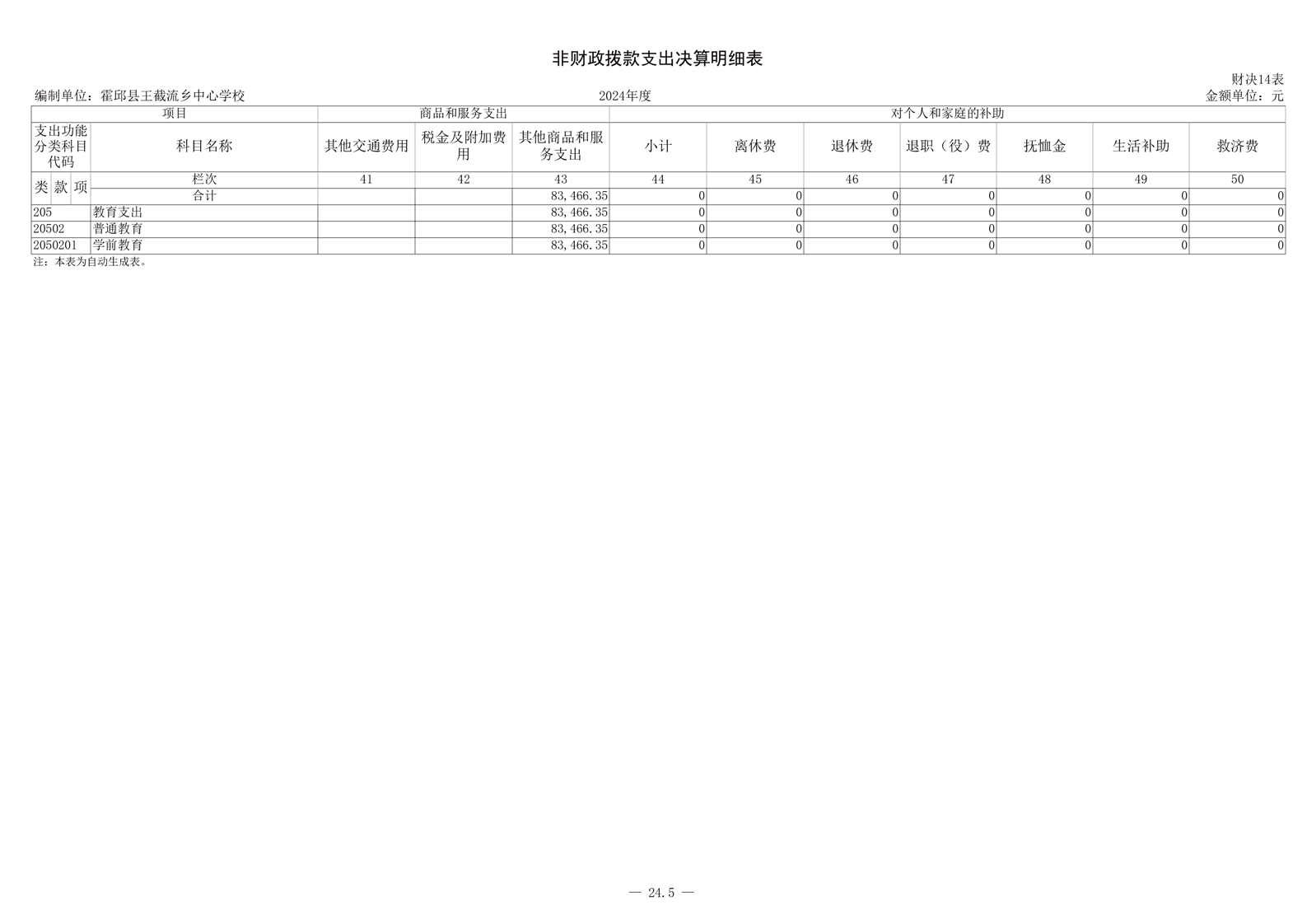 霍邱县王截流乡中心学校 2024 年度单位决算