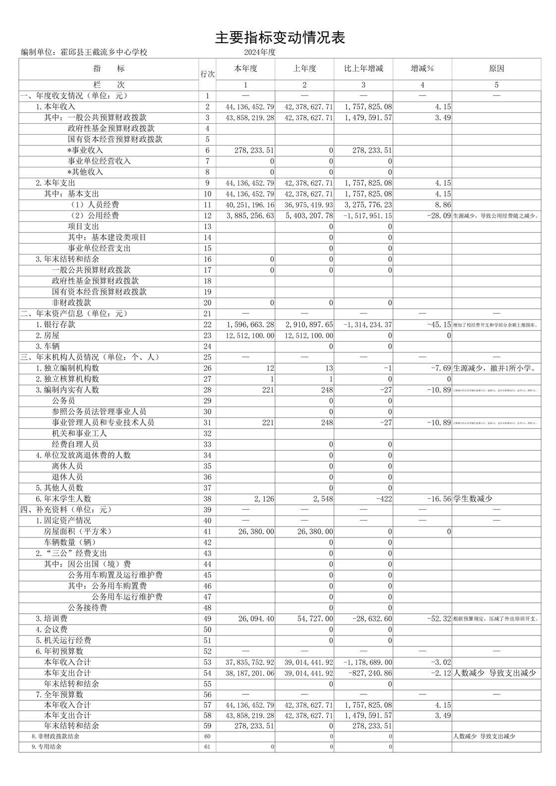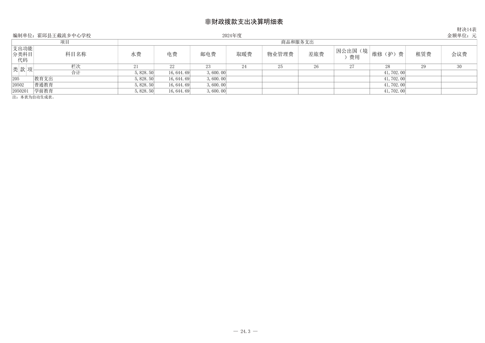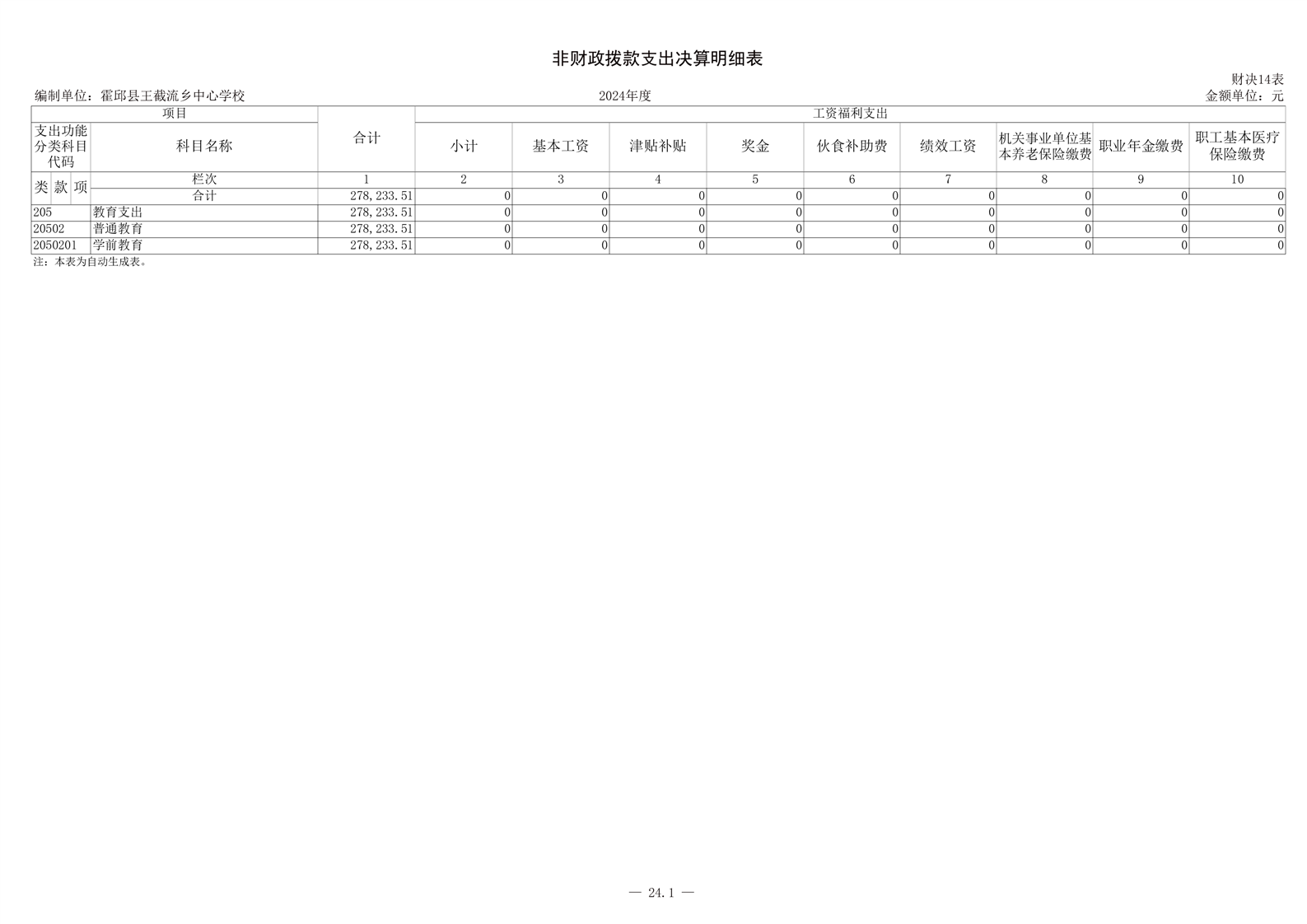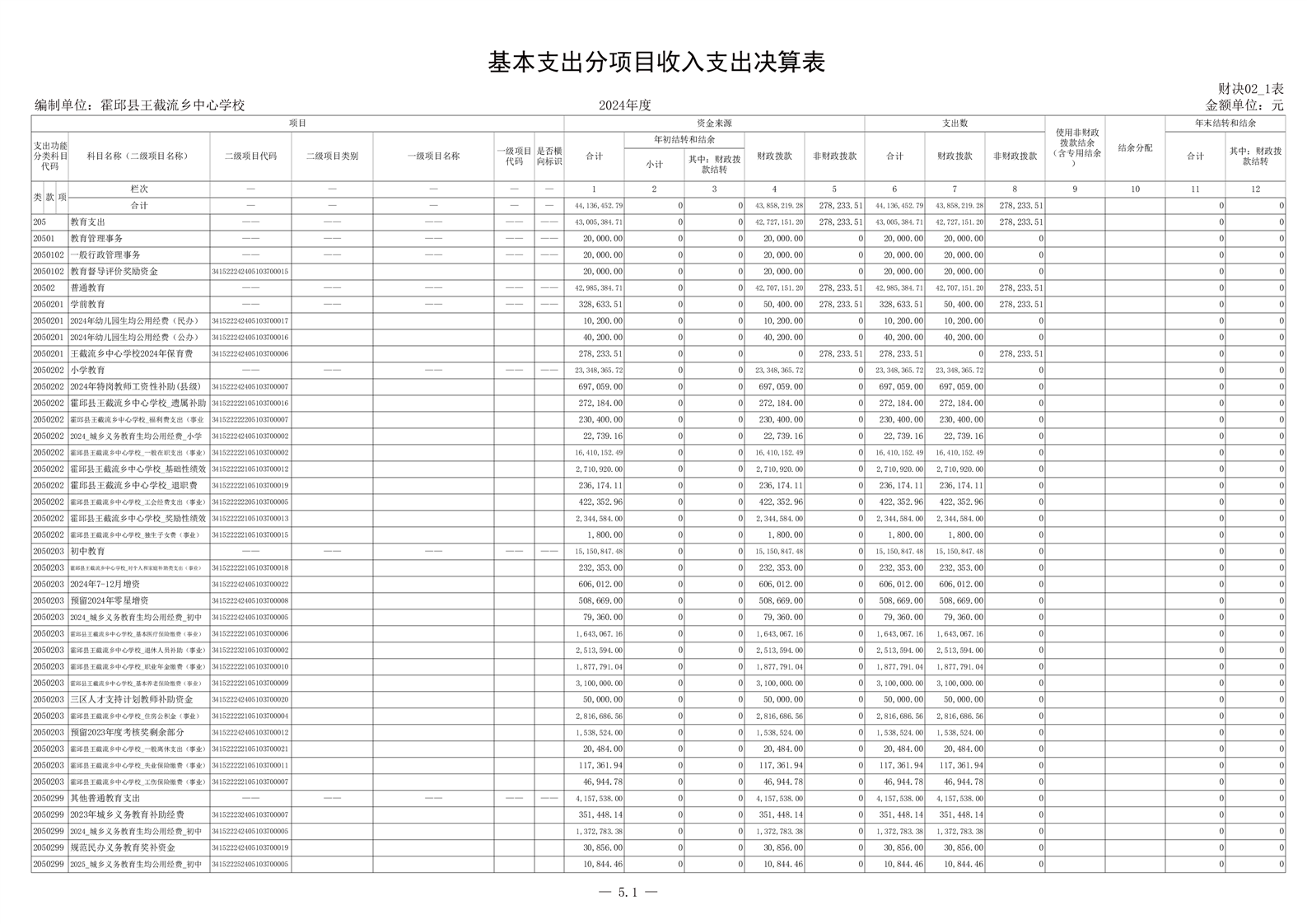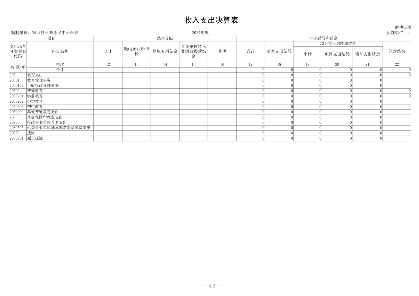 霍邱县王截流乡中心学校 2024 年度单位决算