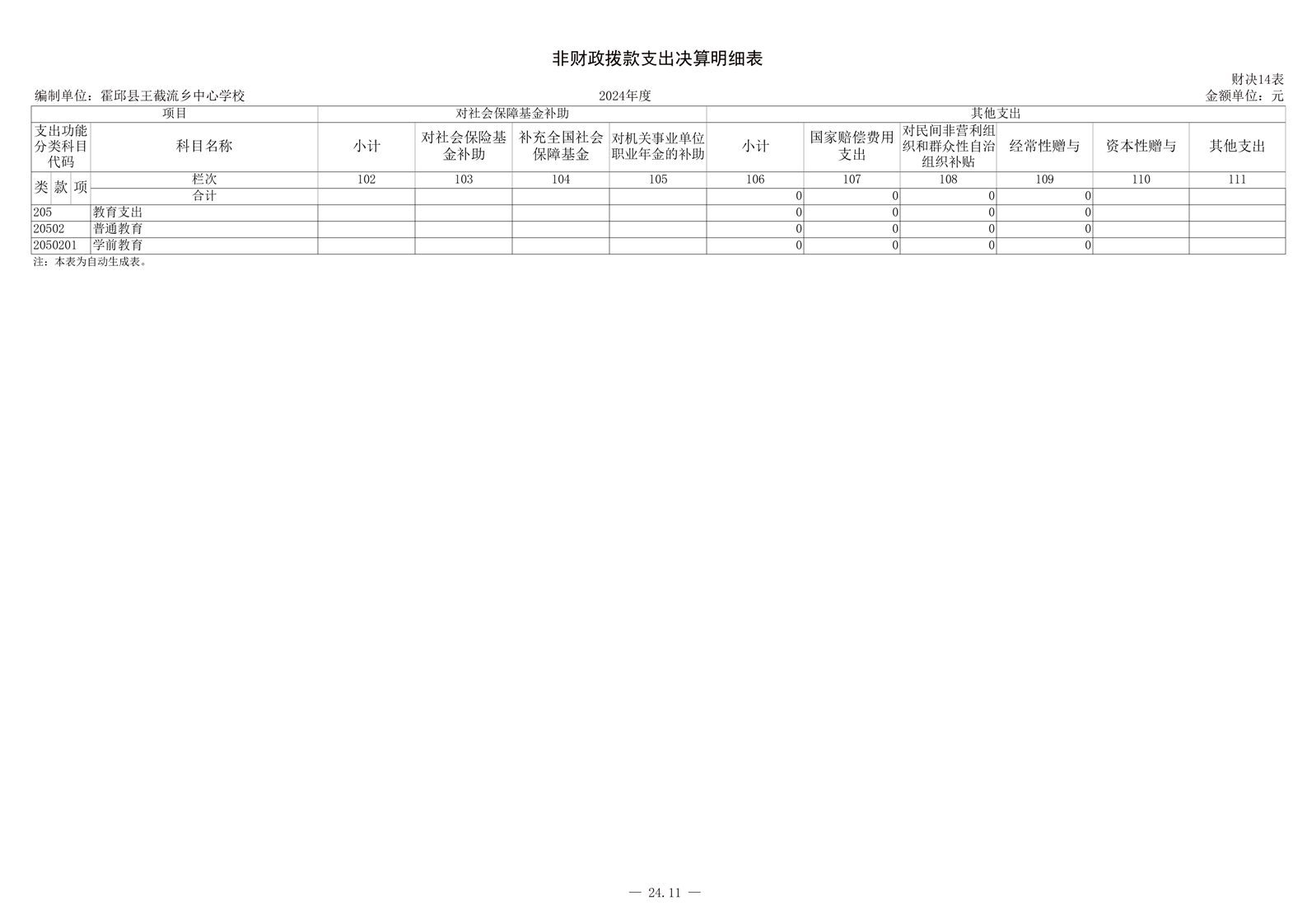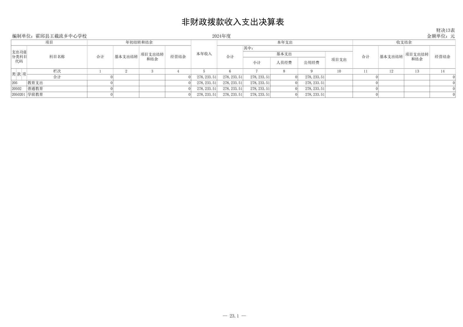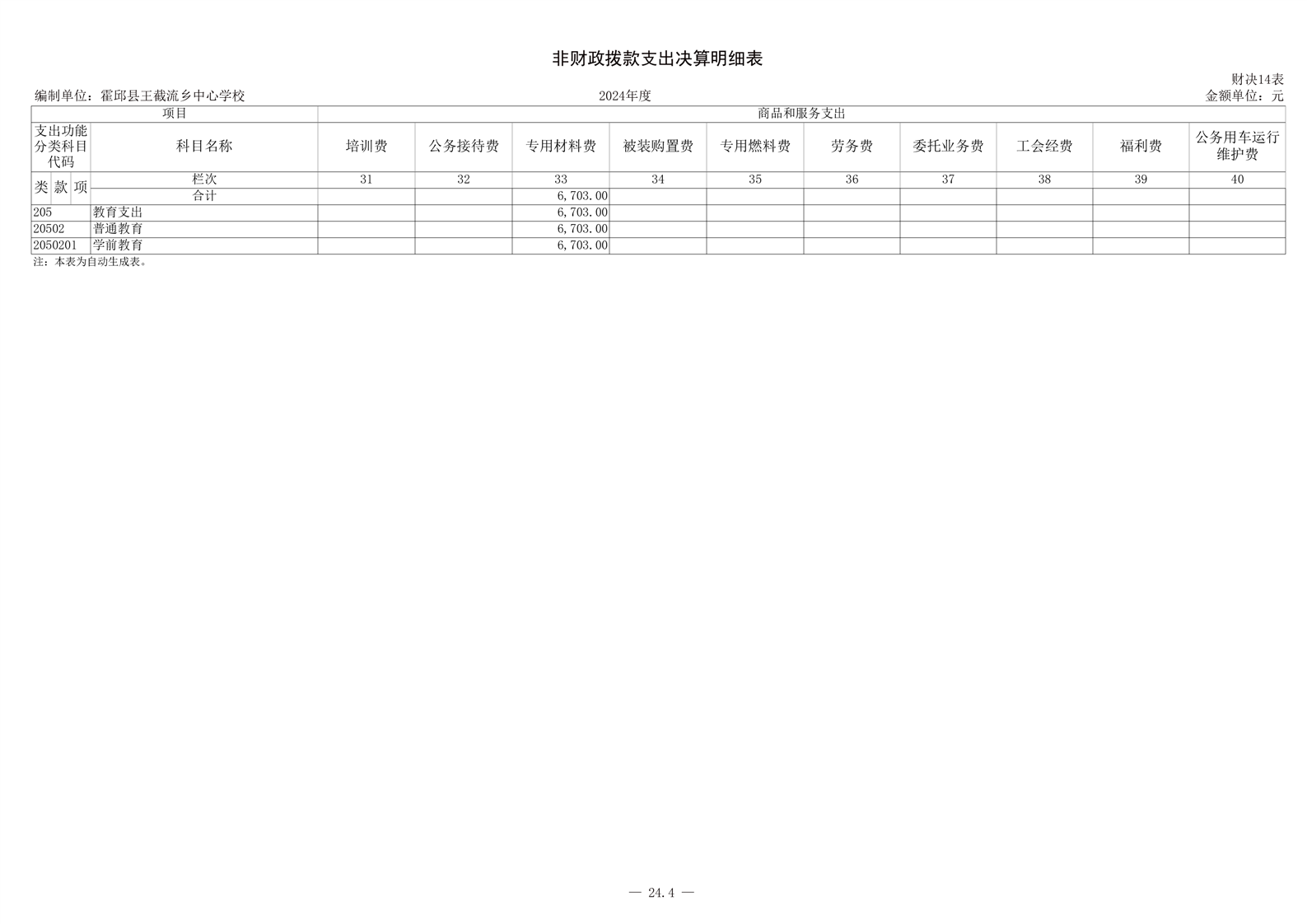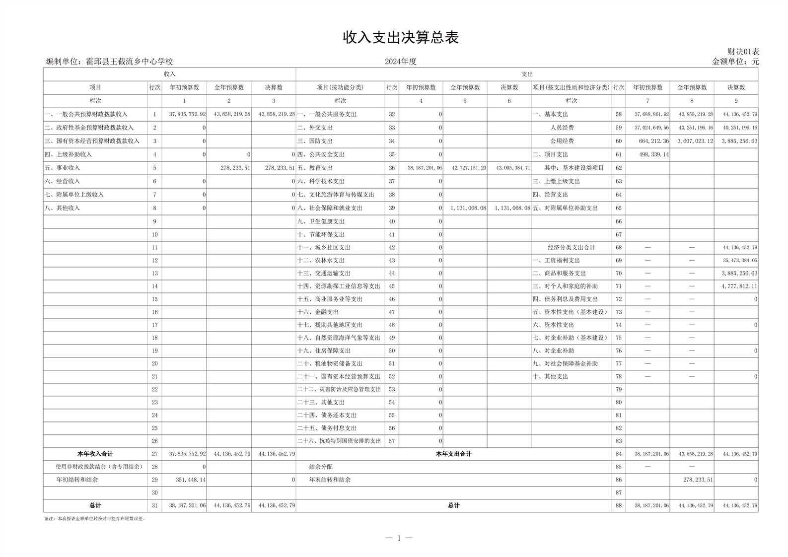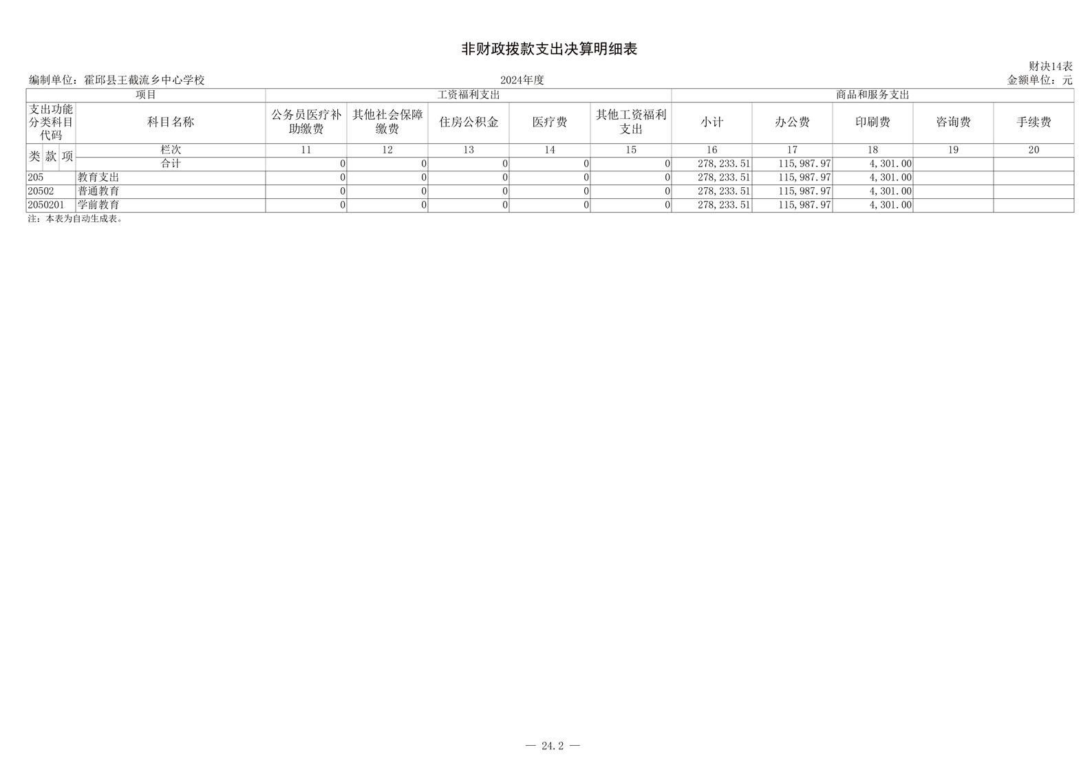 霍邱县王截流乡中心学校 2024 年度单位决算