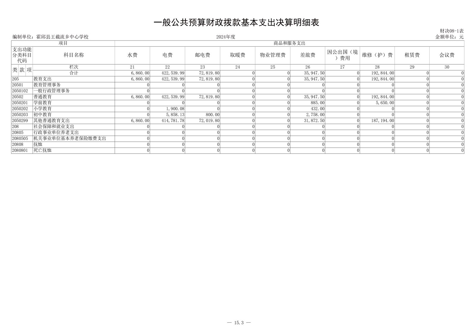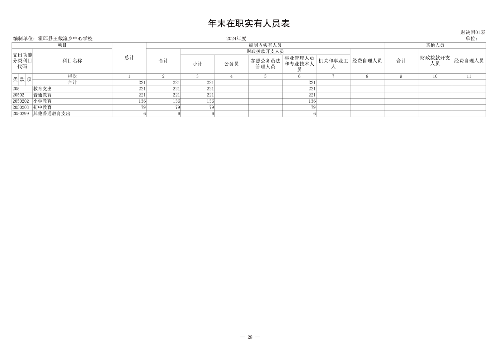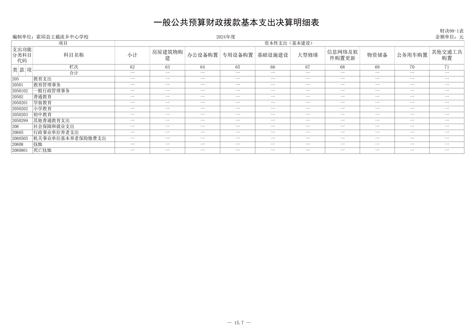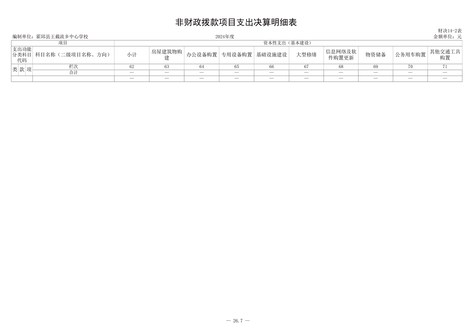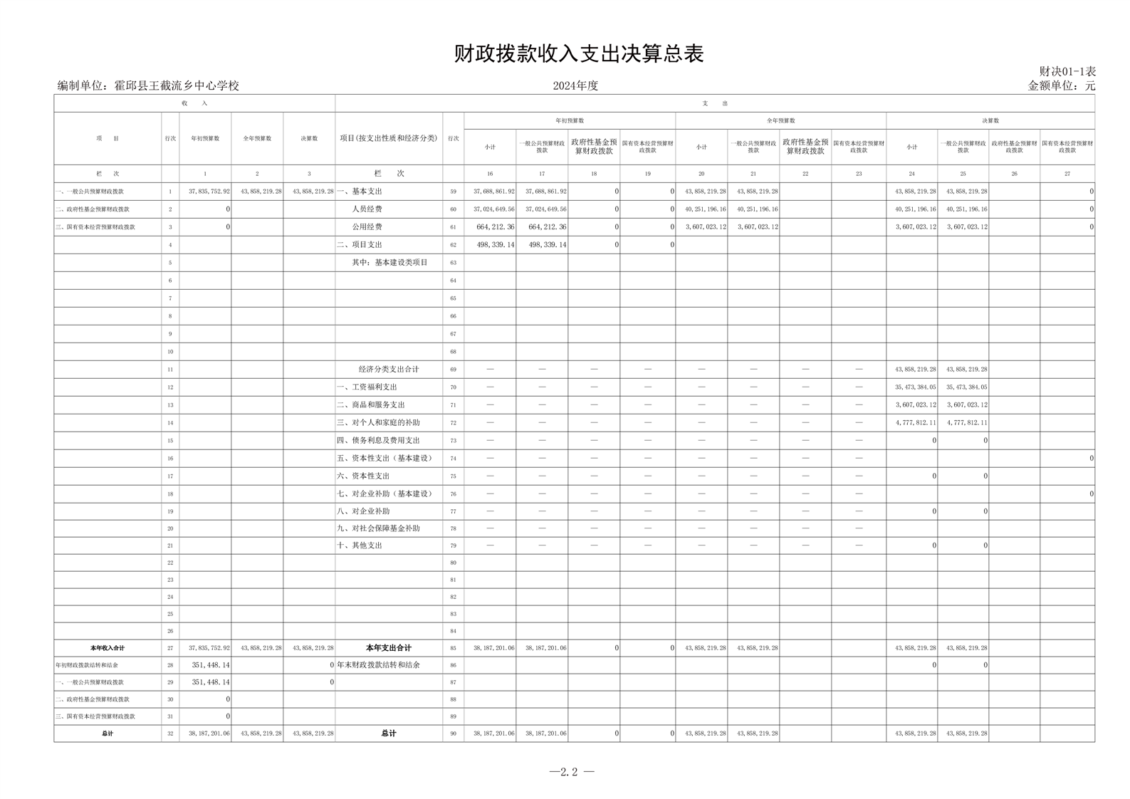 霍邱县王截流乡中心学校 2024 年度单位决算