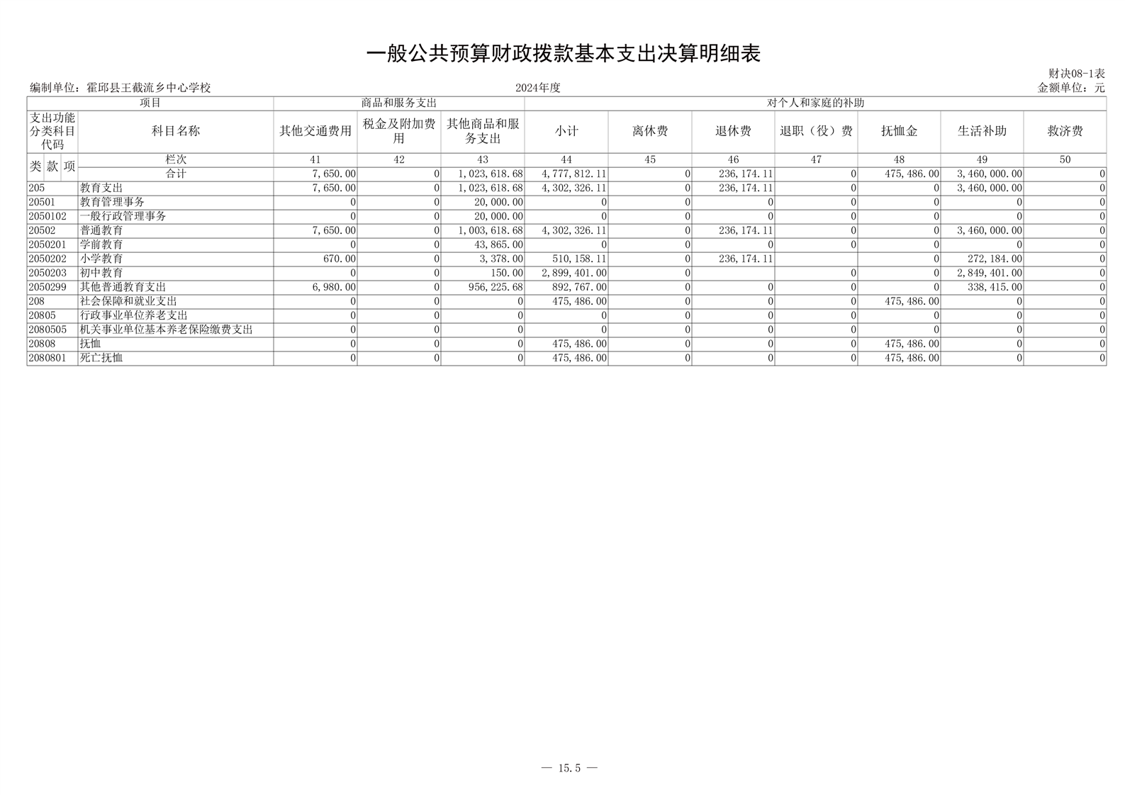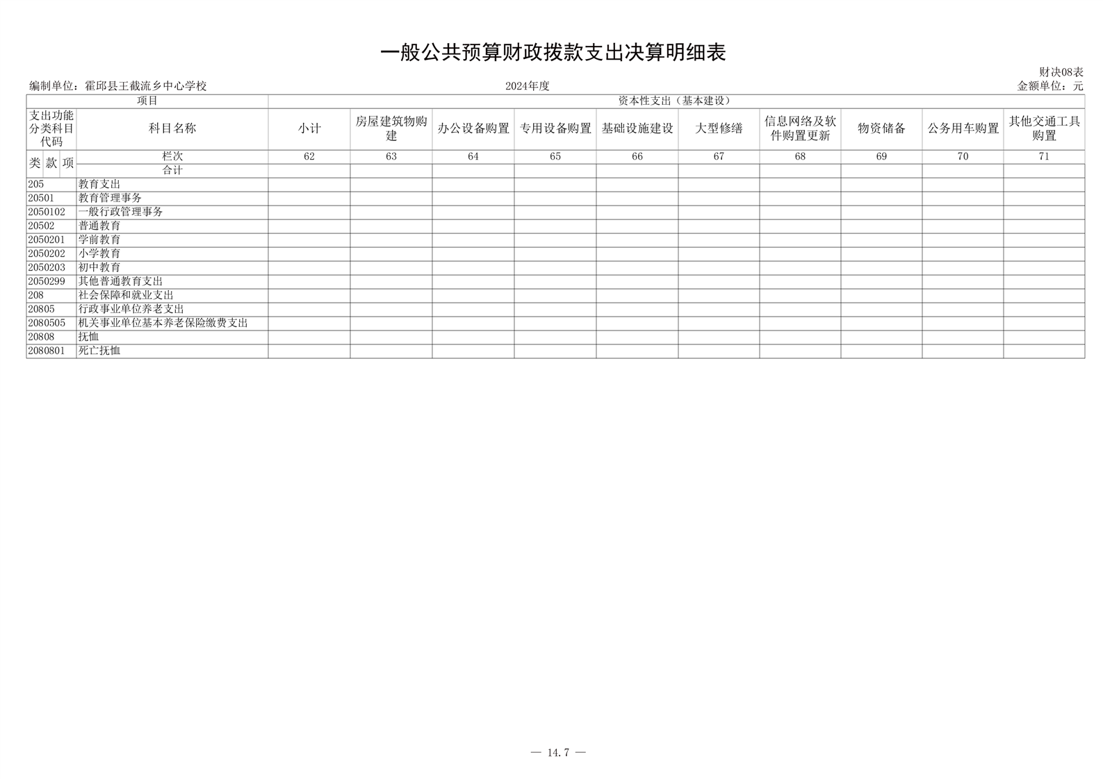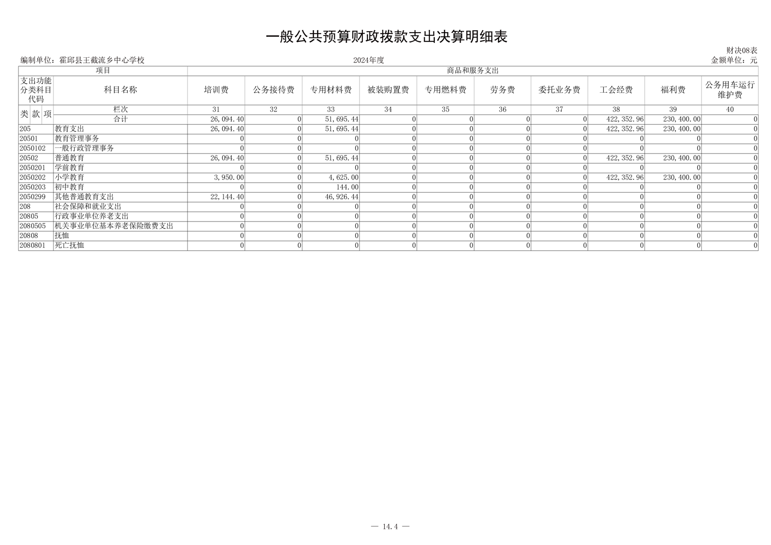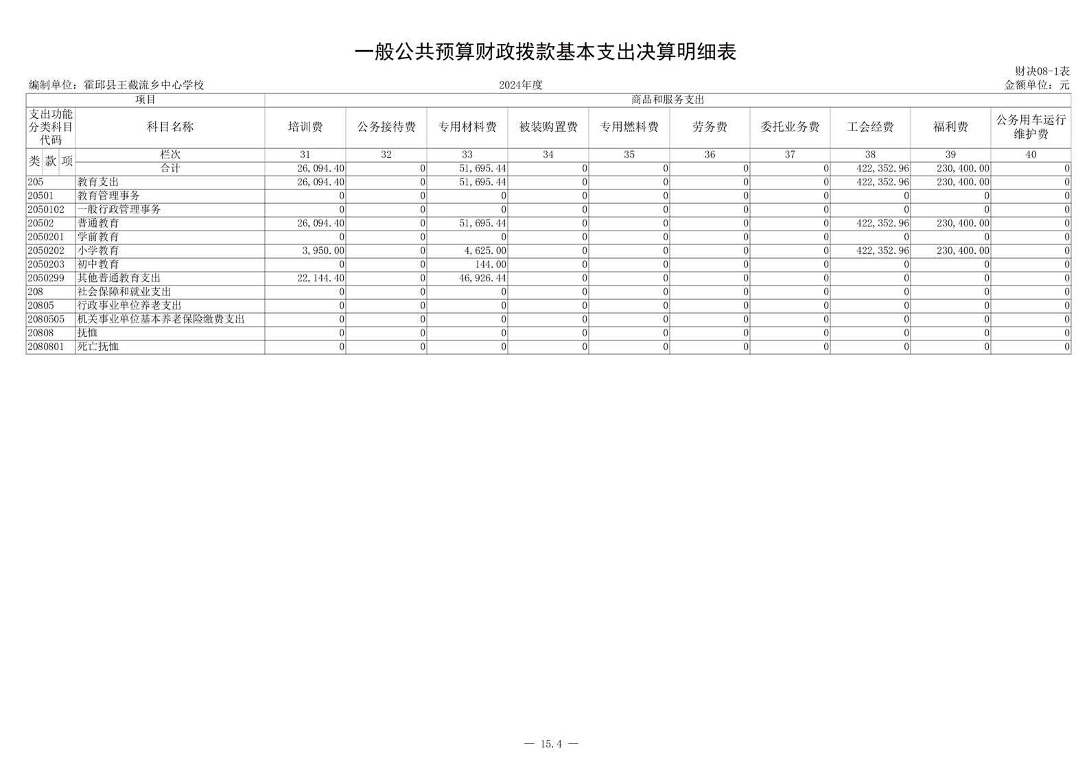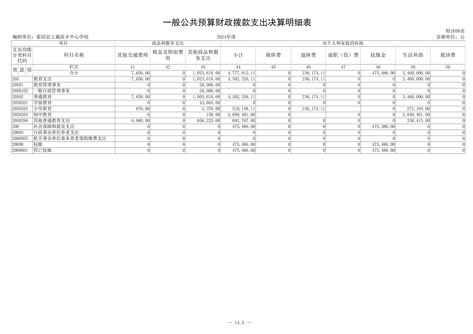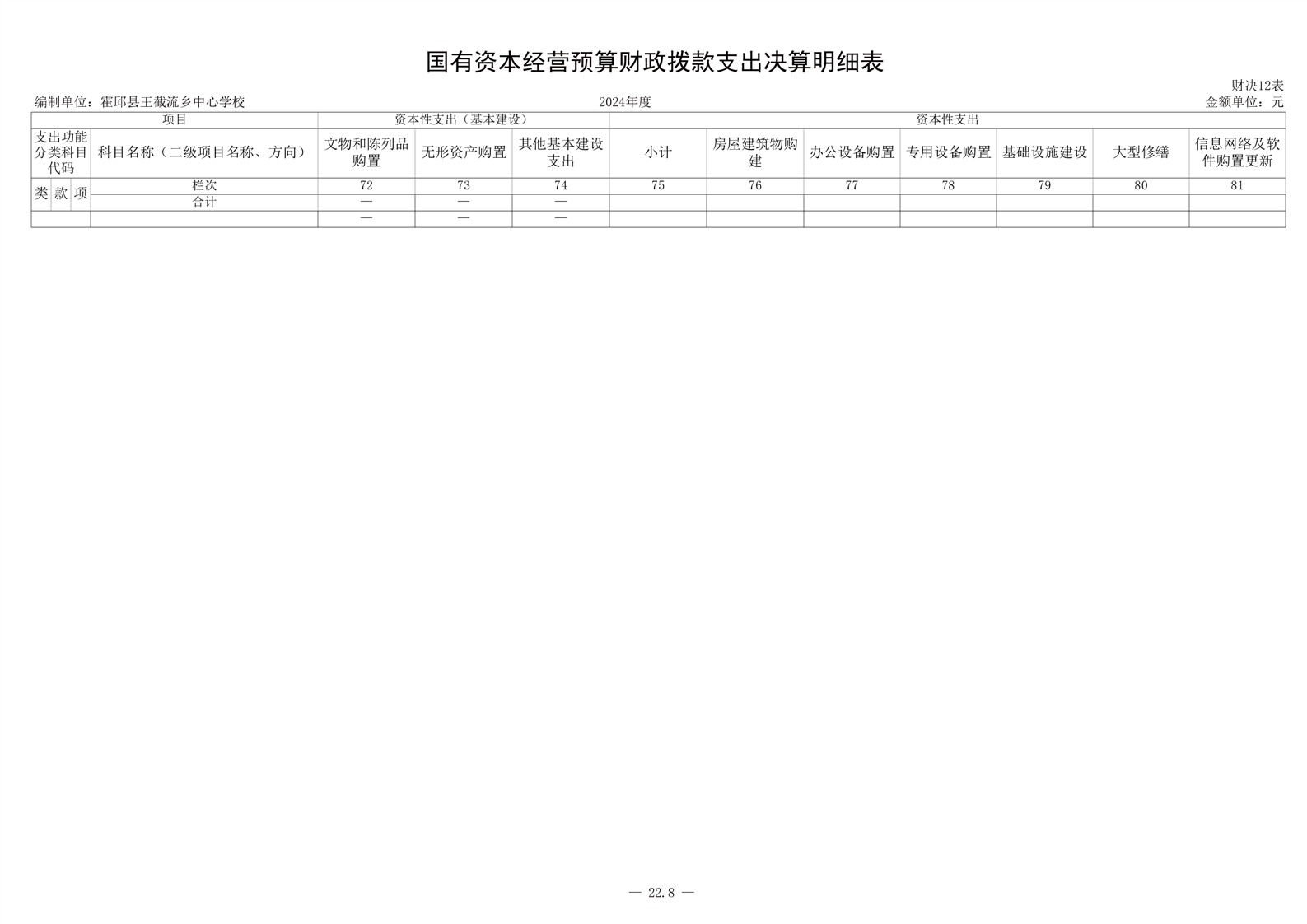 霍邱县王截流乡中心学校 2024 年度单位决算