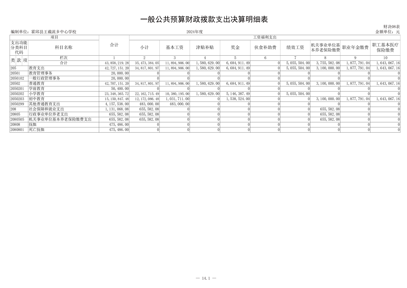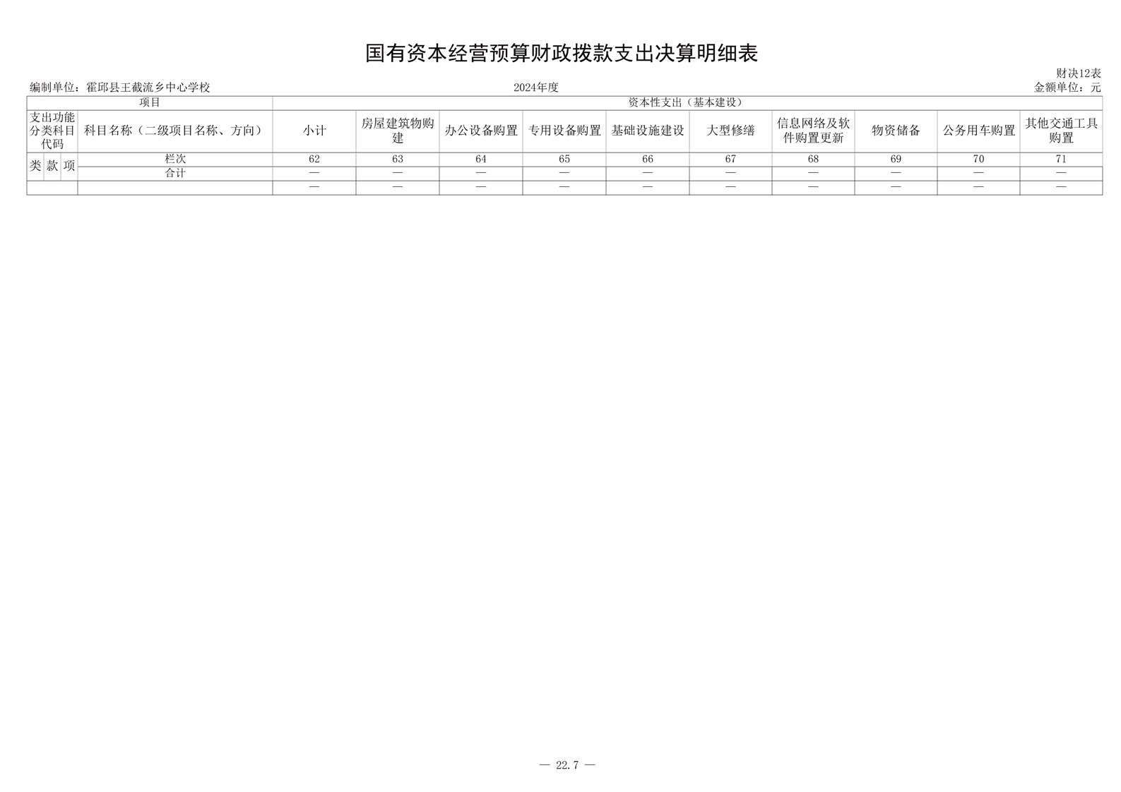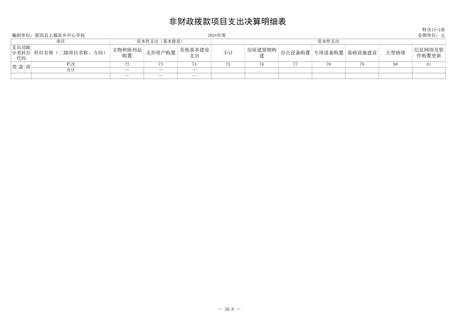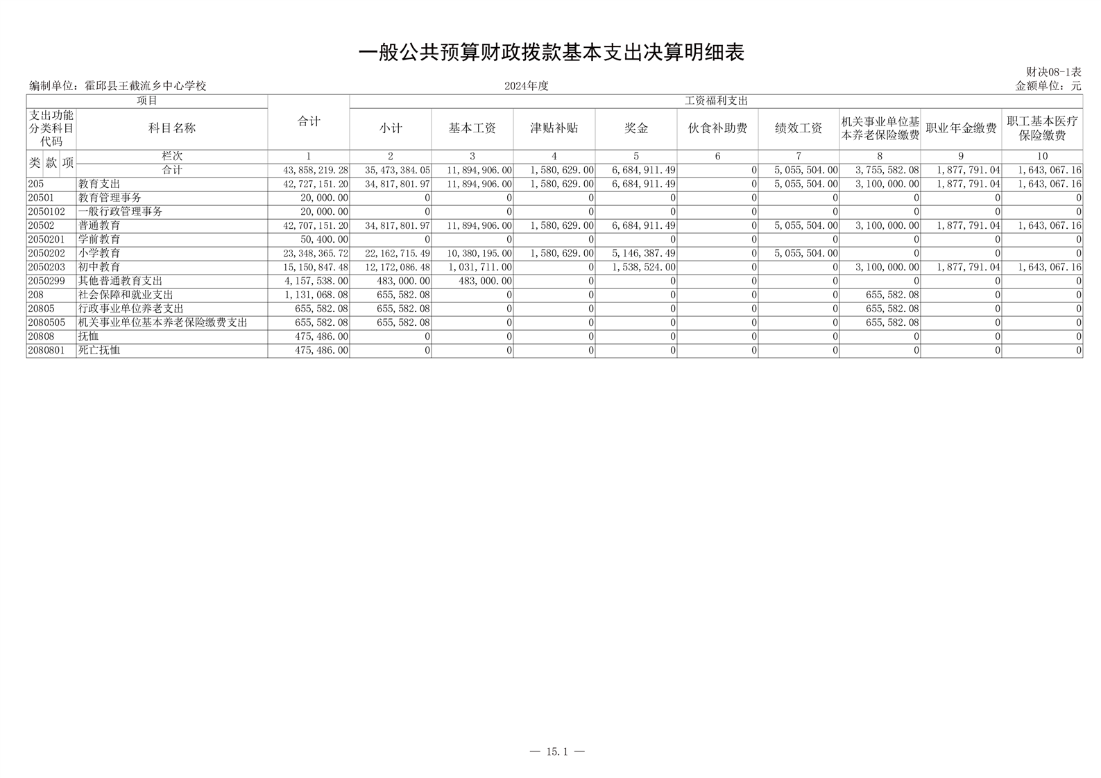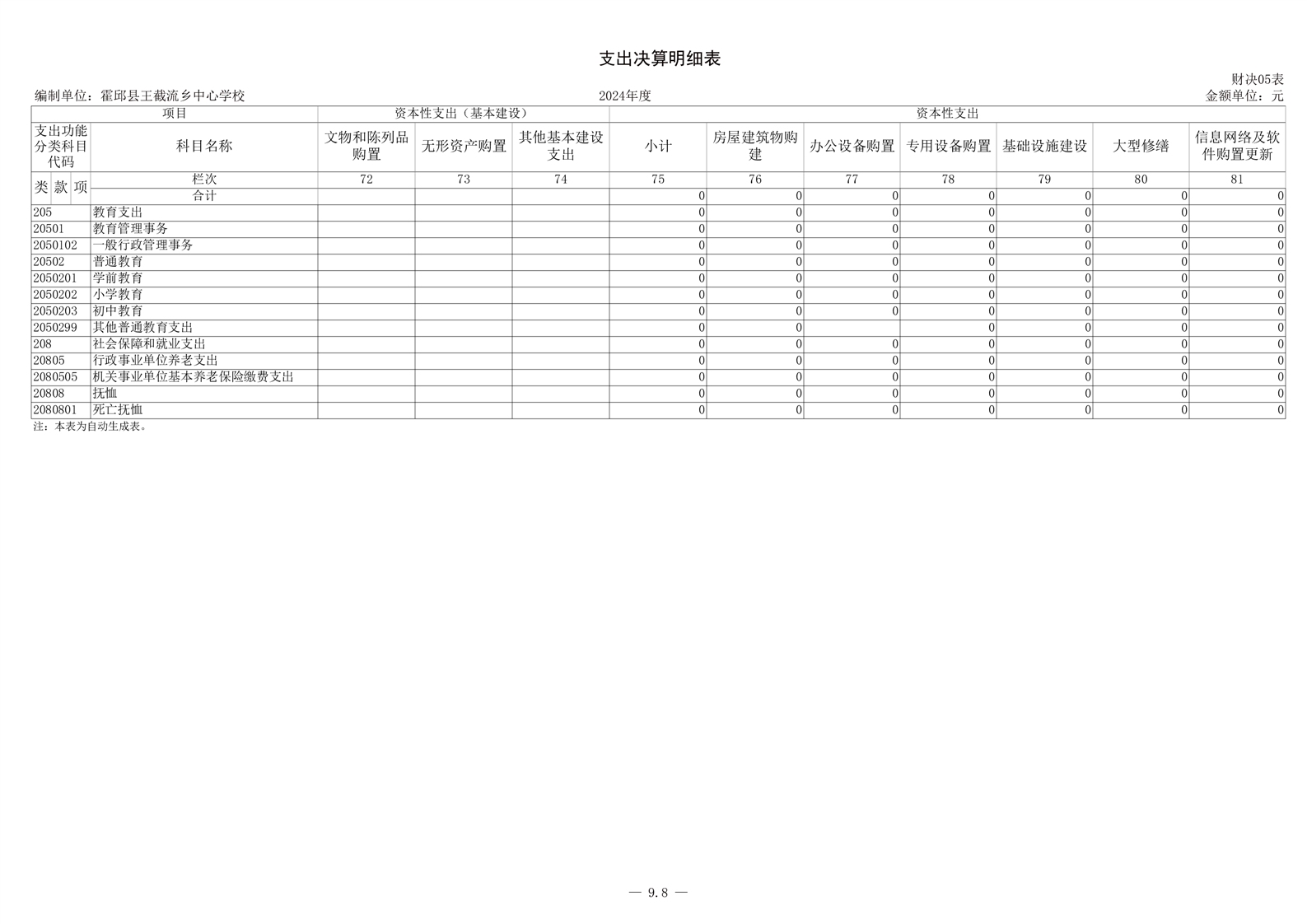 霍邱县王截流乡中心学校 2024 年度单位决算