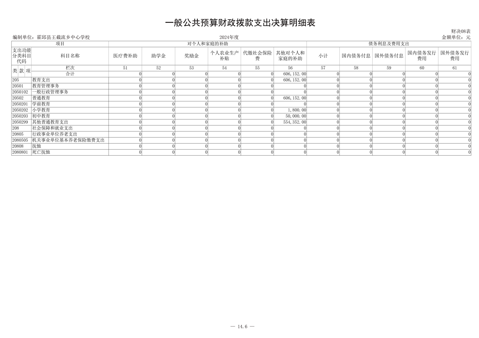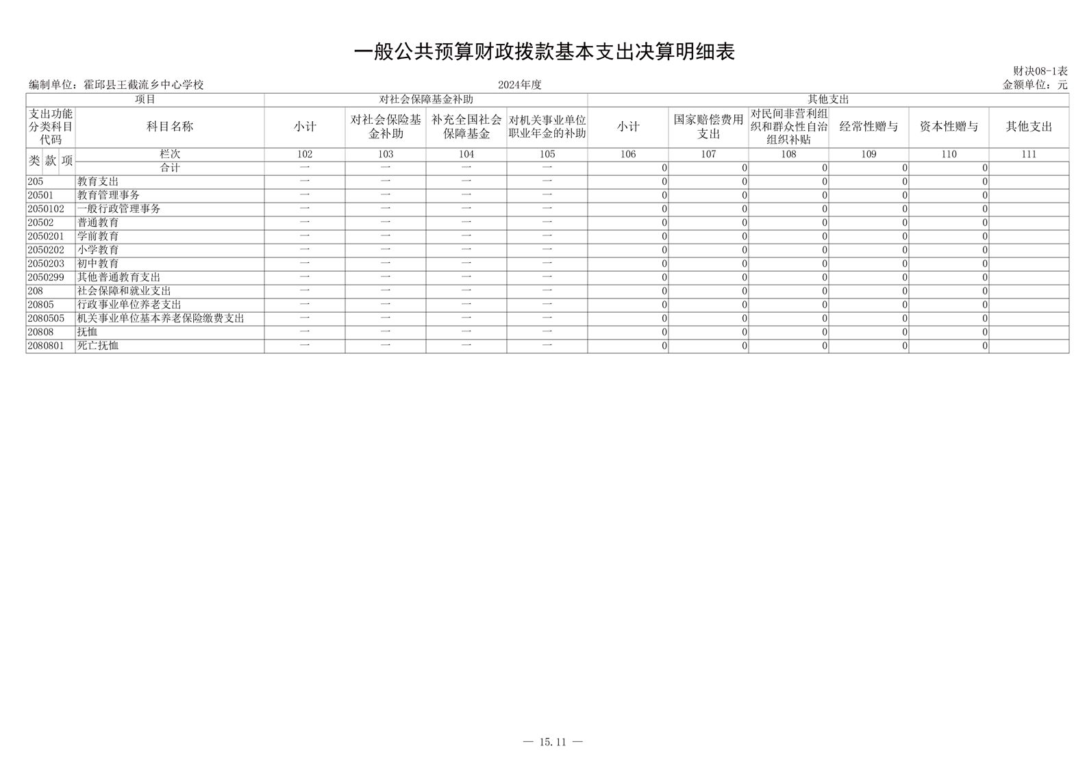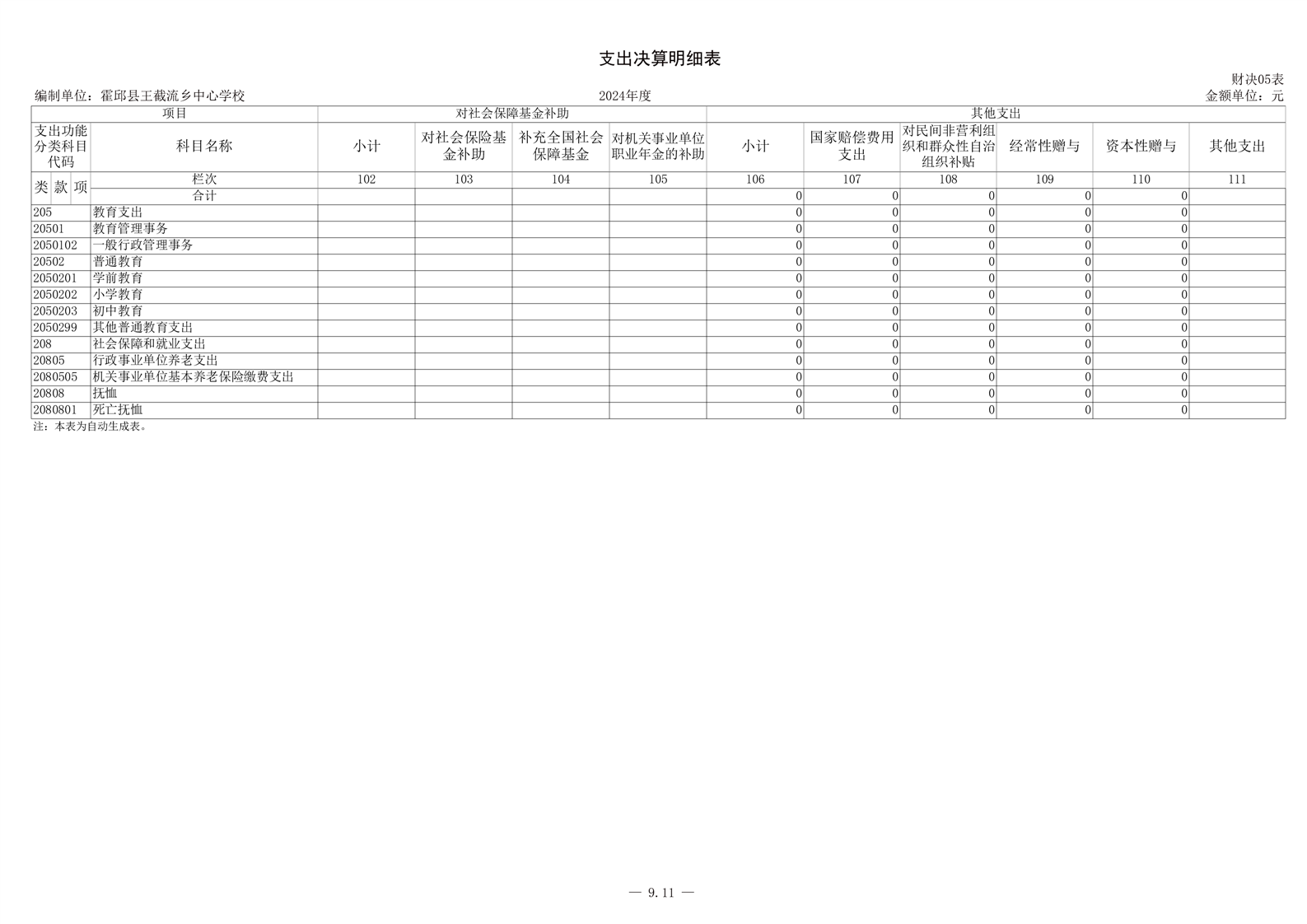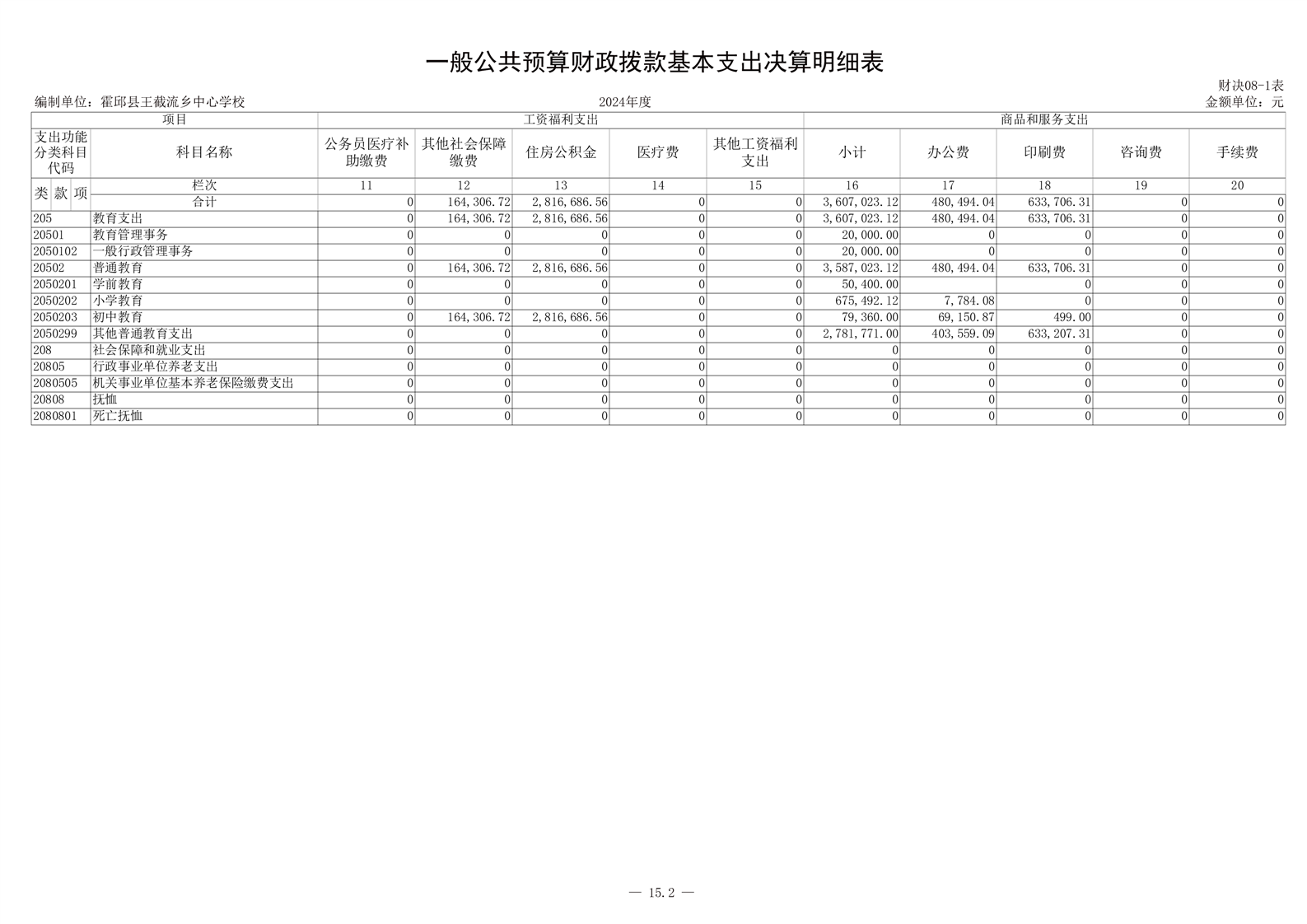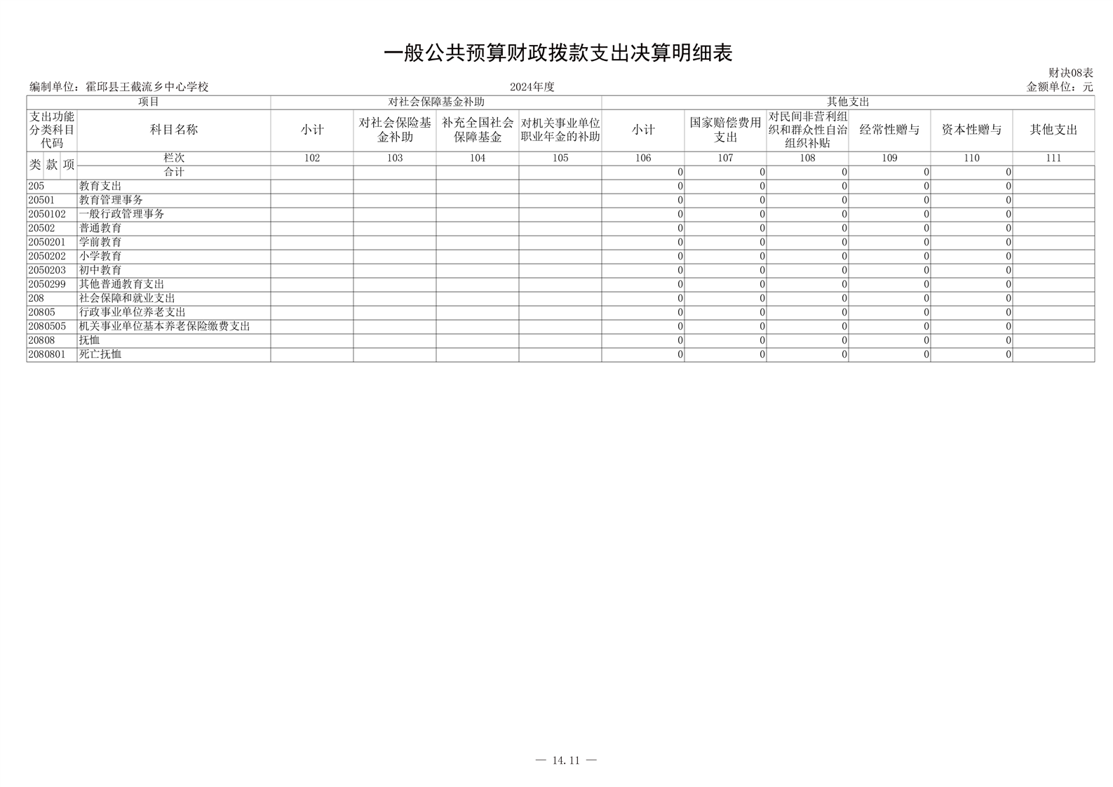 霍邱县王截流乡中心学校 2024 年度单位决算