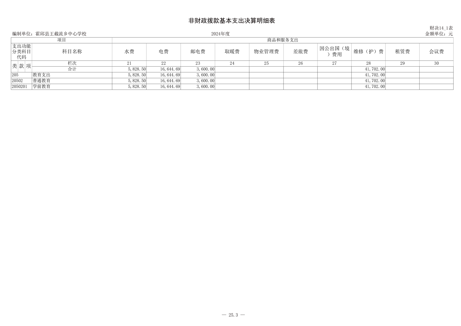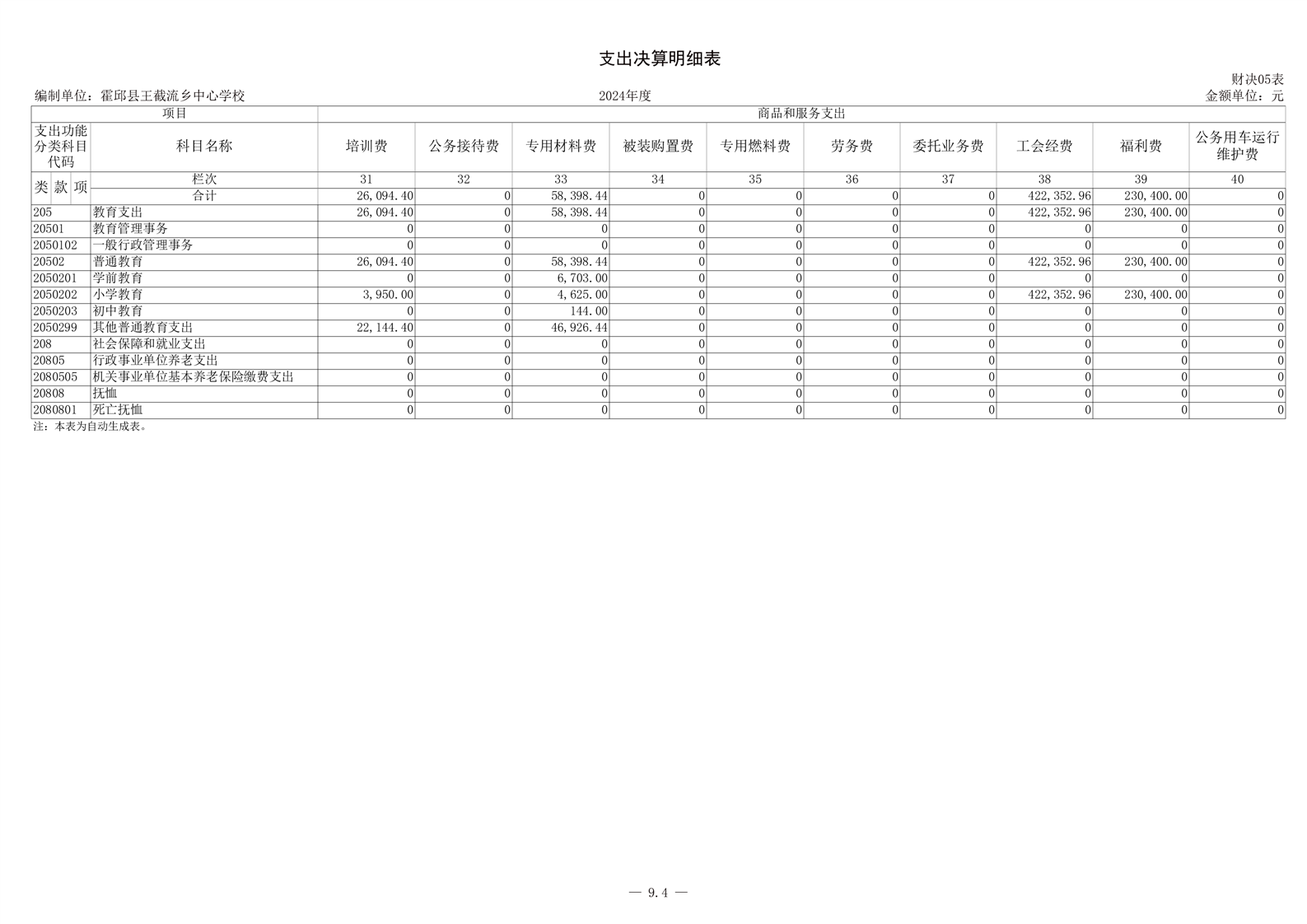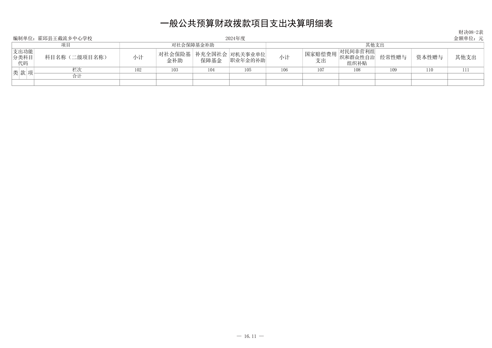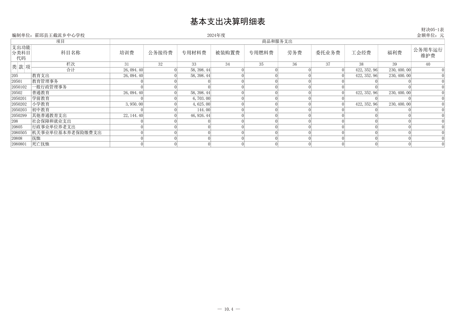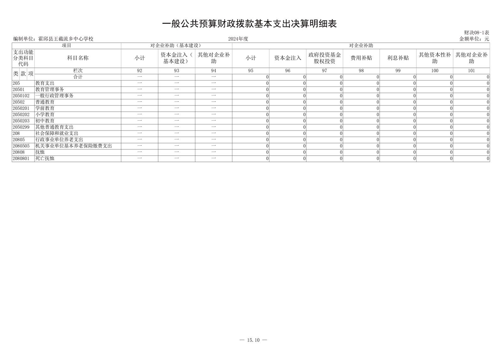 霍邱县王截流乡中心学校 2024 年度单位决算