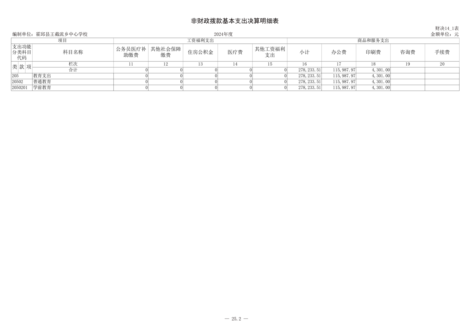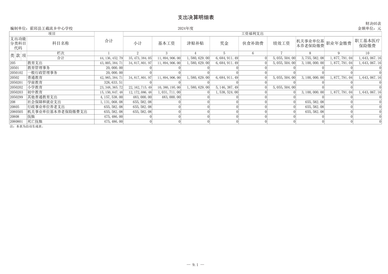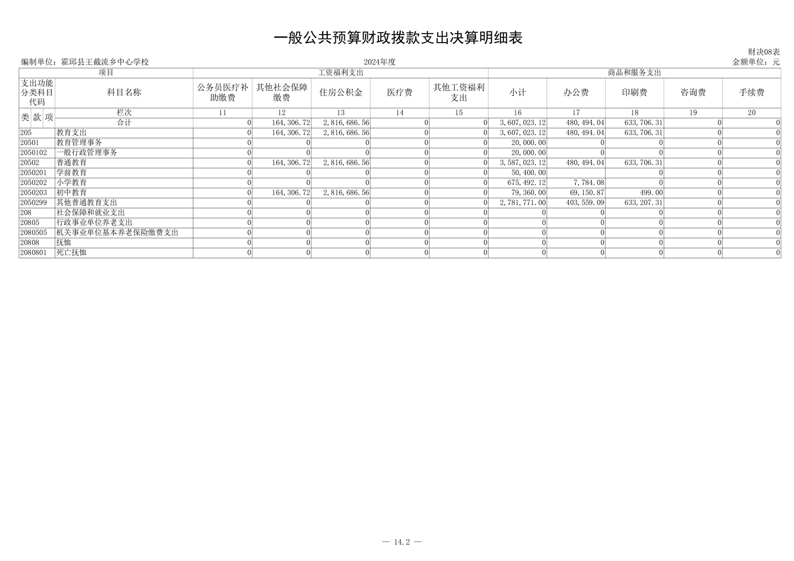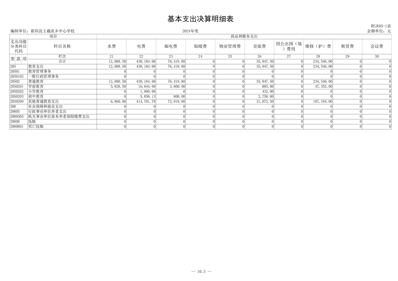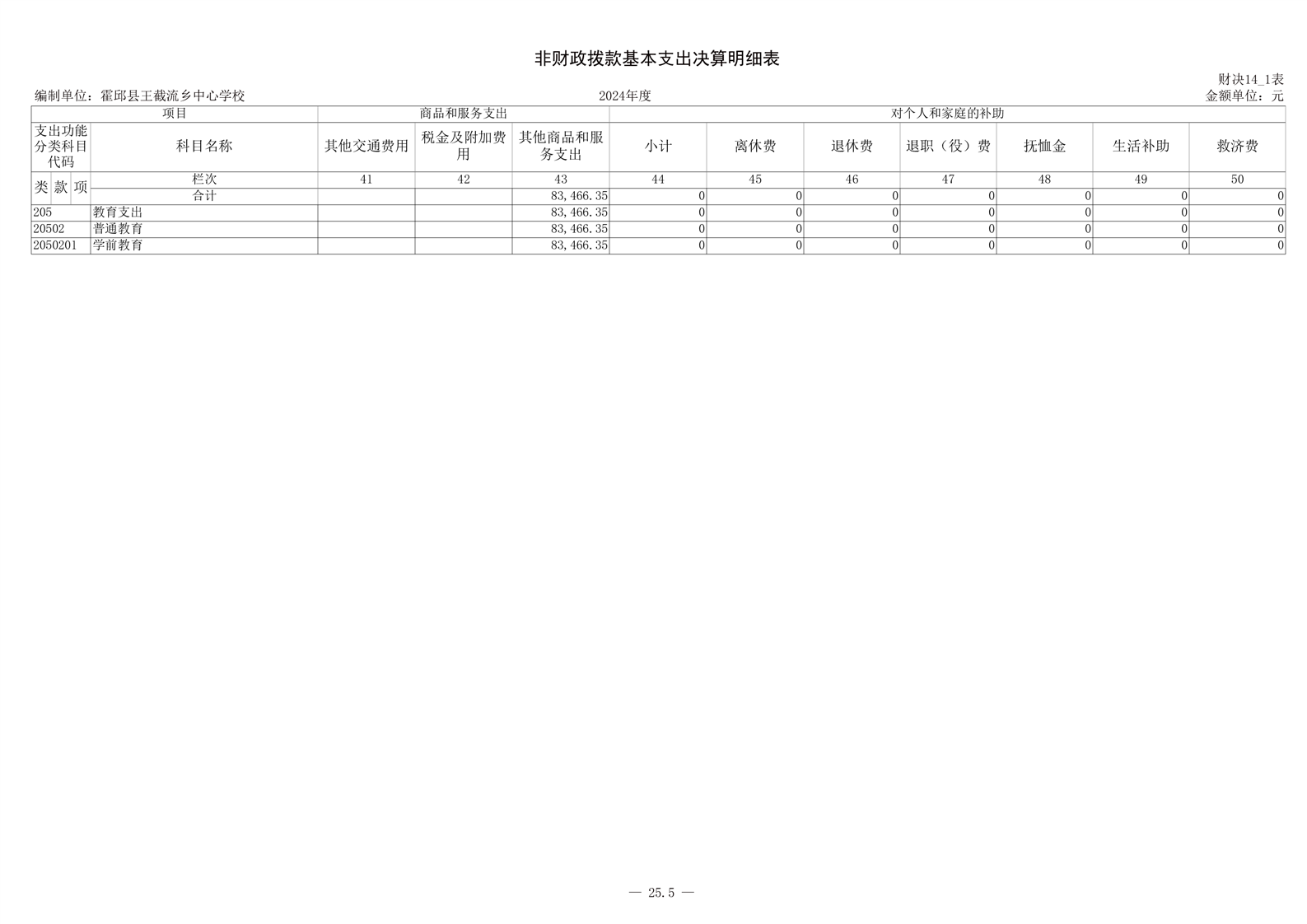 霍邱县王截流乡中心学校 2024 年度单位决算