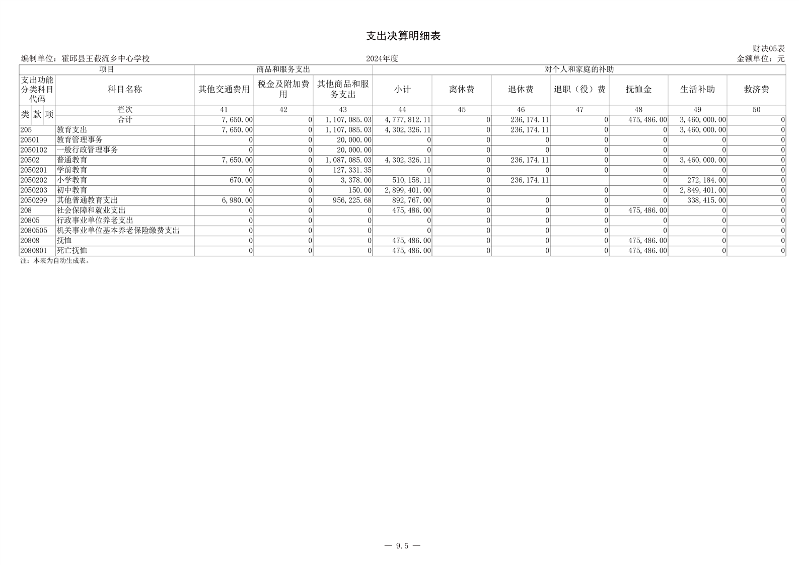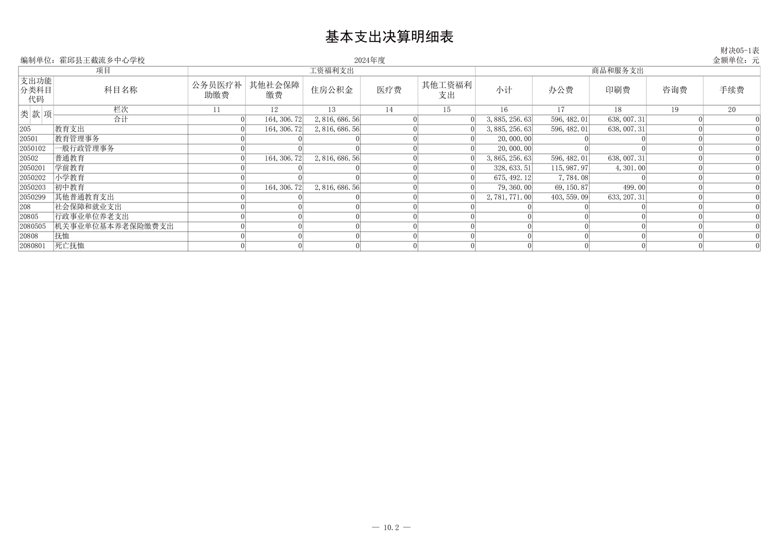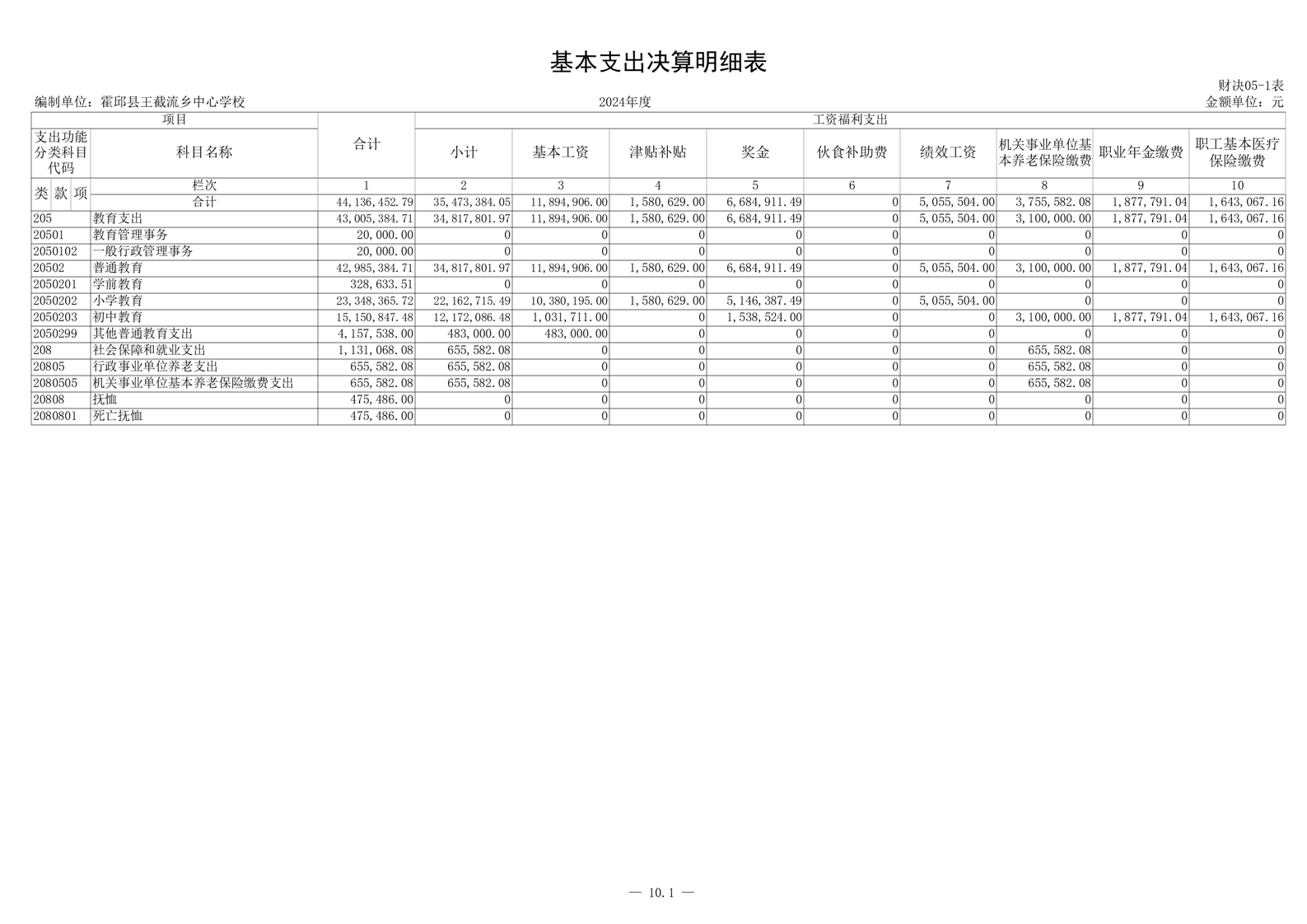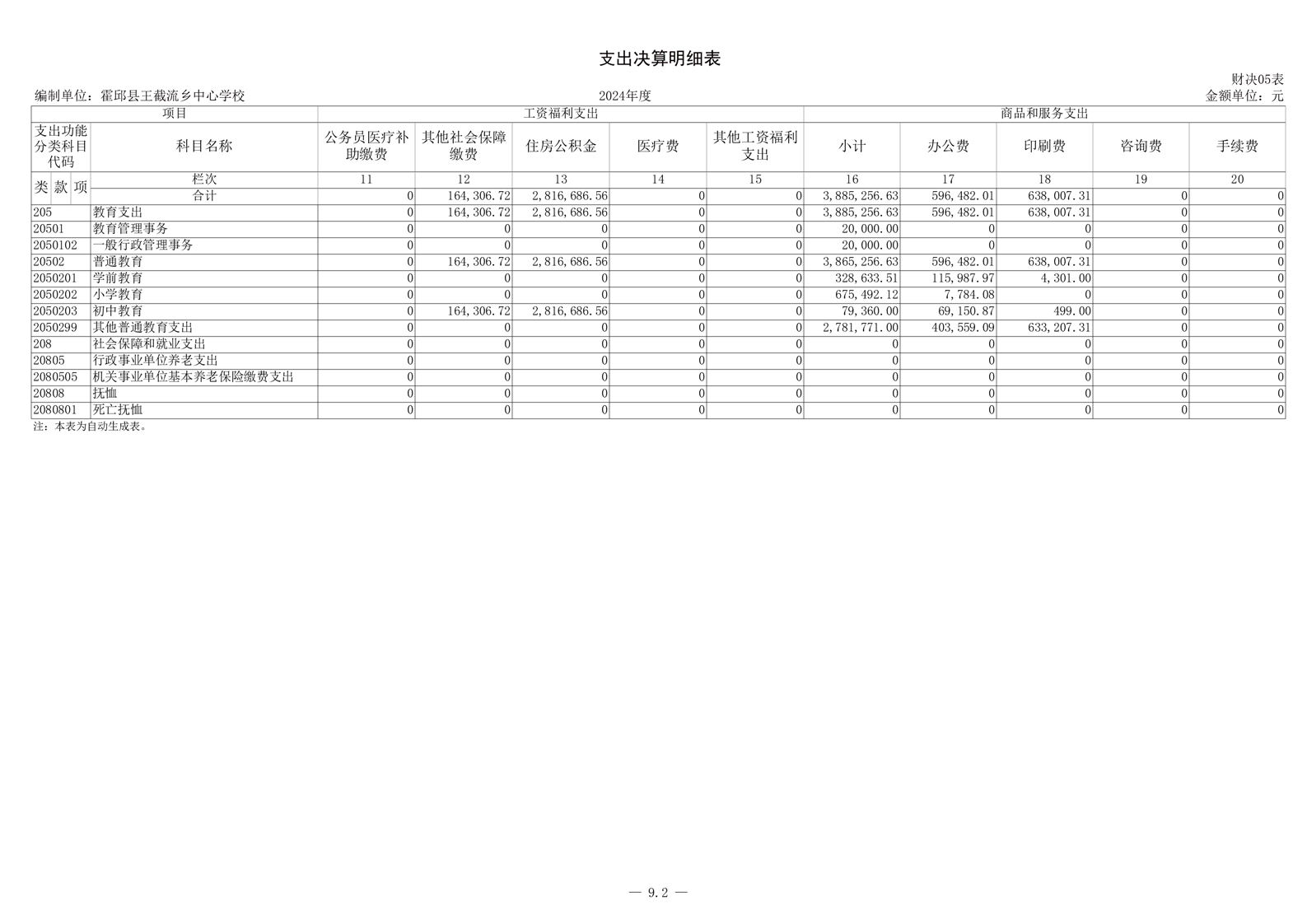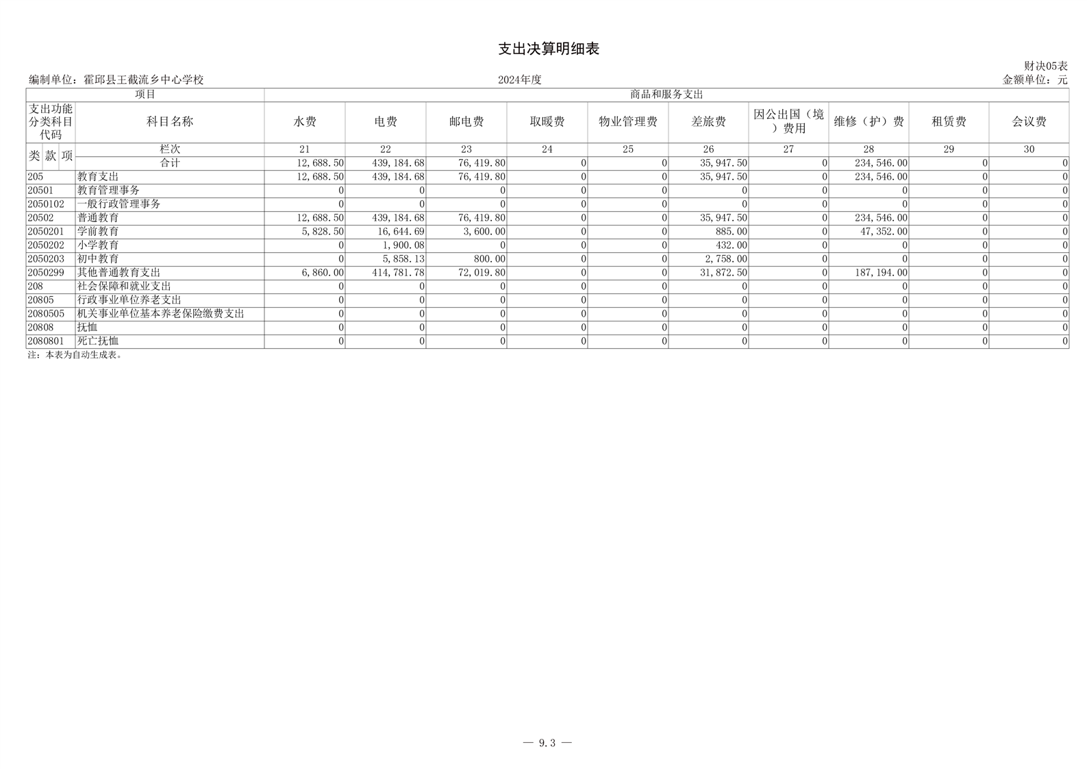 霍邱县王截流乡中心学校 2024 年度单位决算