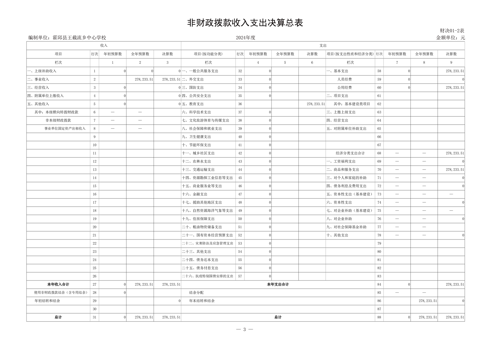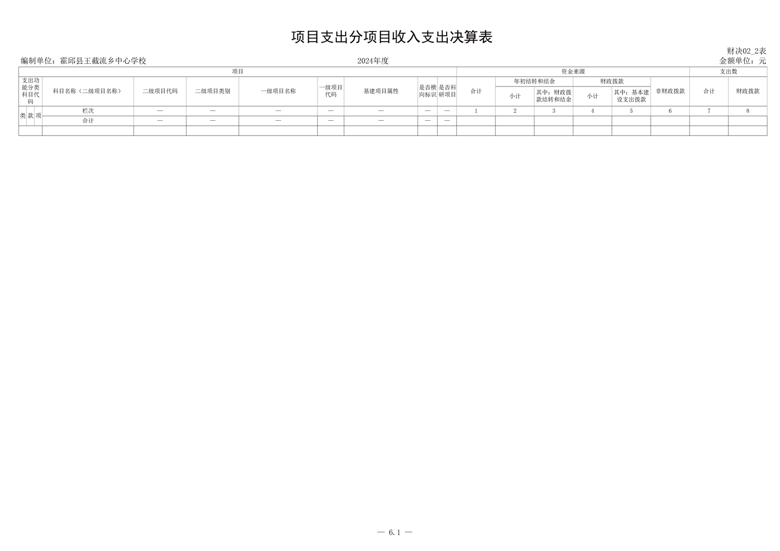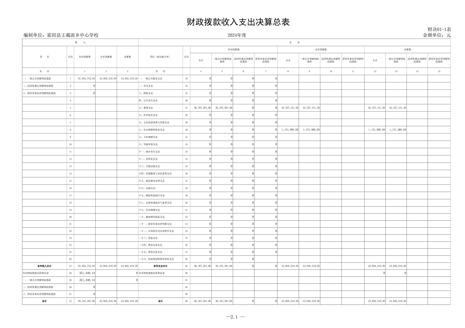 | 名 称: | 霍邱县王截流乡中心学校 2024 年度单位决算 | ||
