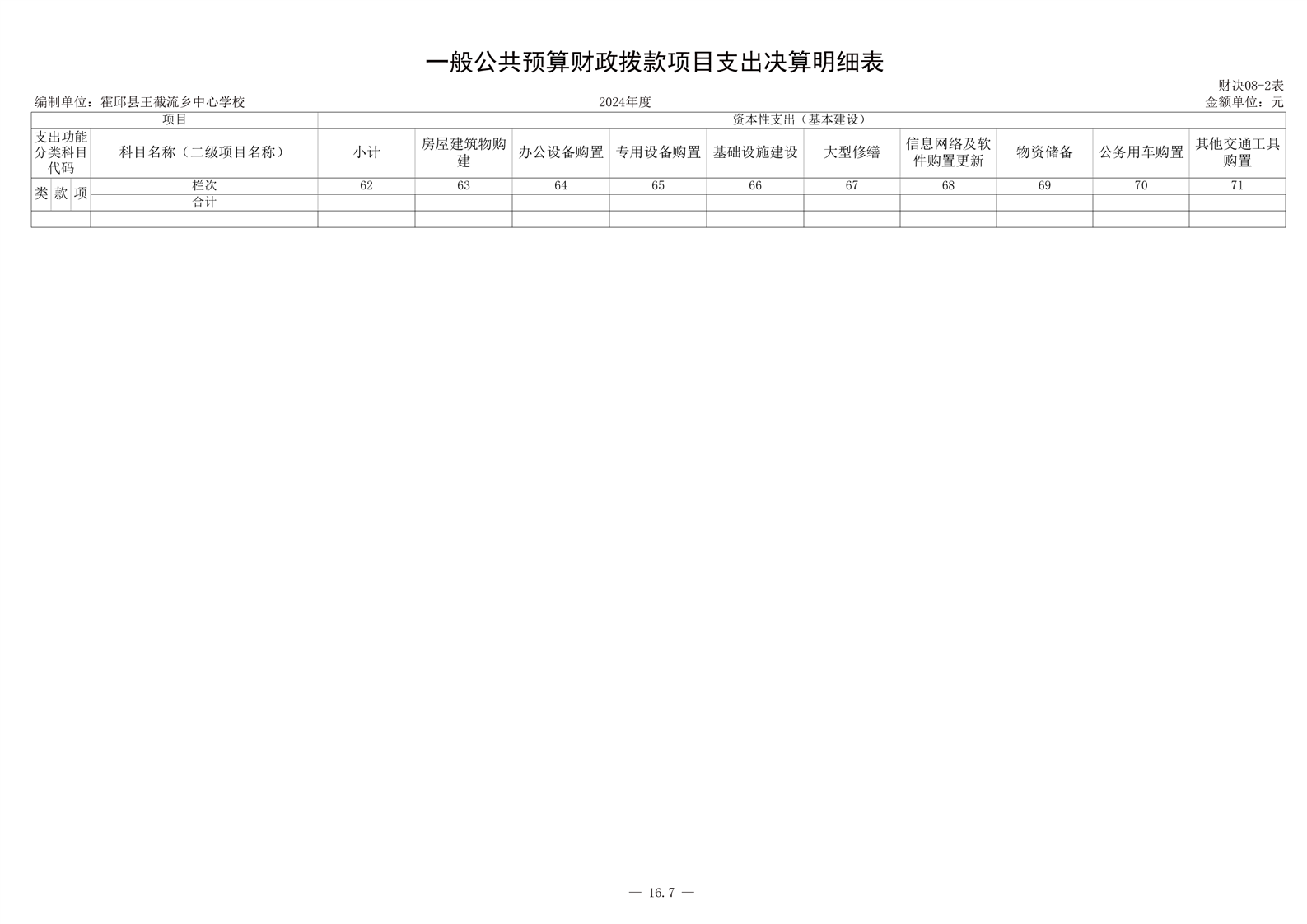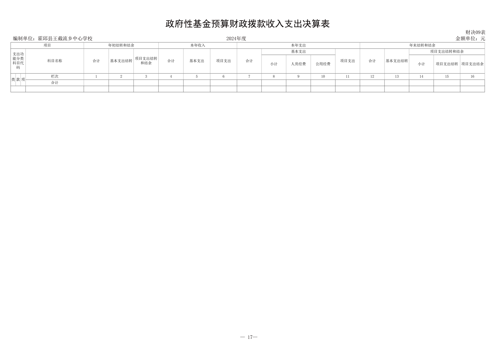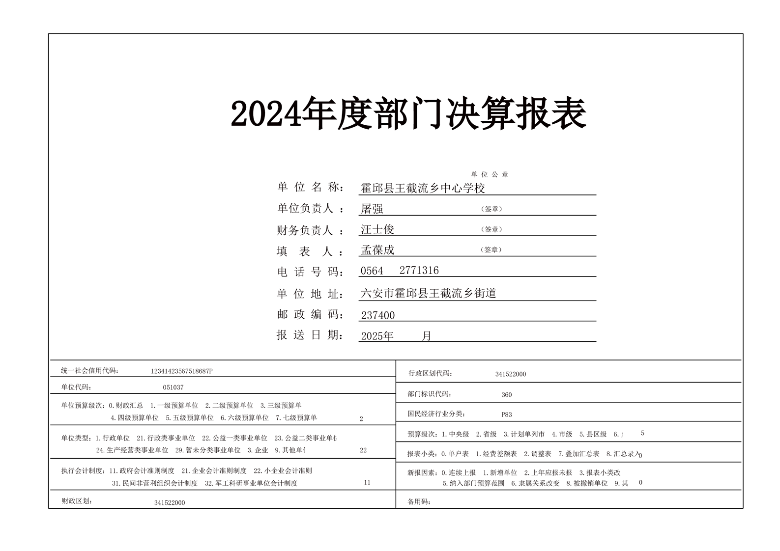| 名 称: | 霍邱县王截流乡中心学校 2024 年度单位决算 |