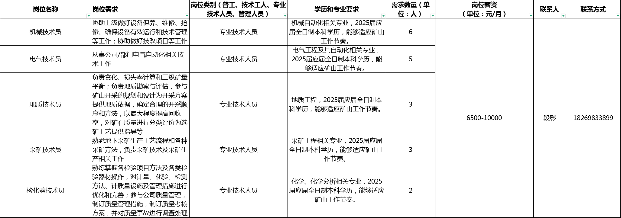 霍邱县2025年第三季度用工岗位信息招聘(安徽金安矿业有限公司)