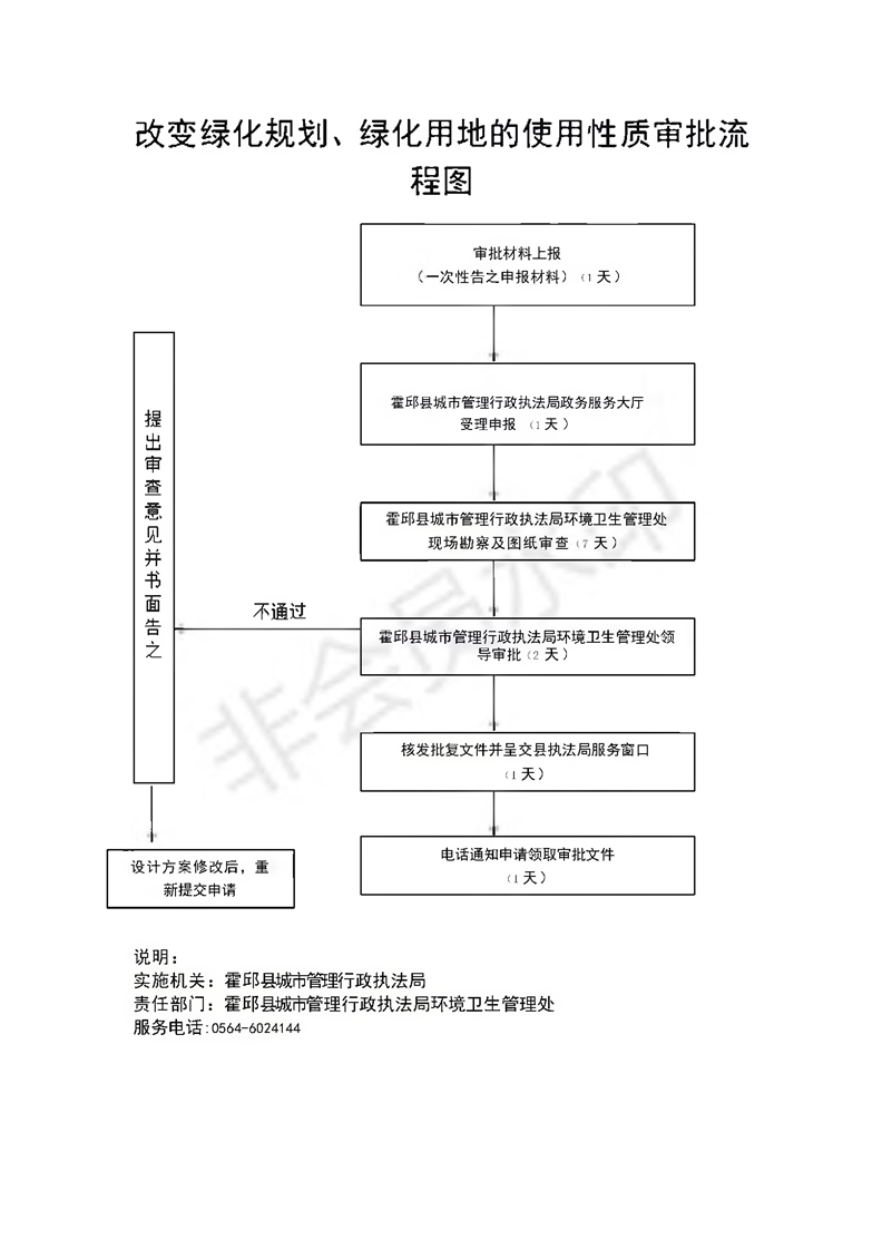 | 名 称: | 霍邱县城市综合执法改变绿化规划、绿化用地的使用性质审批流程图 |