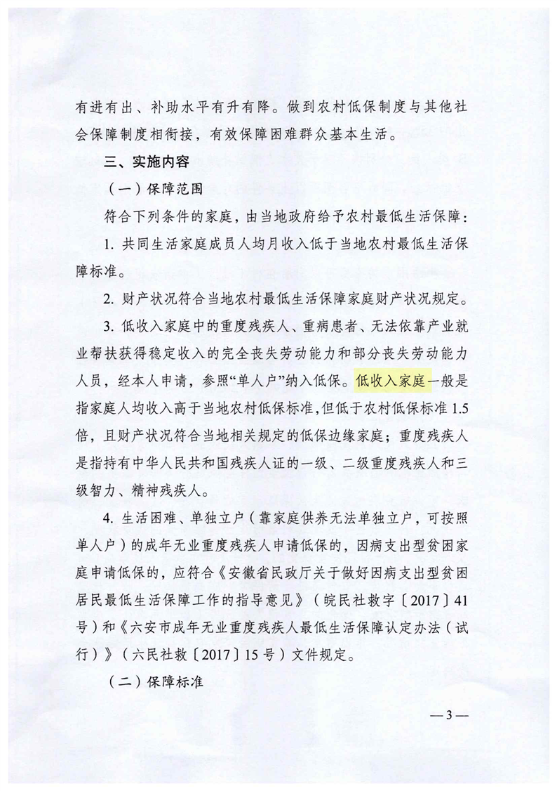 六安市农村低保实施方案
