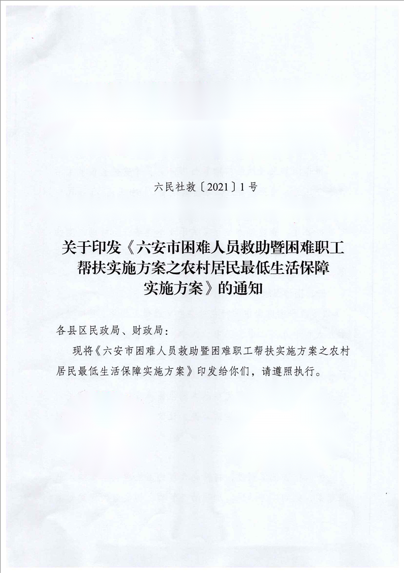 | 文 号: | 六民社救[2021]1号 |