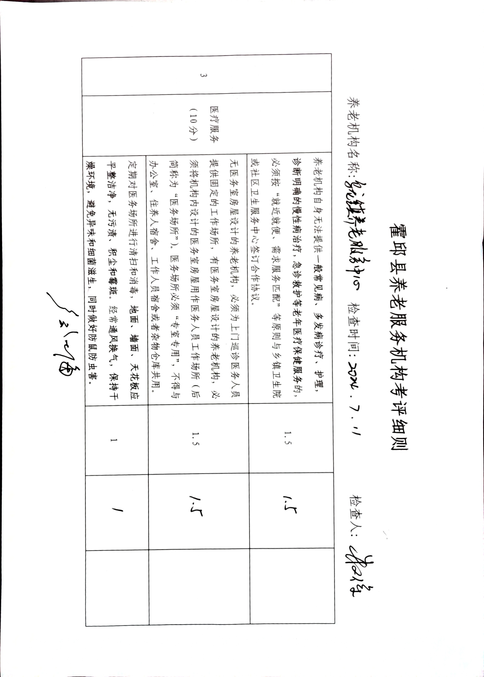 霍邱县民政局医疗卫生检查现场记录——乌龙镇养老服务中心