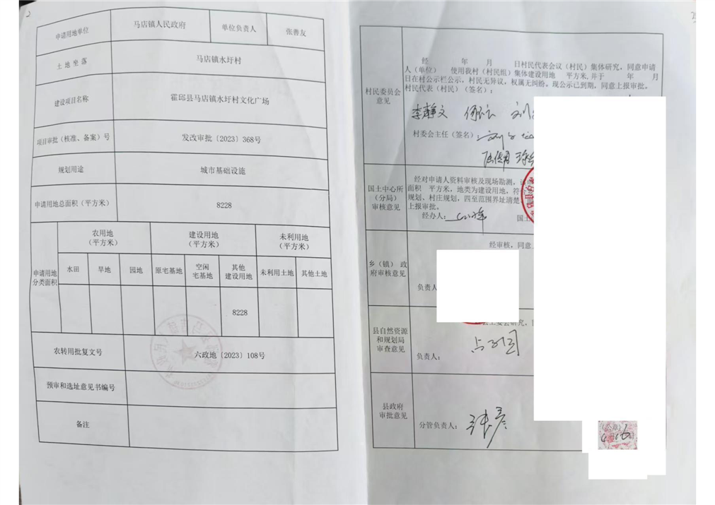 【批复】霍邱县集体建设用地审批表(马店镇水圩村文化广场)