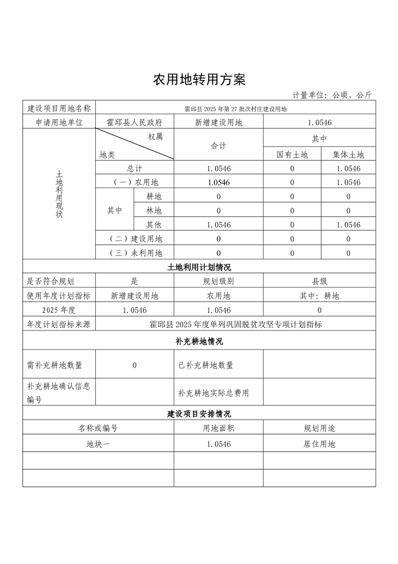 名 称: | 霍邱县2025年第27批次村庄建设用地(农转用方案) |
