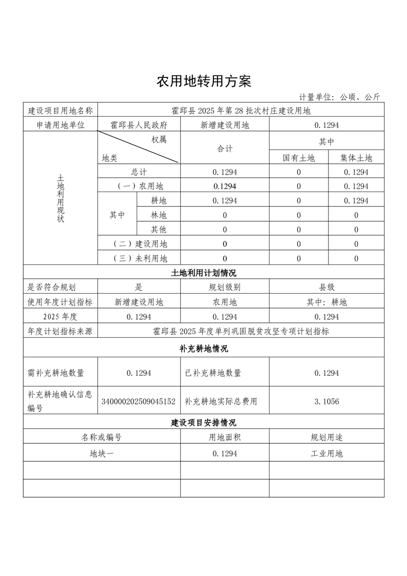名 称: | 霍邱县2025年第28批次村庄建设用地(农转用方案) |