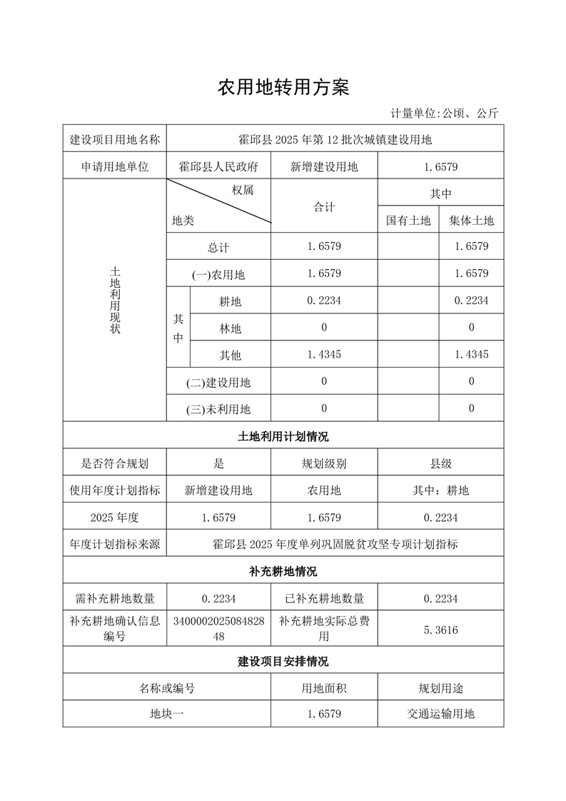 名 称: | 霍邱县2025年第12批次城镇建设用地(农转用方案) |