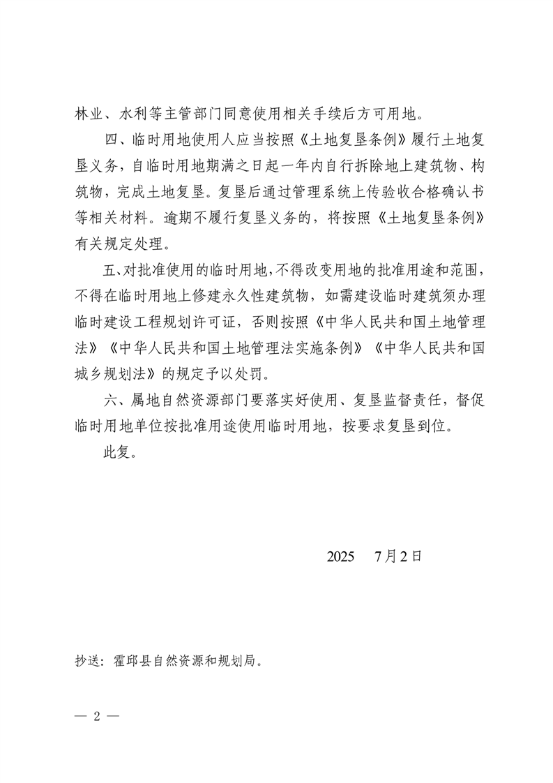 名 称: | 关于 G328 霍邱段一级公路改建工程(一期)运输便道临时使用土地的批复 |