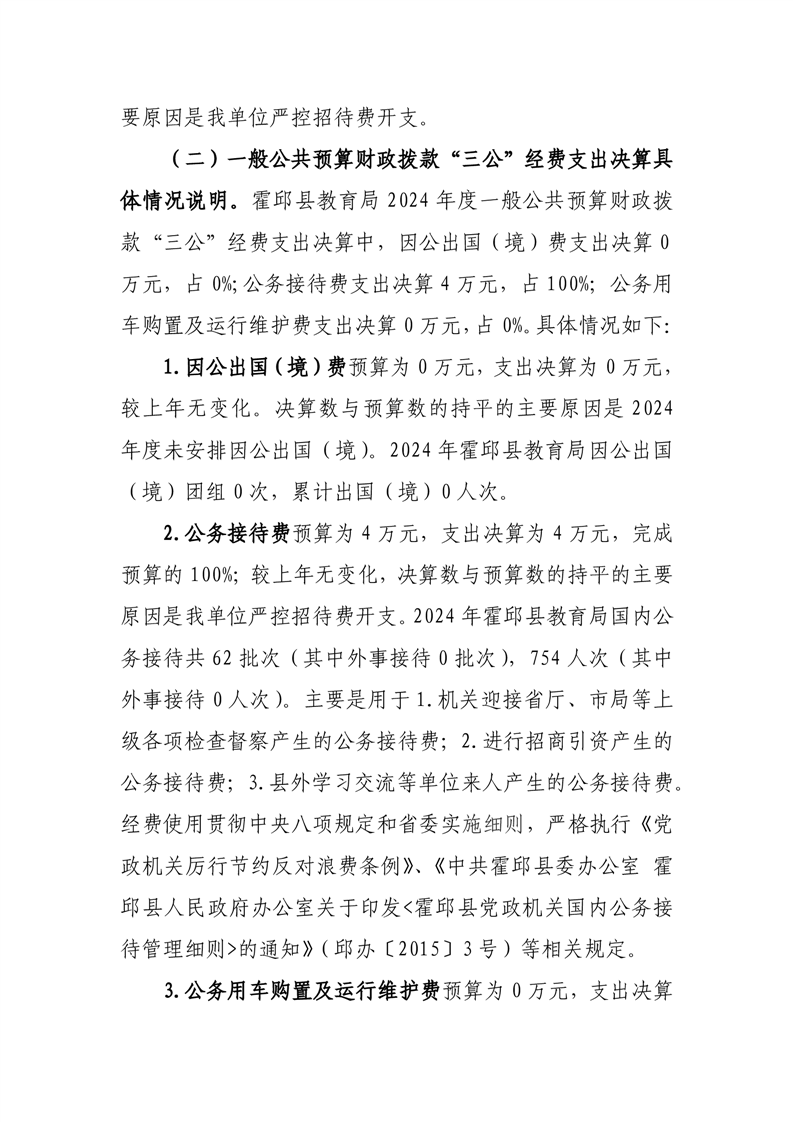 | 名 称: | 霍邱县教育局2024年度一般公共预算财政拨款“三公”经费支出决算(部门) |