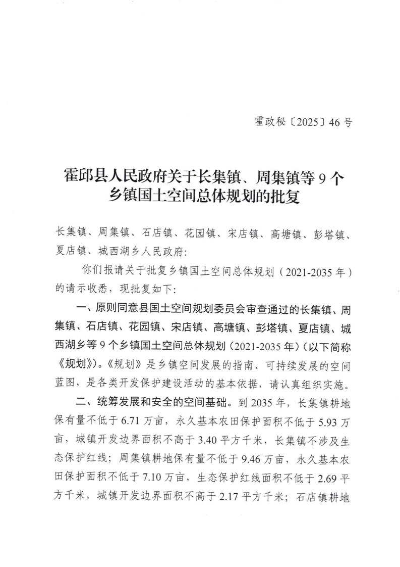 | 名 称: | 霍邱县人民政府关于长集镇、周集镇等9个乡镇国土空间总体规划的批复 | ||