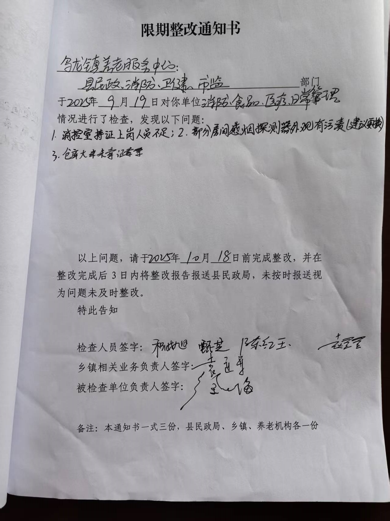 霍邱县民政局安全生产监督检查现场记录——乌龙镇养老服务中心