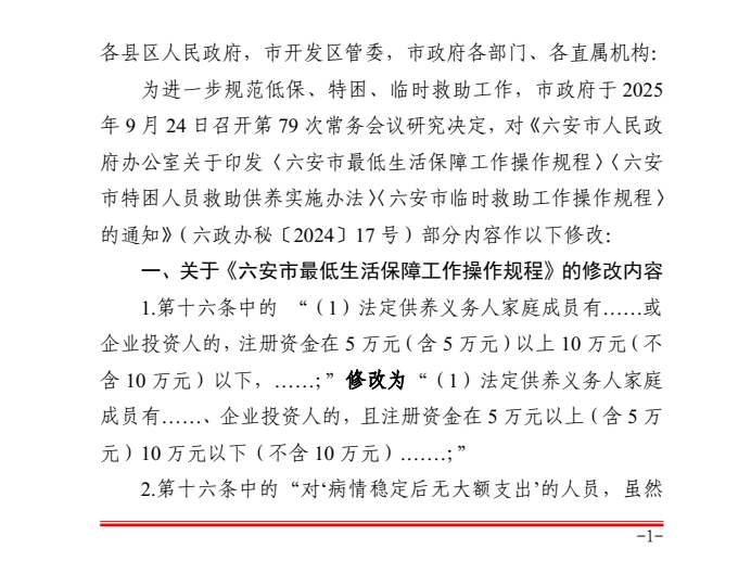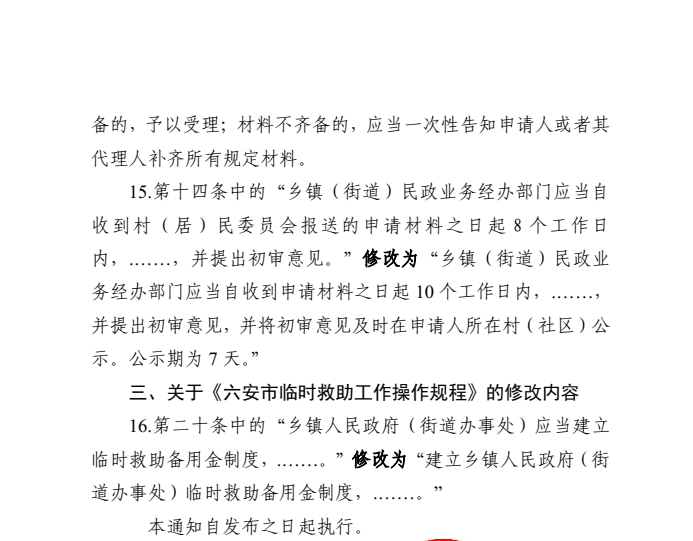 六安市人民政府办公室关于对六政办秘〔2024〕17号文件部分内容进行修改的通知