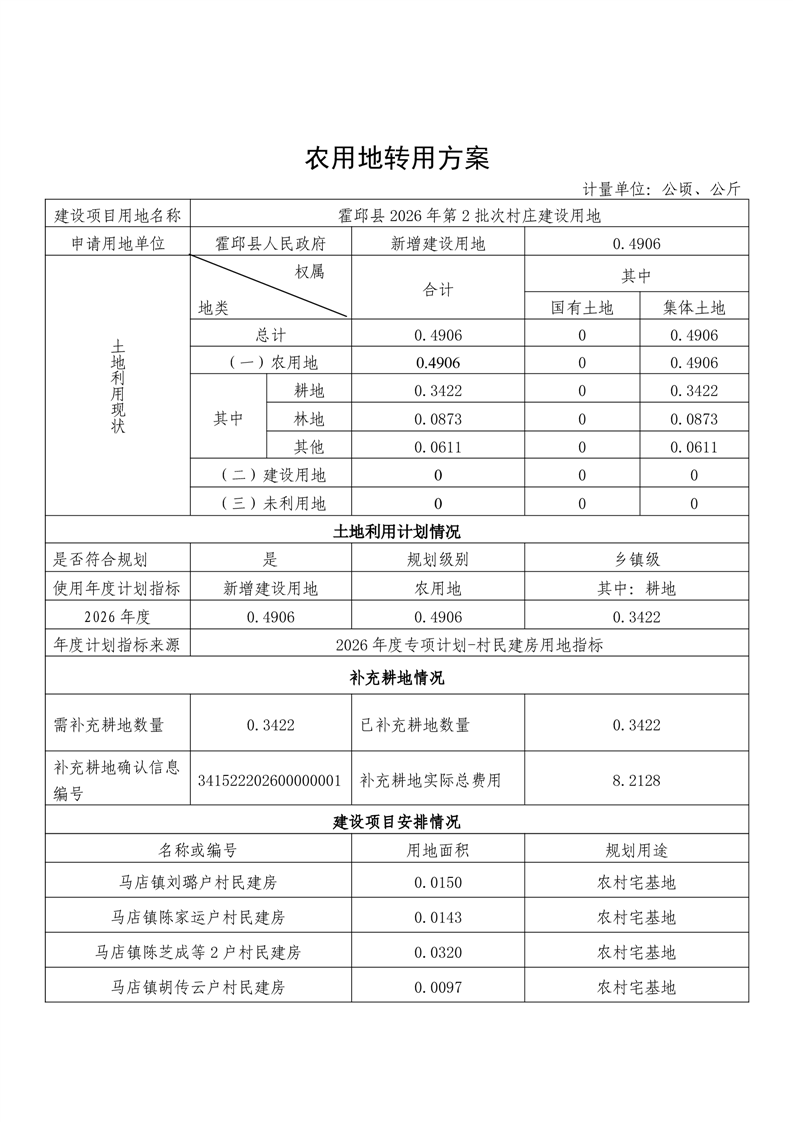 霍邱县2026年第2批次村庄建设用地(农转用方案)