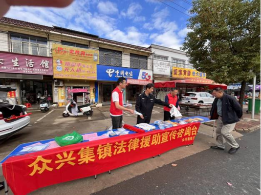 为进一步提升法律援助工作的知晓率,切实维护弱势群体的合法权益,2024年10月18日,由众兴集镇党委政府牵头、司法所等相关单位参与,在众兴集镇众兴街道开展了法律援助宣传咨询活动。