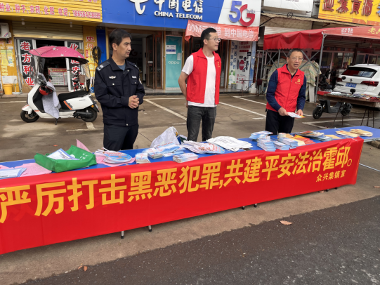 为持续常态化推进扫黑除恶斗争工作,强化扫黑除恶斗争的普法宣传力度,2024年10月25日,霍邱县众兴集镇司法所联合镇平安中心到辖区众兴集街道联合开展“严厉打击黑恶犯罪,共建平安法治霍邱”暨扫黑除恶普法宣传活动。
