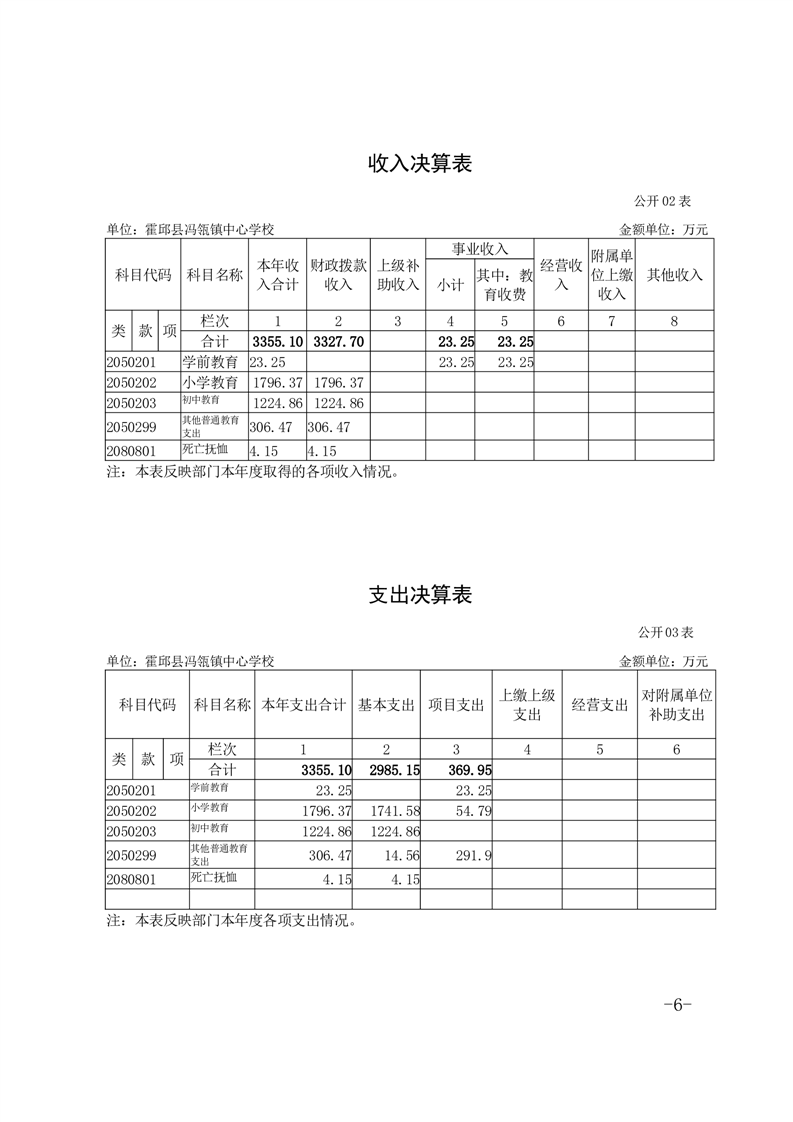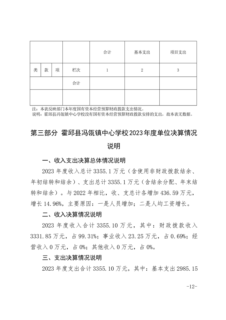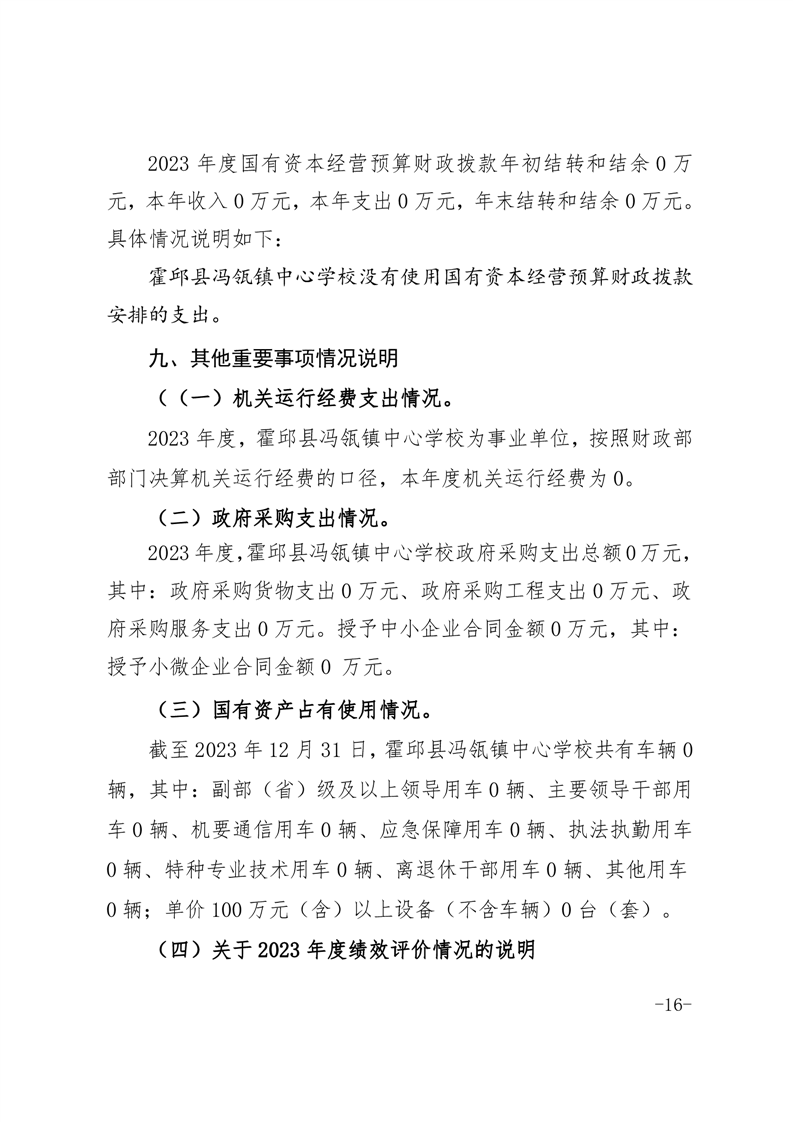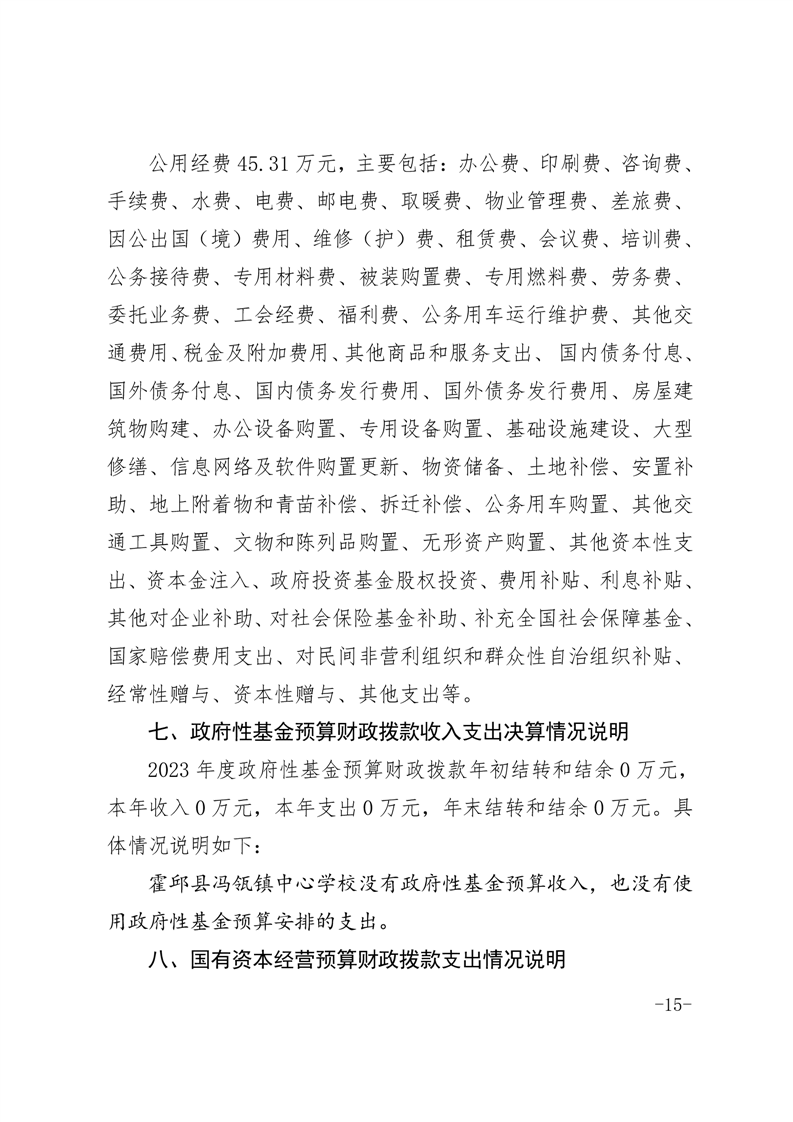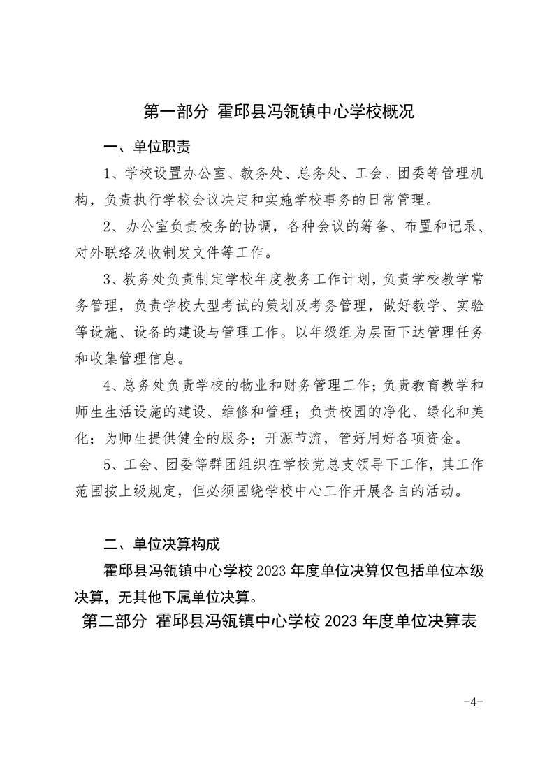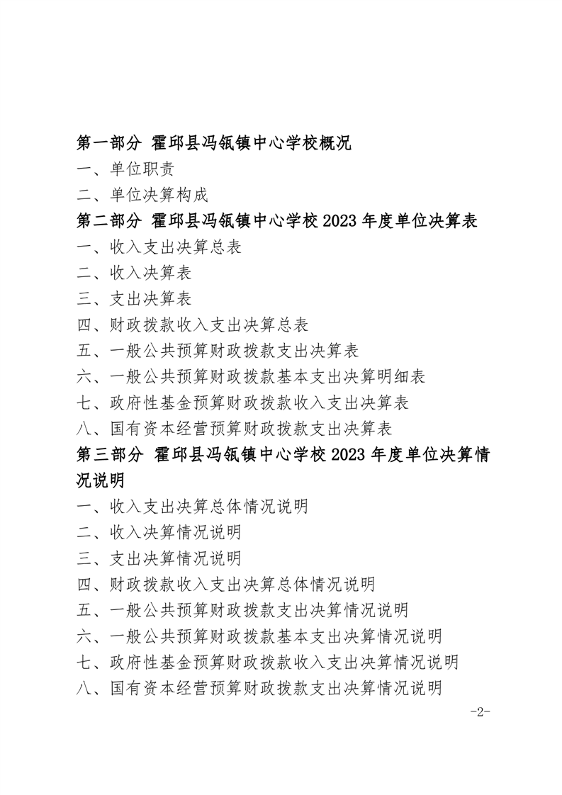 霍邱县冯瓴镇中心学校 2023 年度单位决算