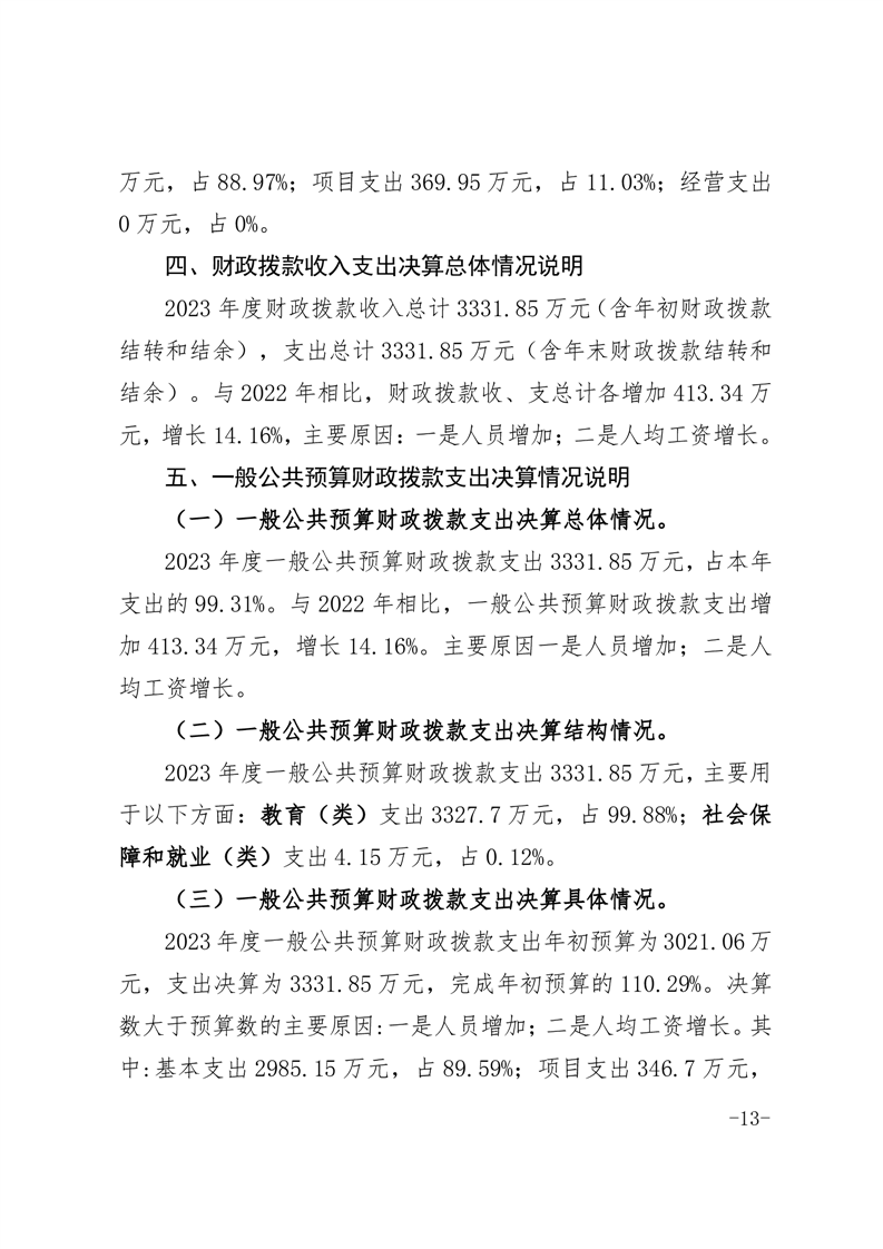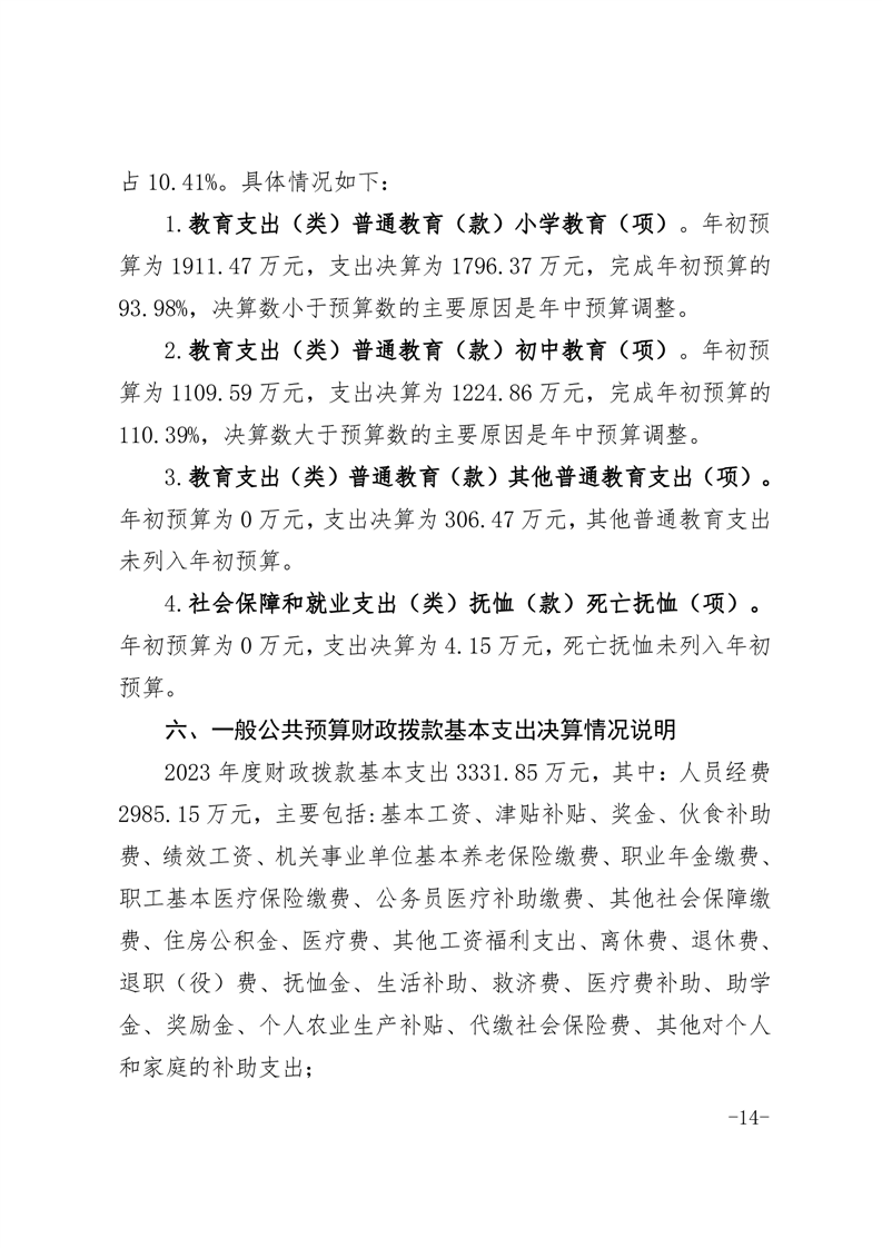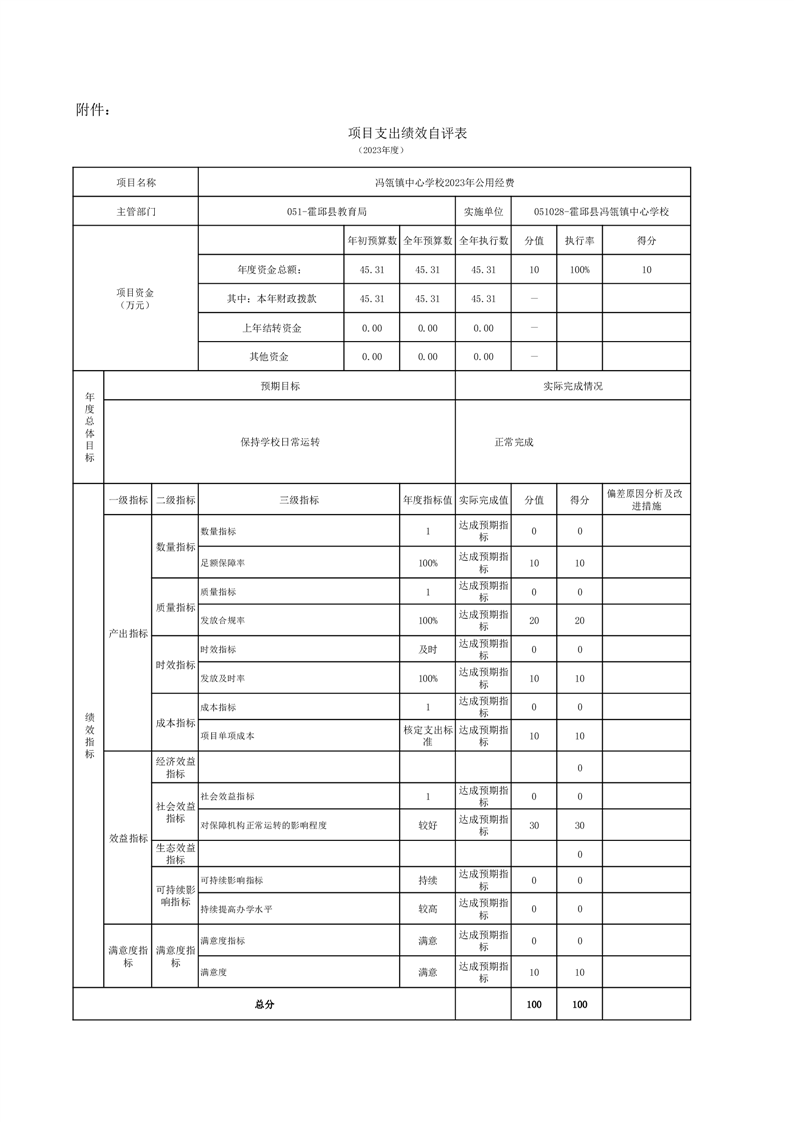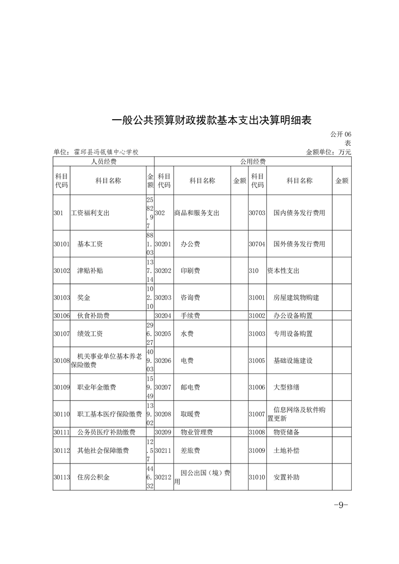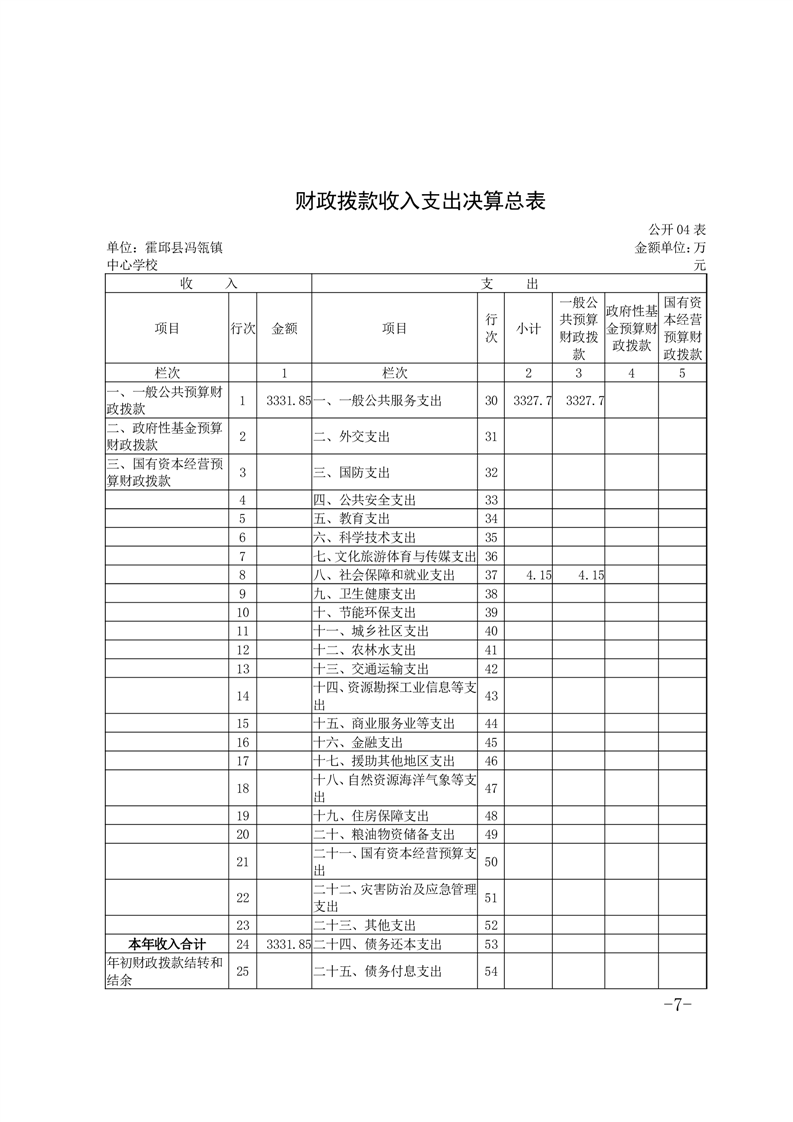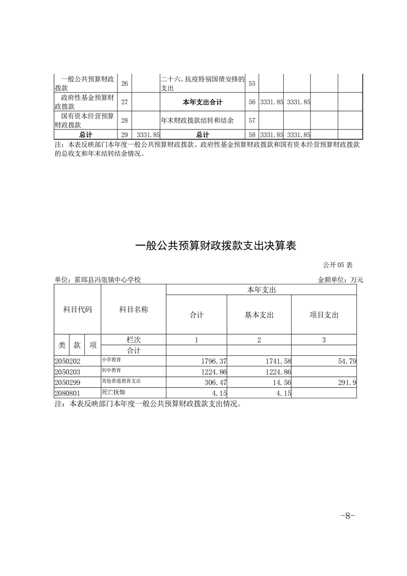 霍邱县冯瓴镇中心学校 2023 年度单位决算