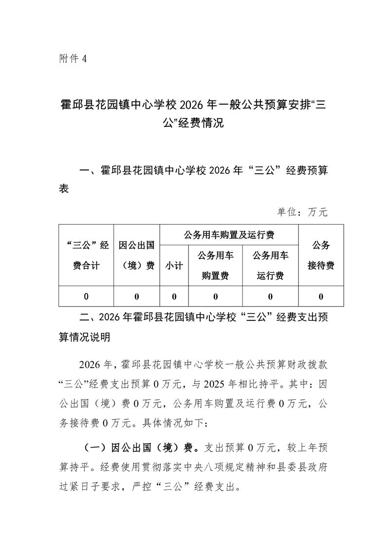 霍邱县花园镇中心学校 2026 年一般公共预算安排“三公”经费情况