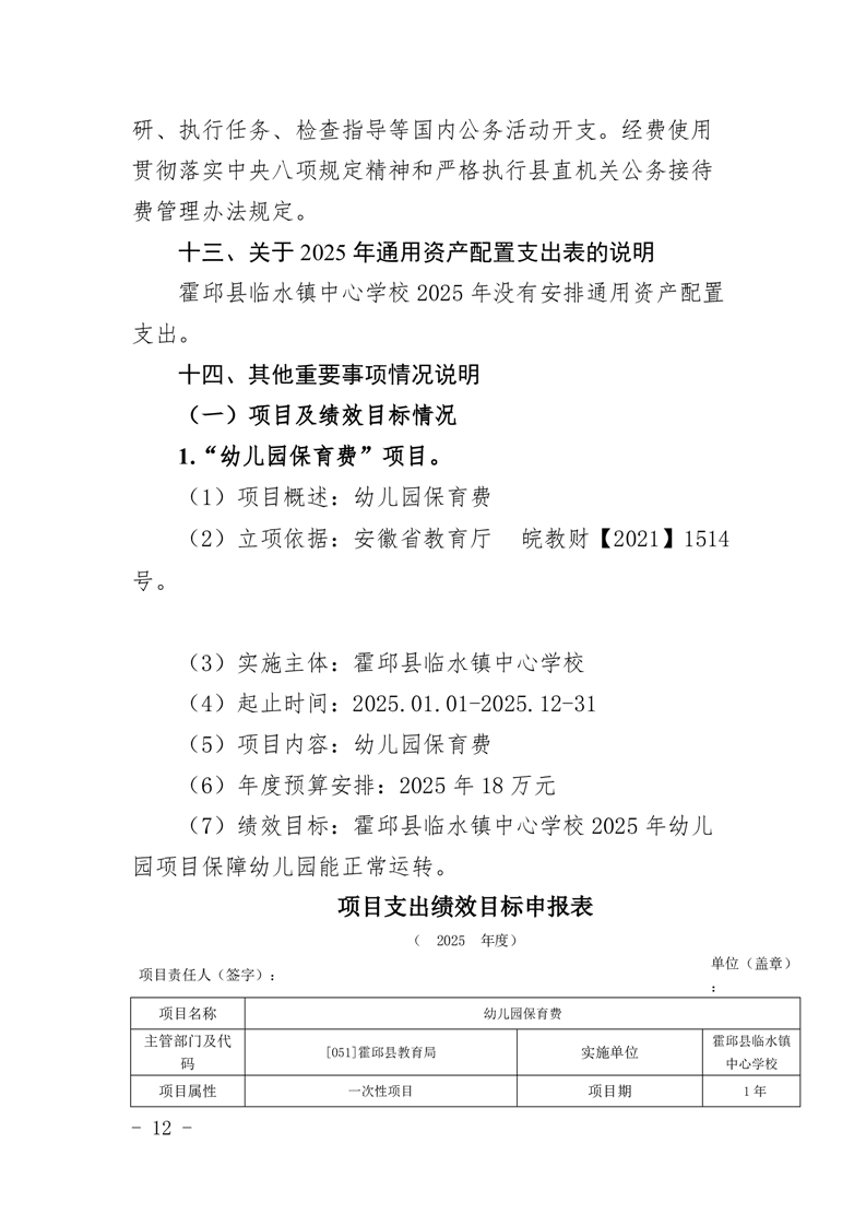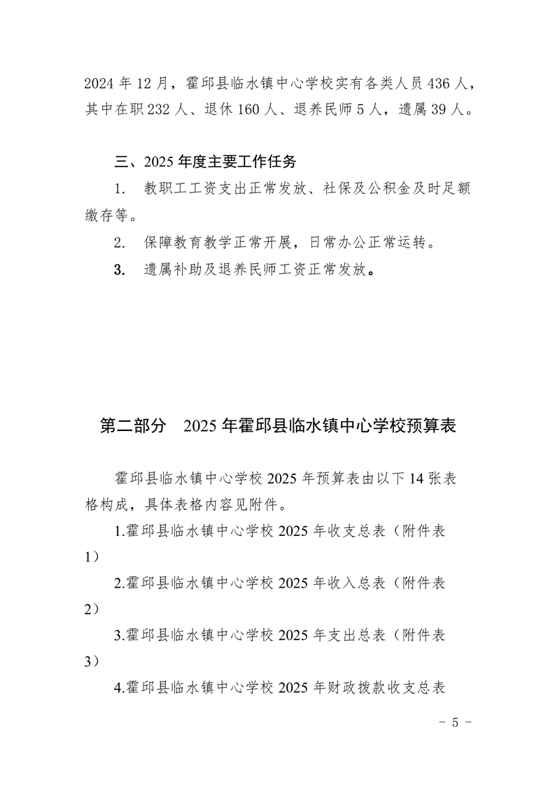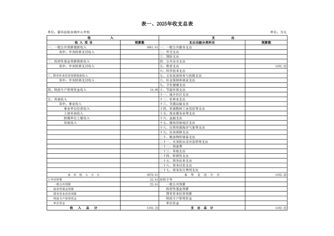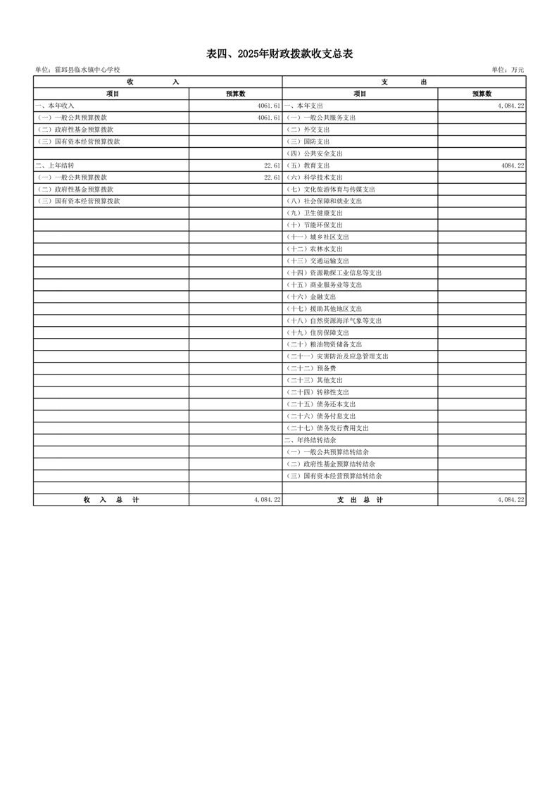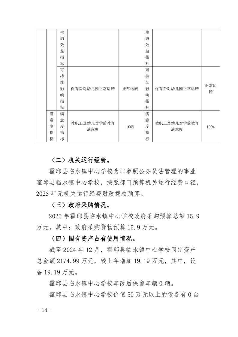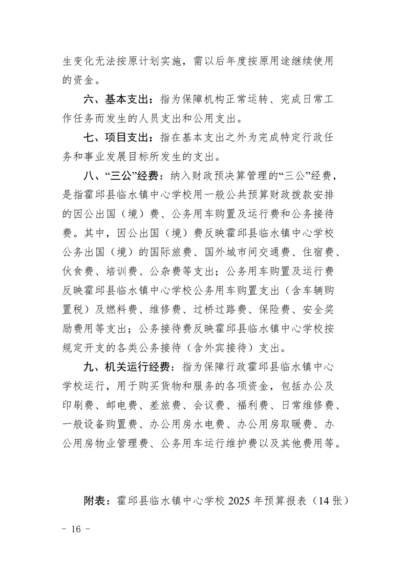 霍邱县临水镇中心学校2025 年预算