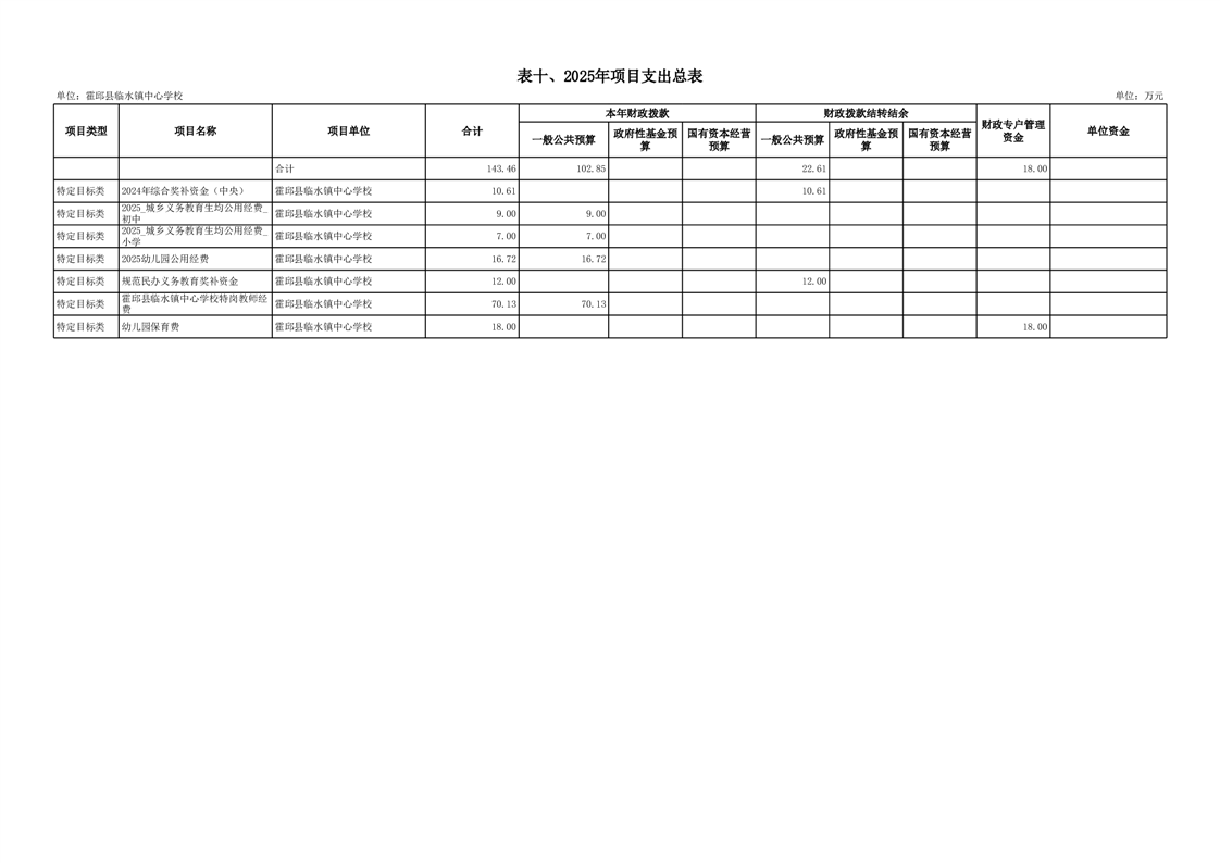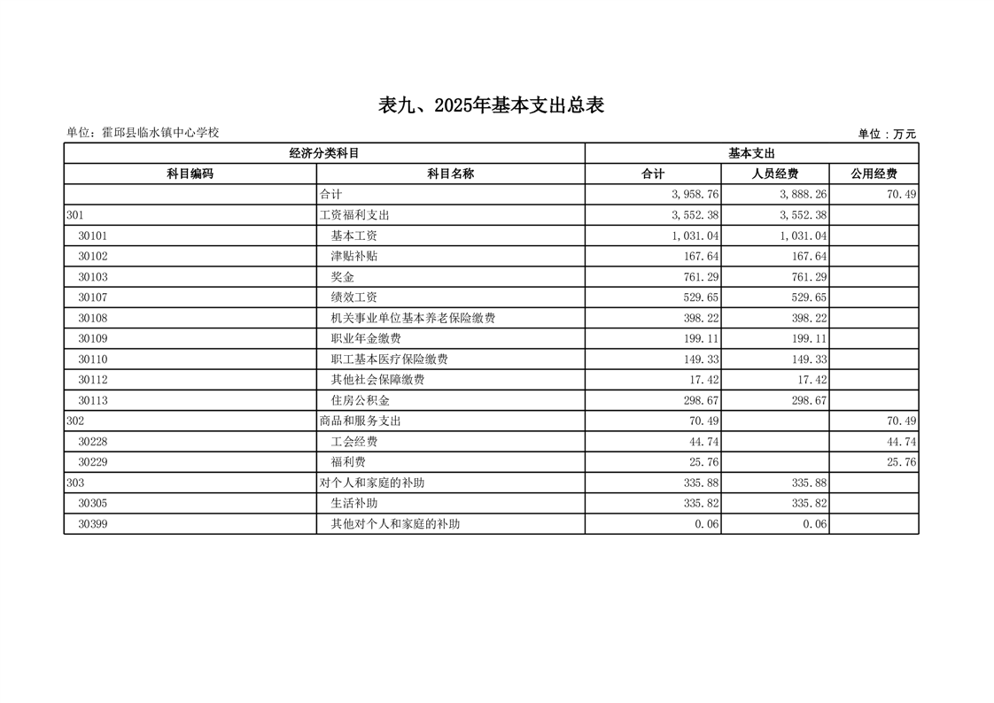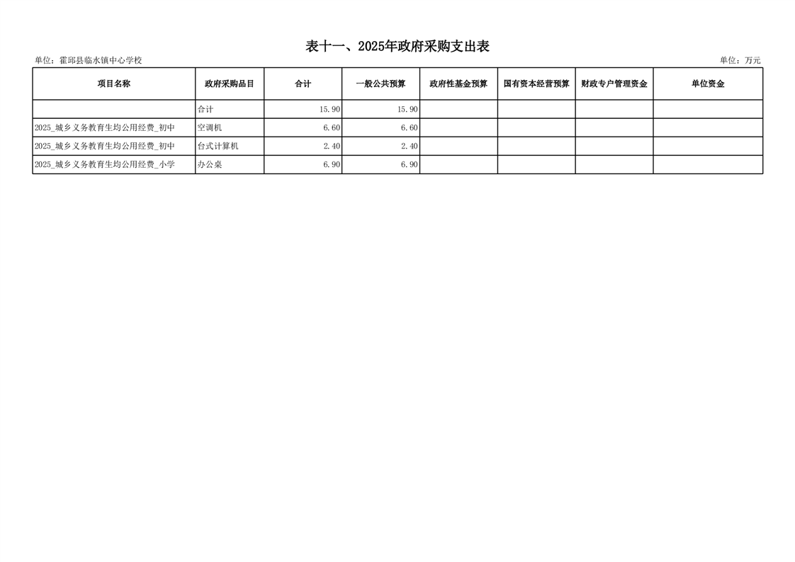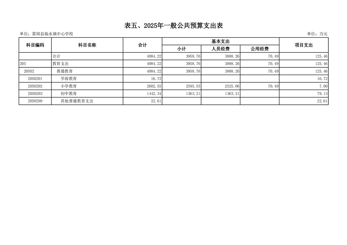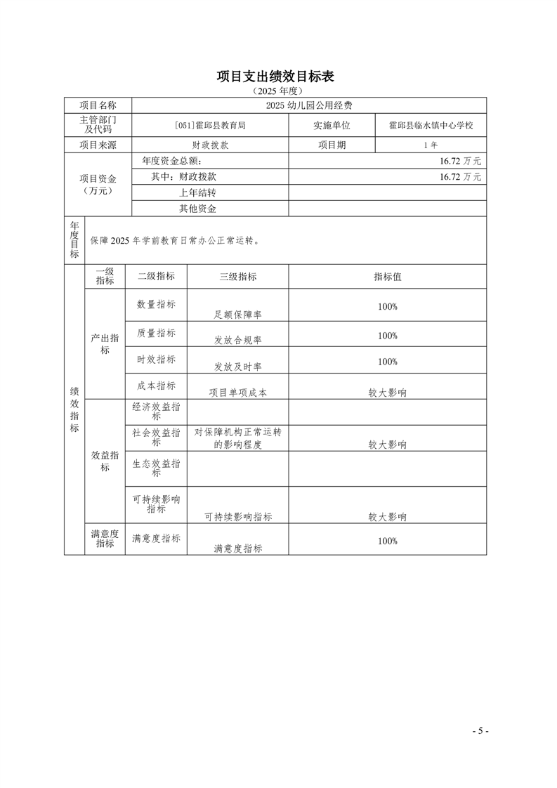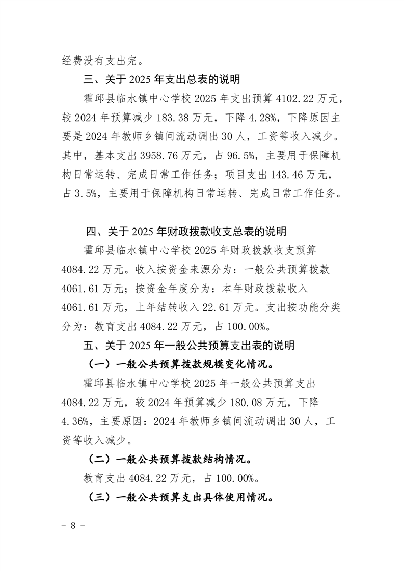 霍邱县临水镇中心学校2025 年预算