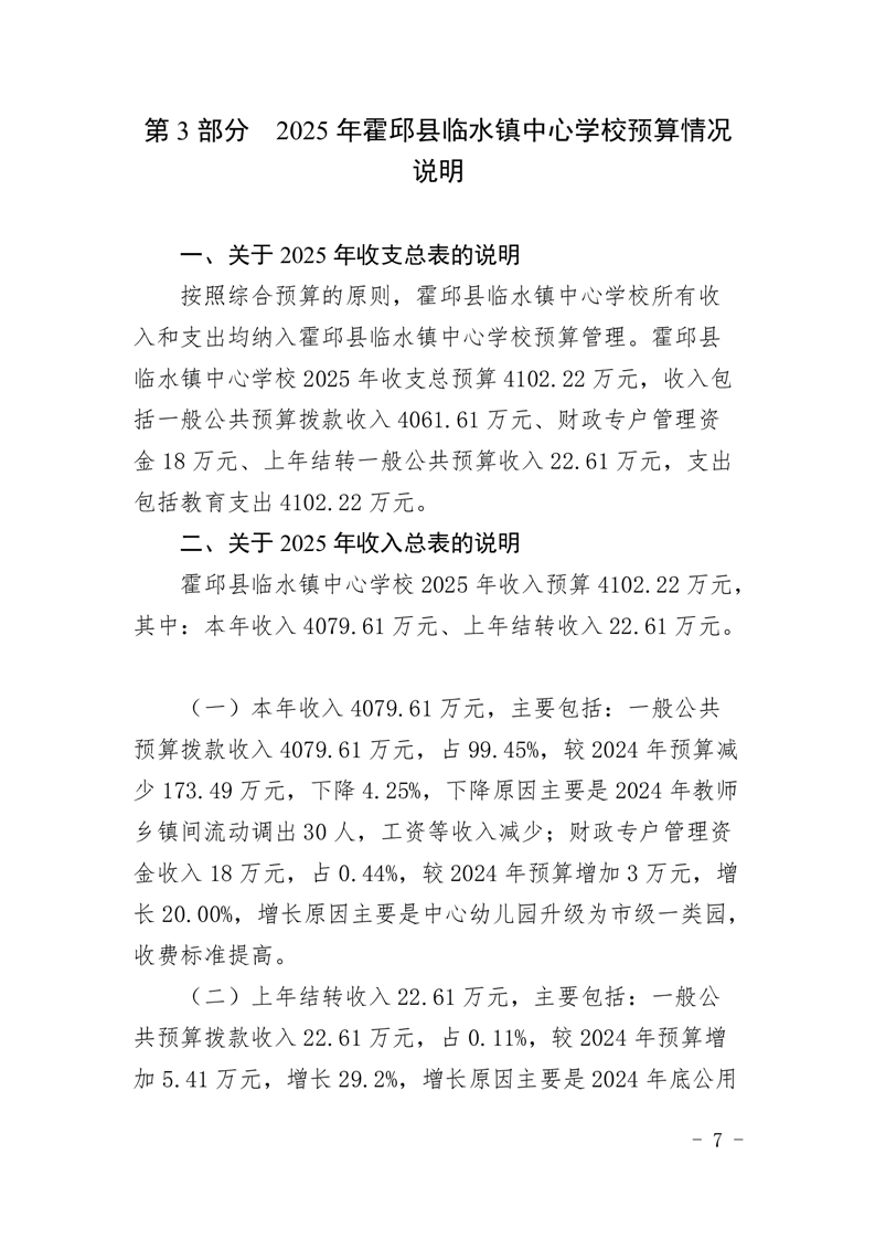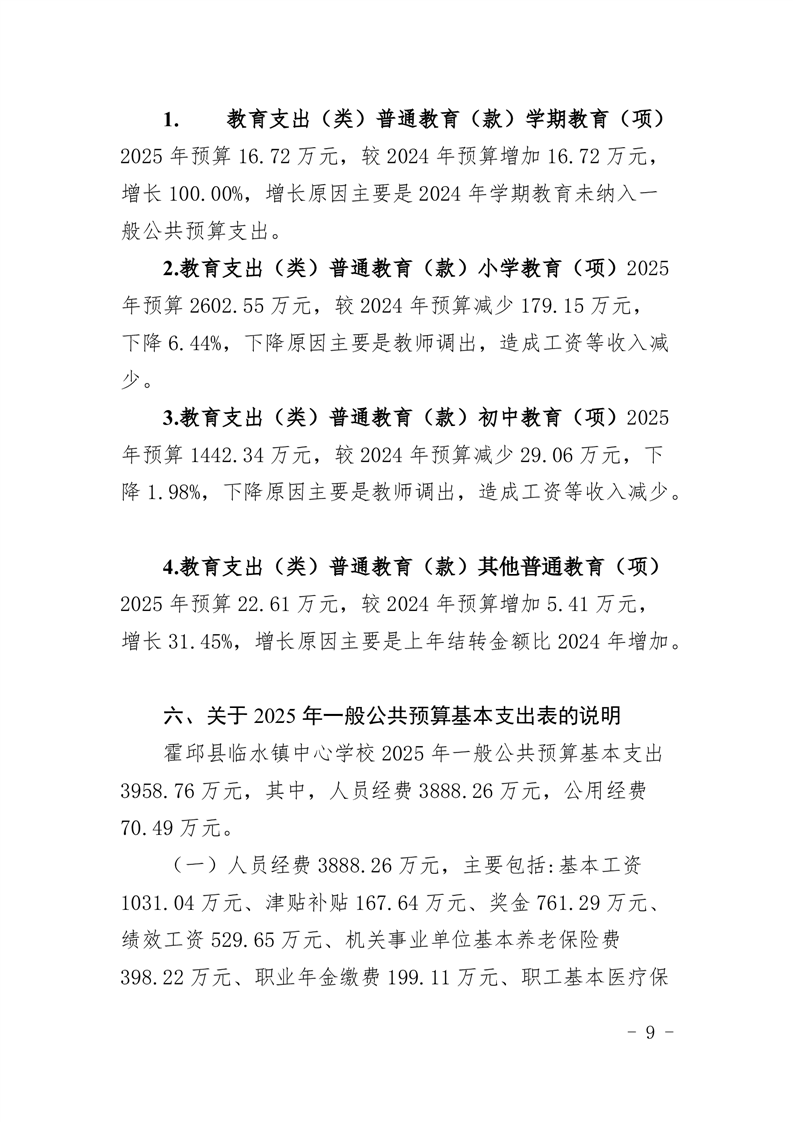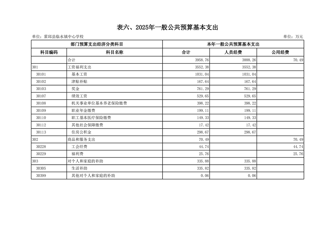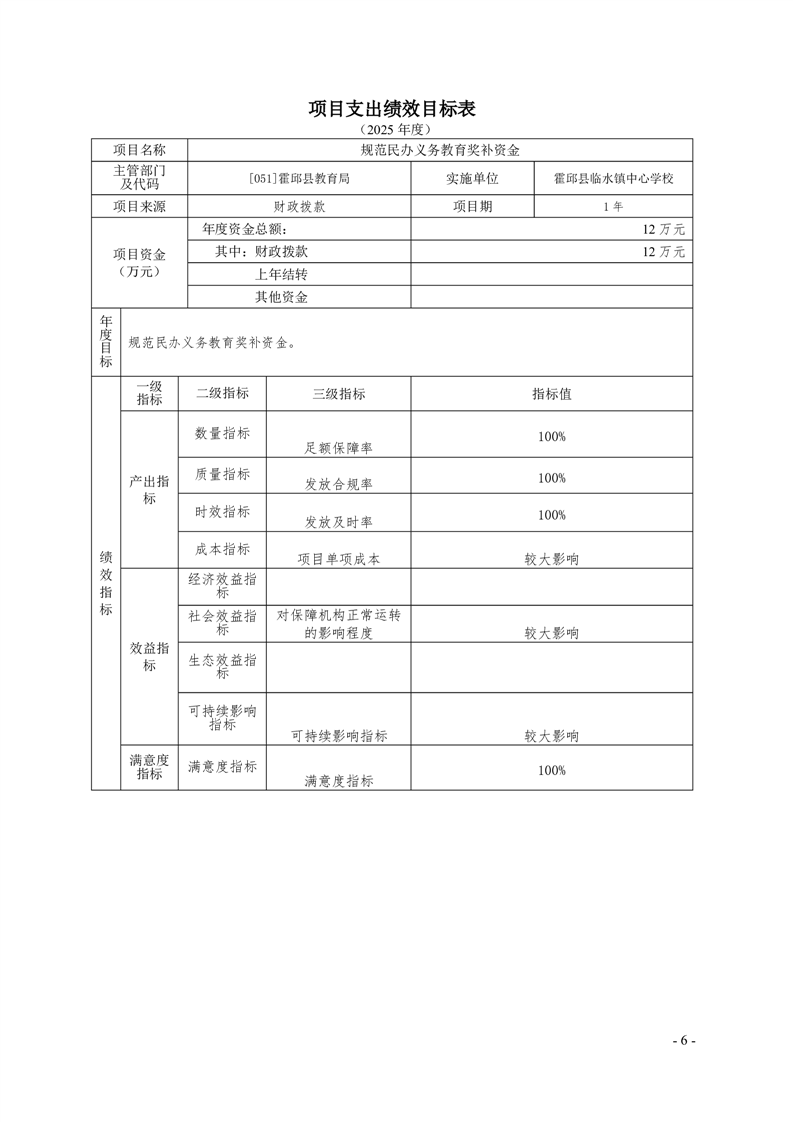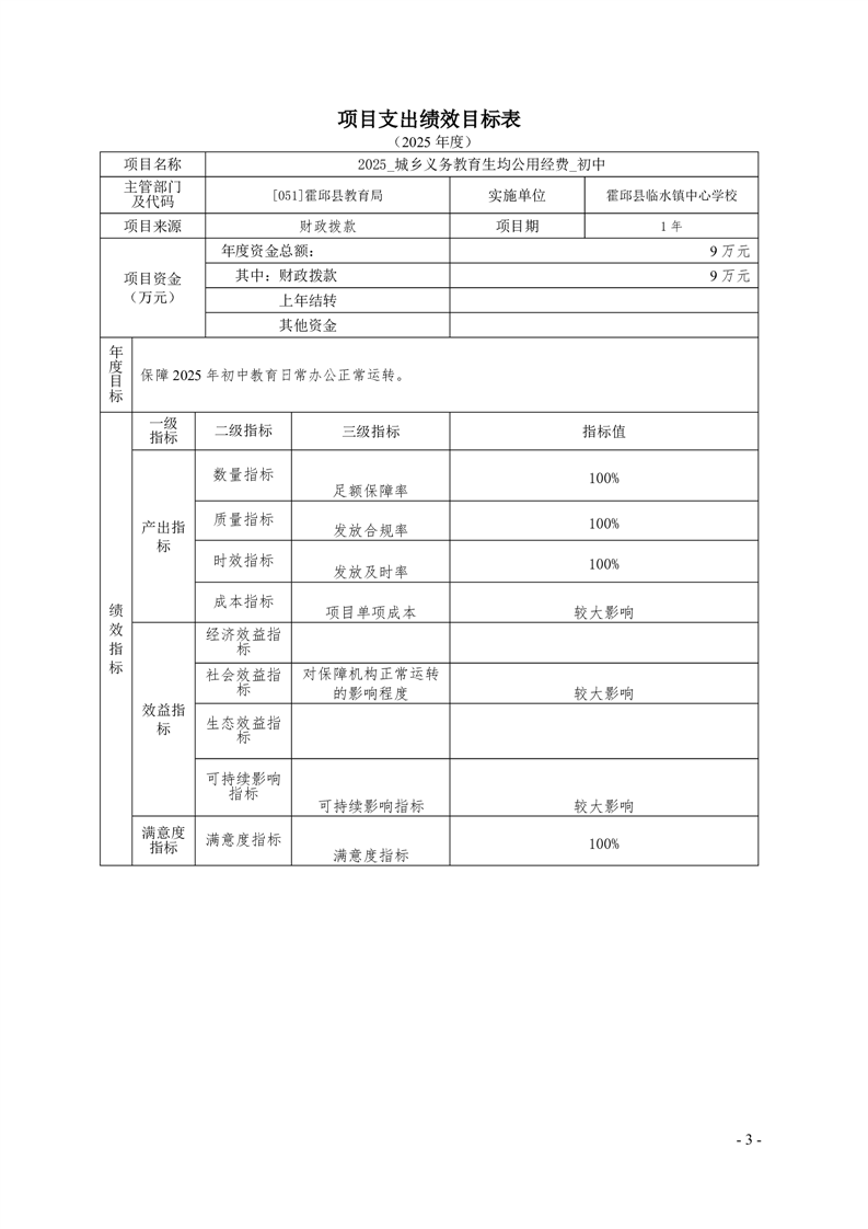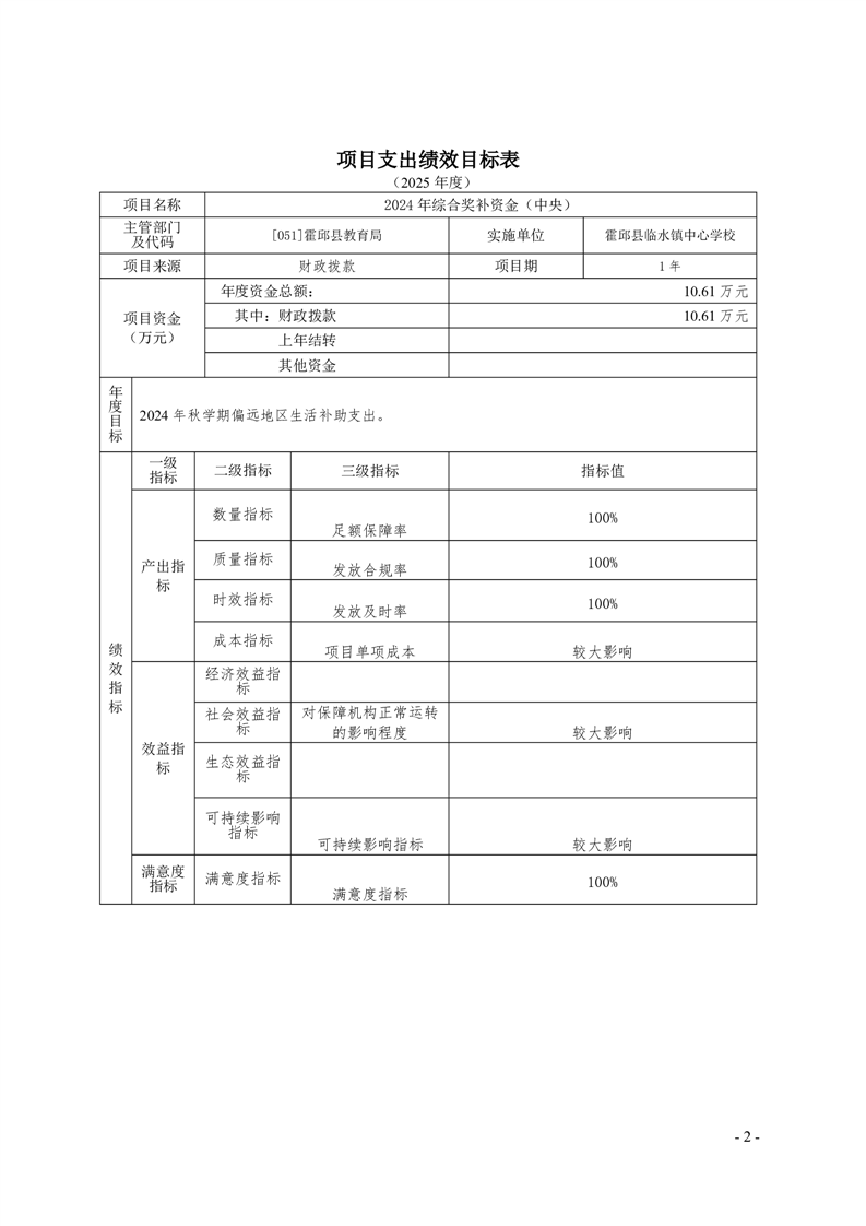 霍邱县临水镇中心学校2025 年预算