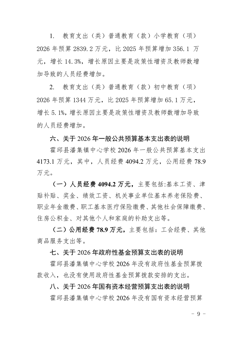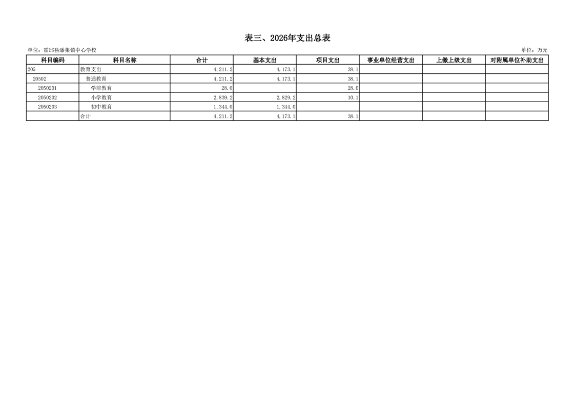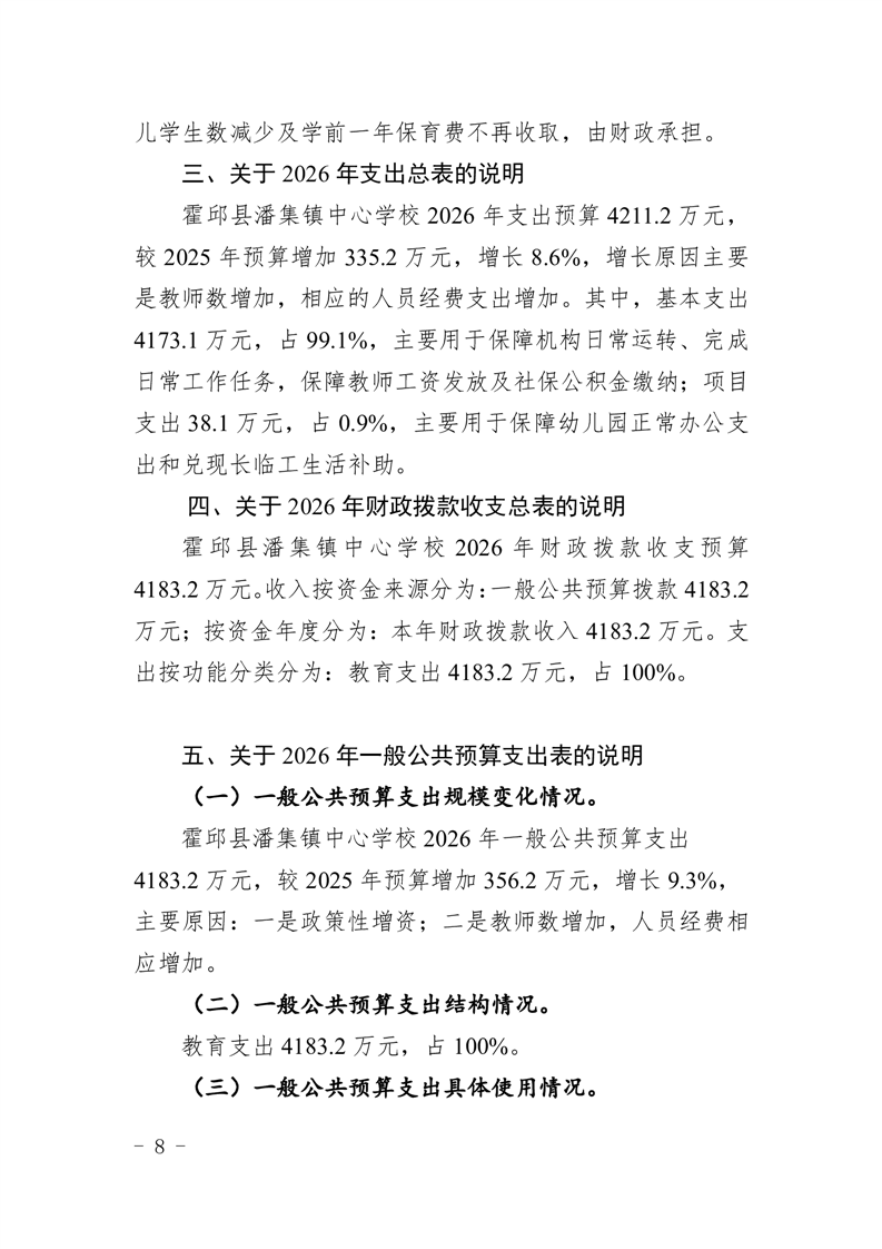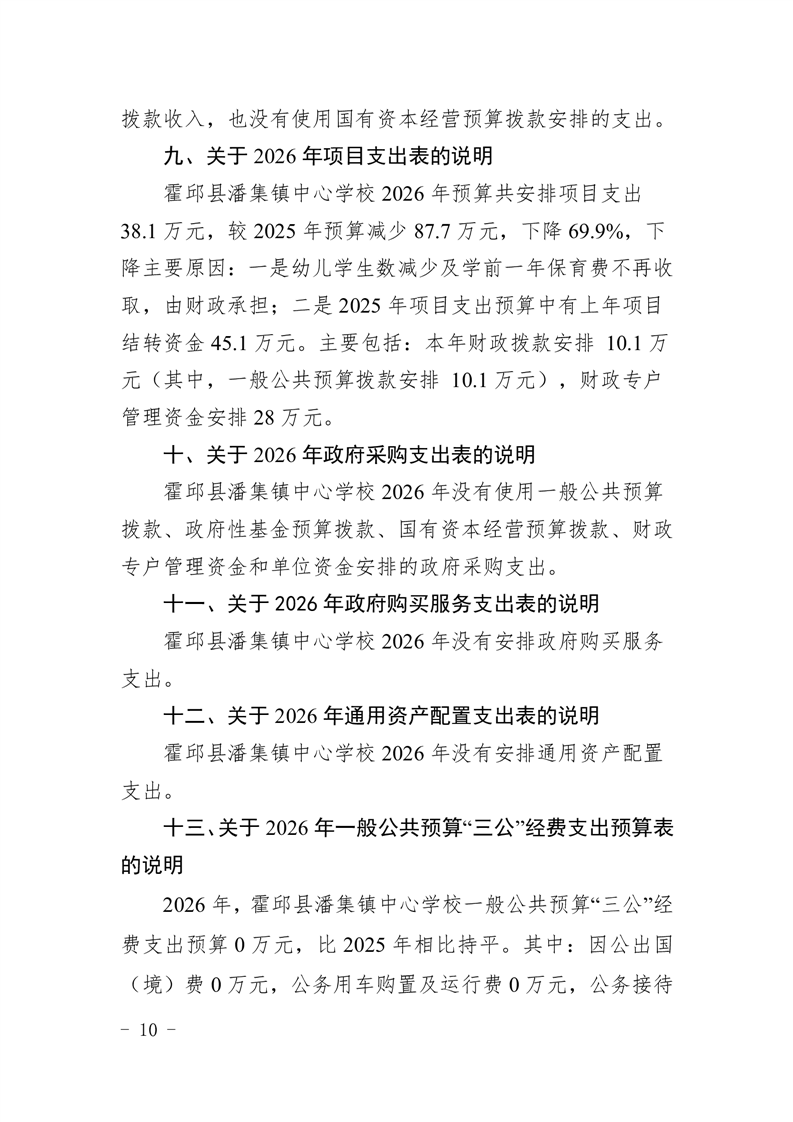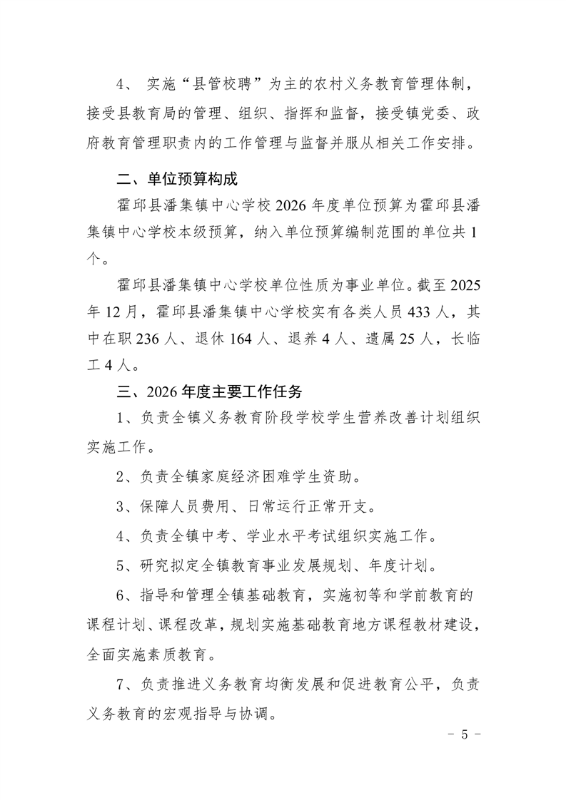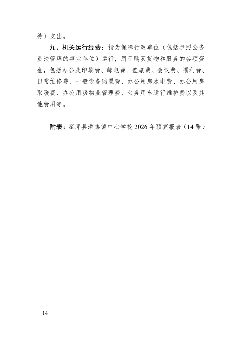 霍邱县潘集镇中心学校2026 年单位预算
