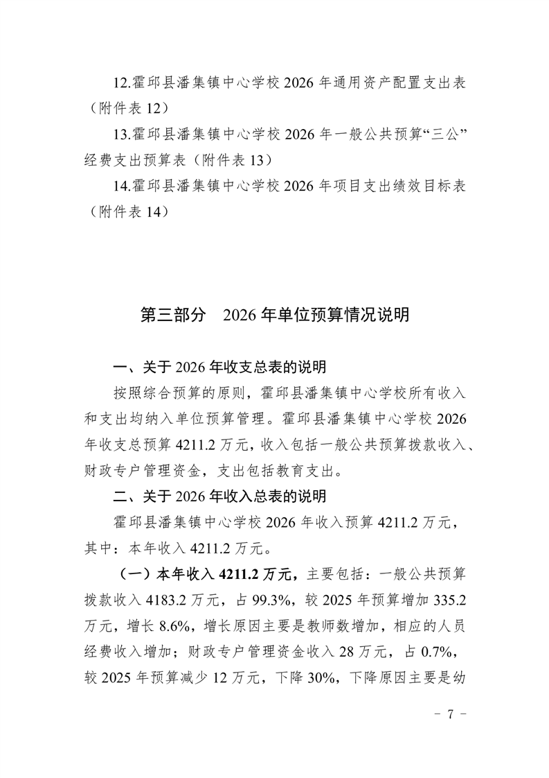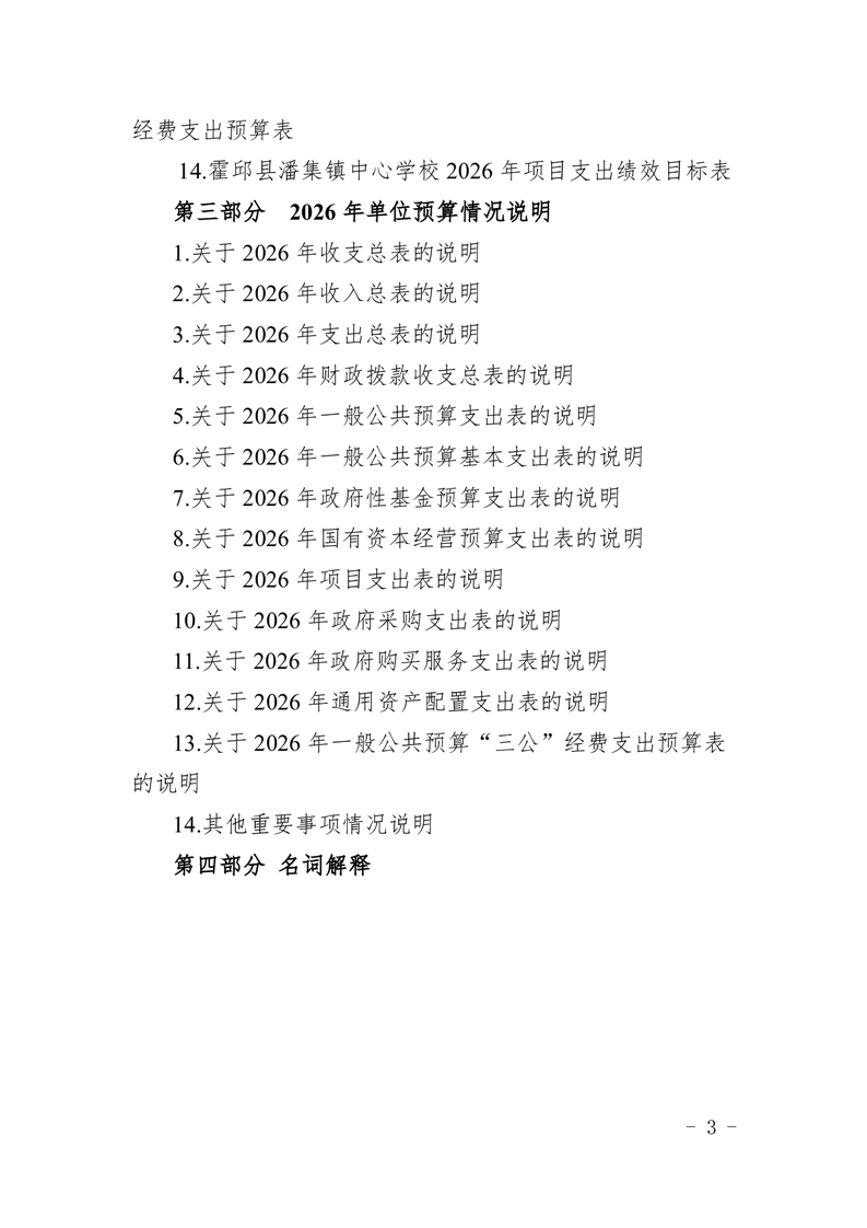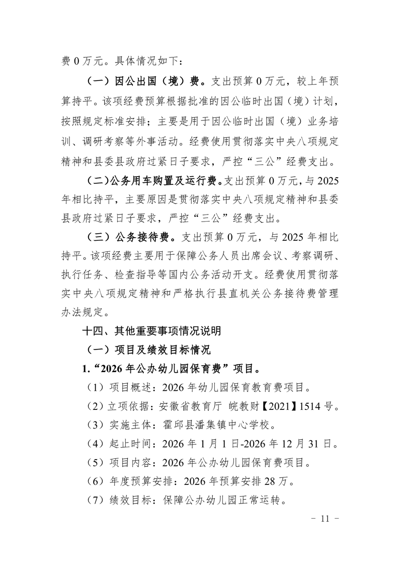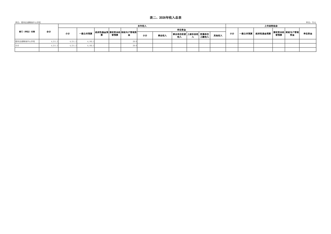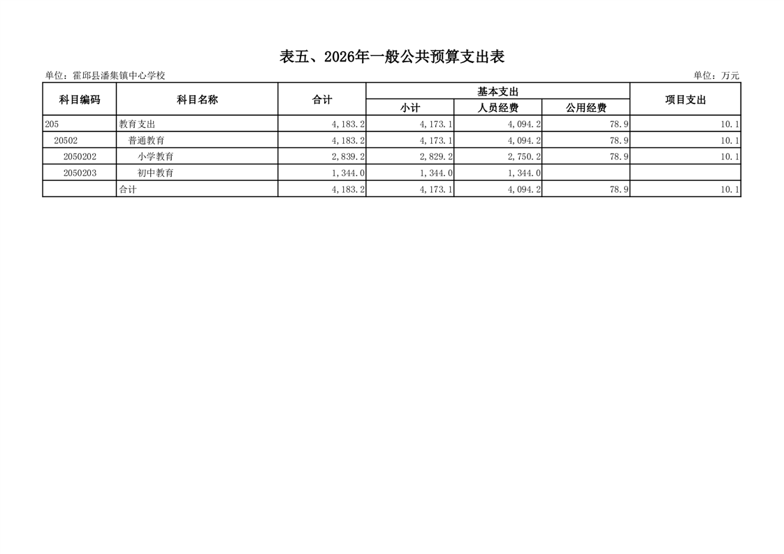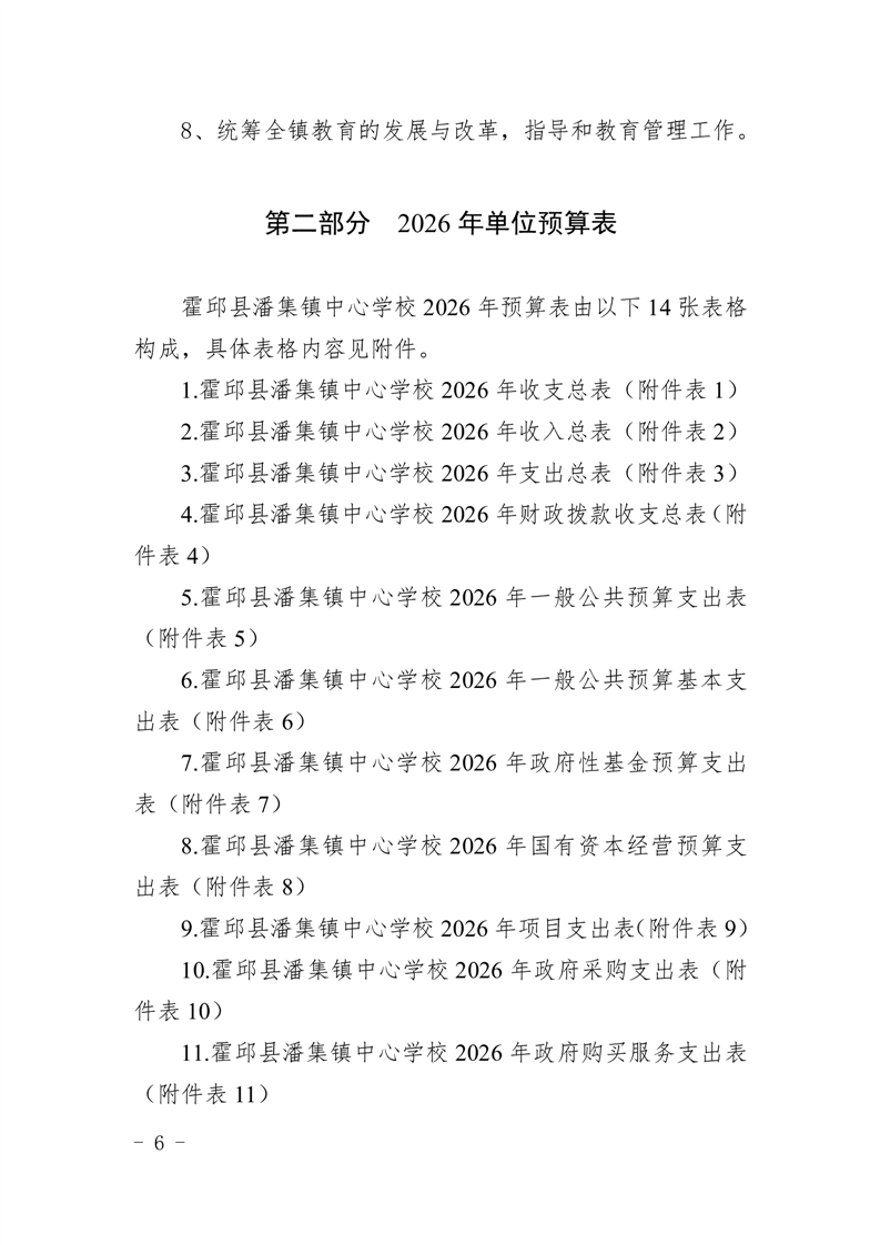 霍邱县潘集镇中心学校2026 年单位预算