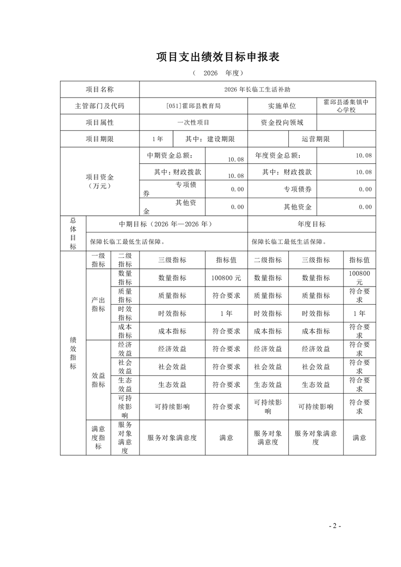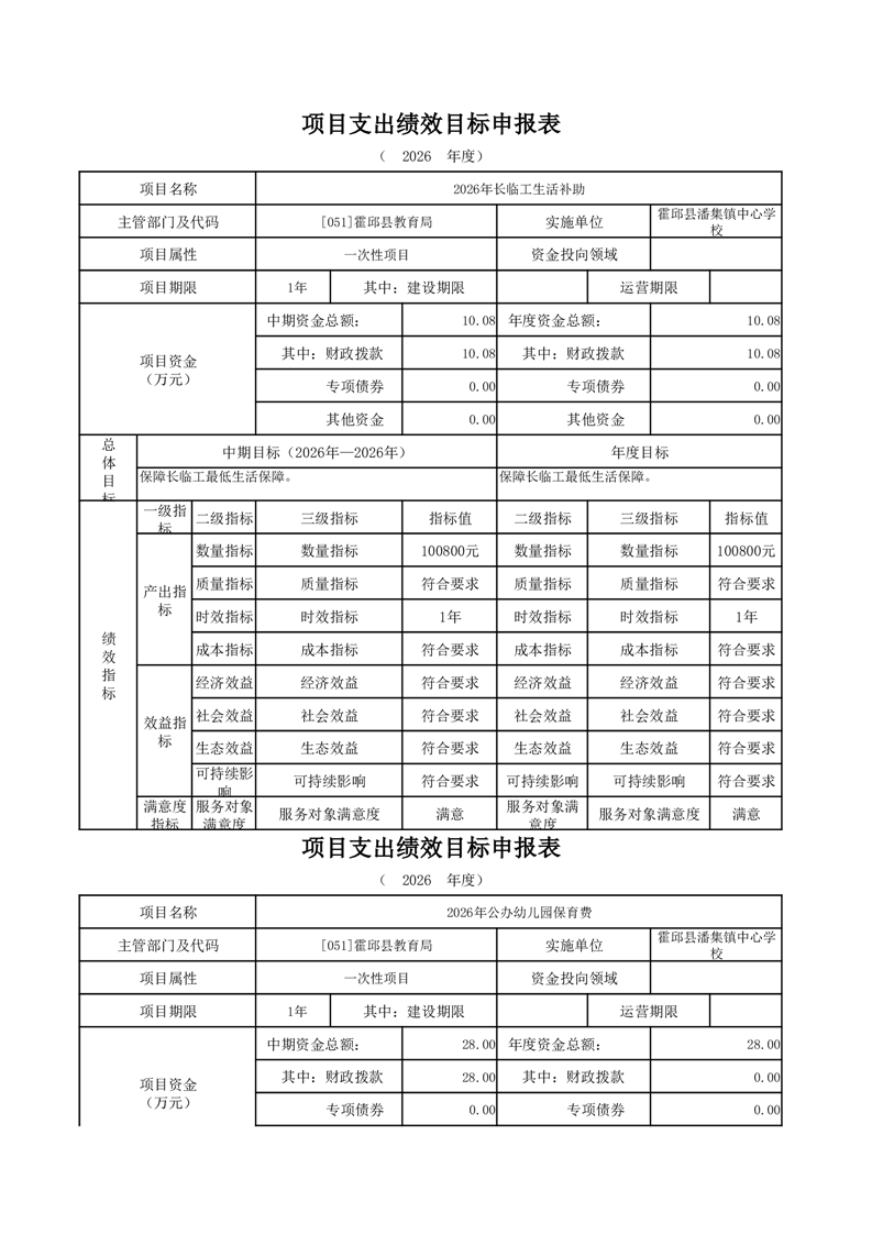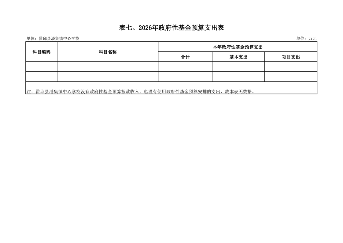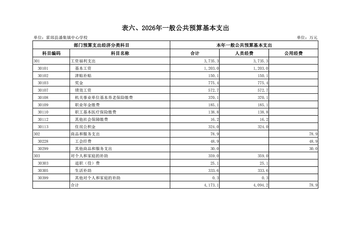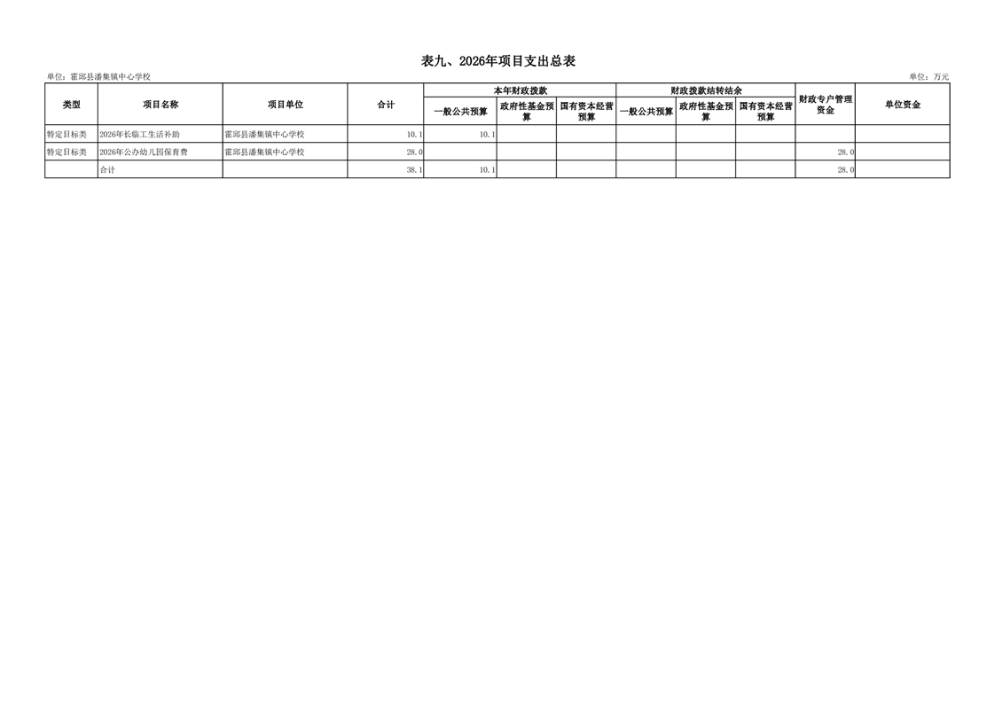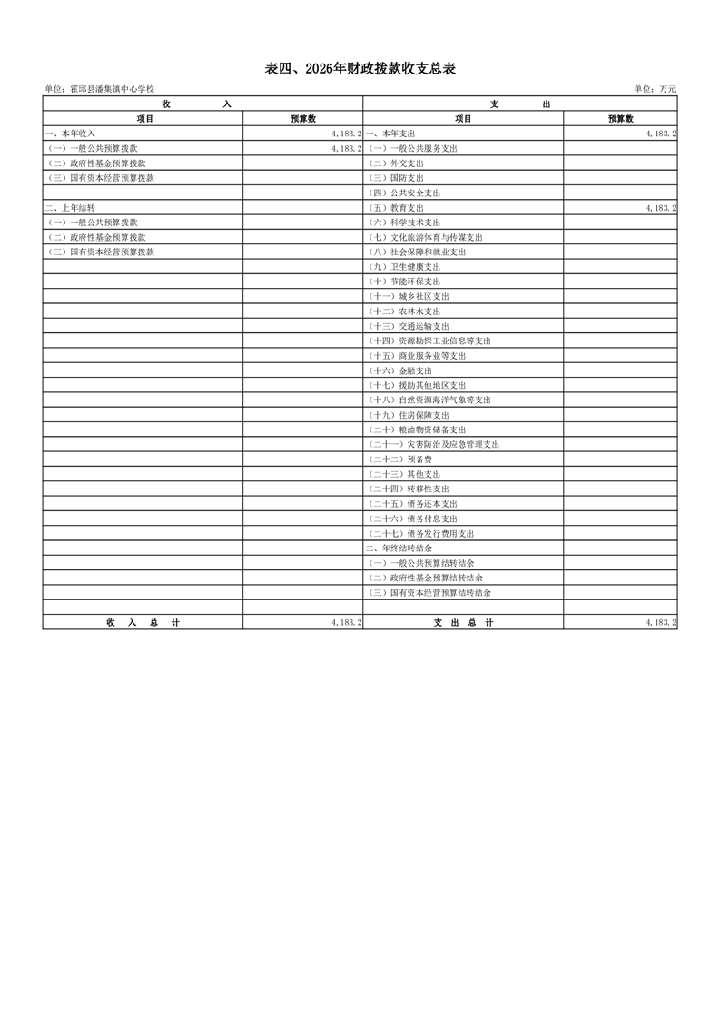 霍邱县潘集镇中心学校2026 年单位预算