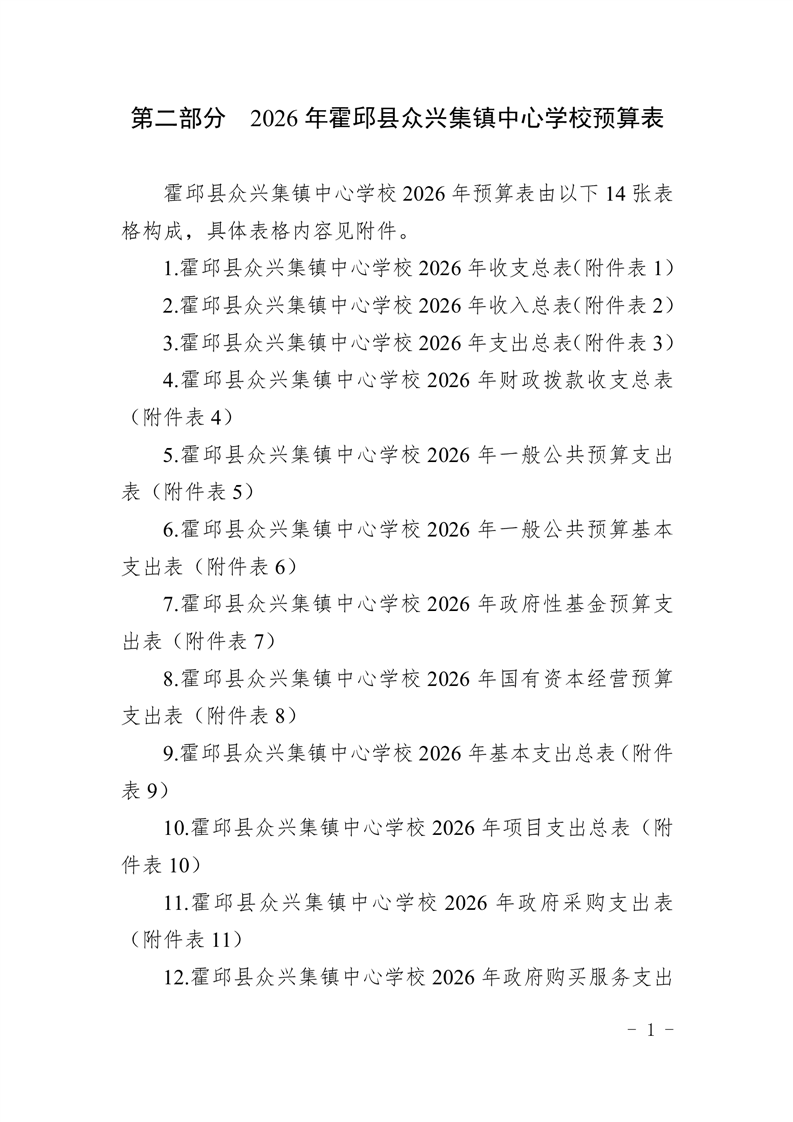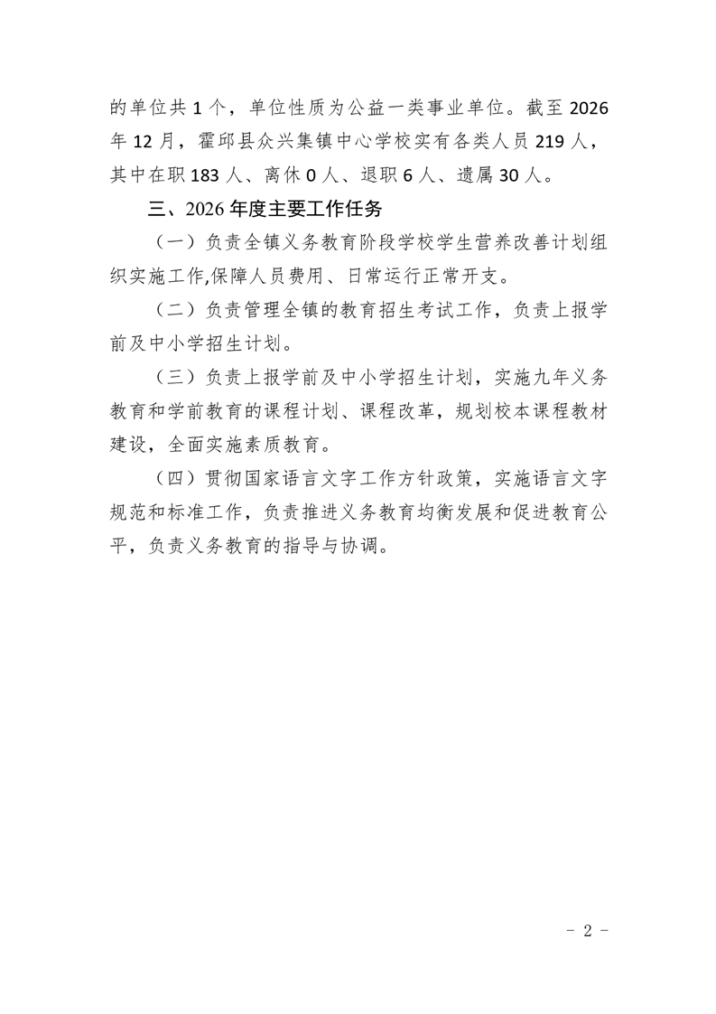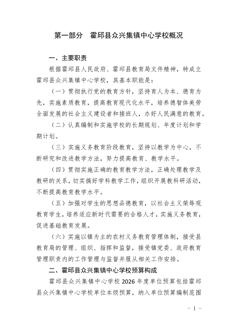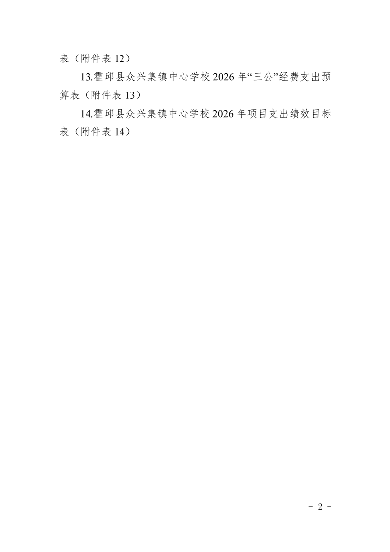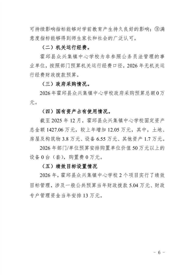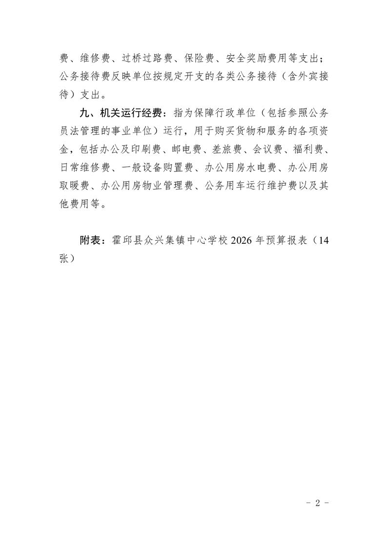 霍邱县众兴集镇中心学校2026 年单位预算