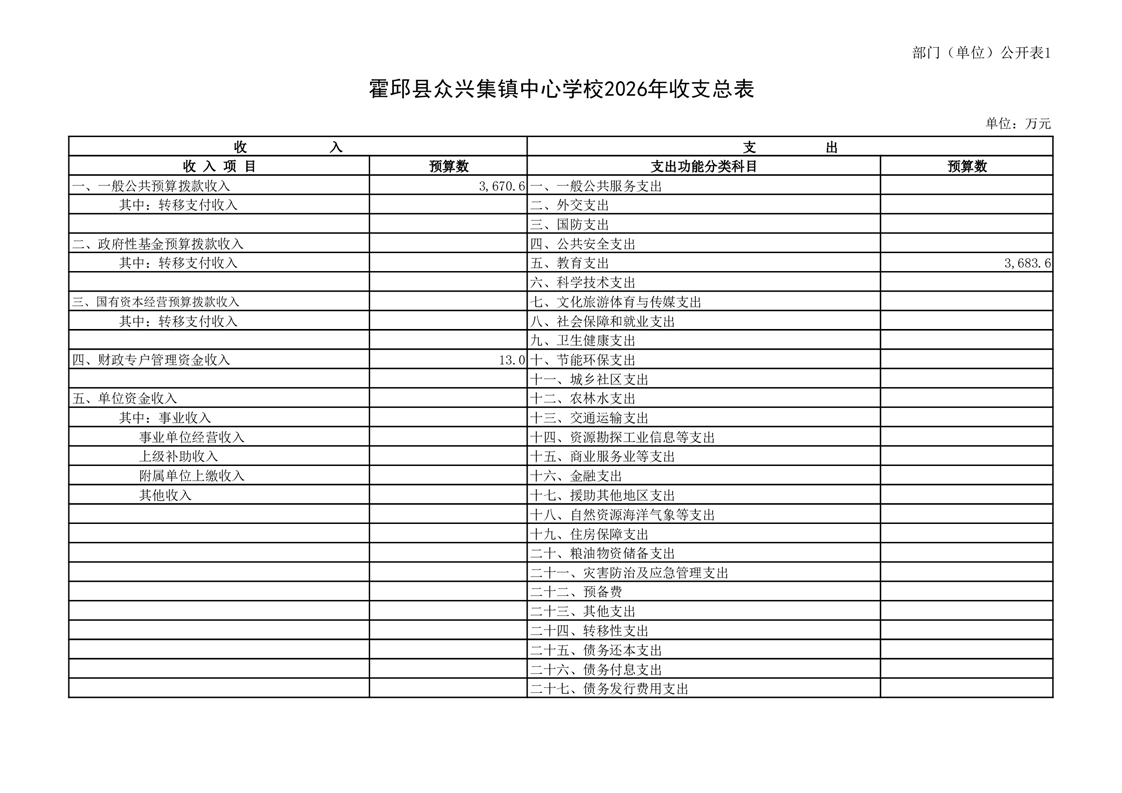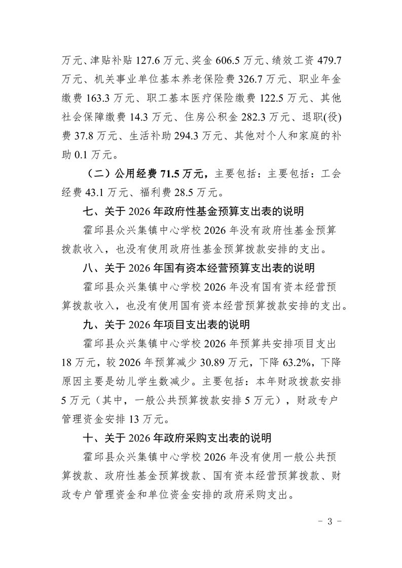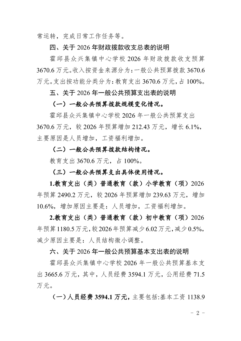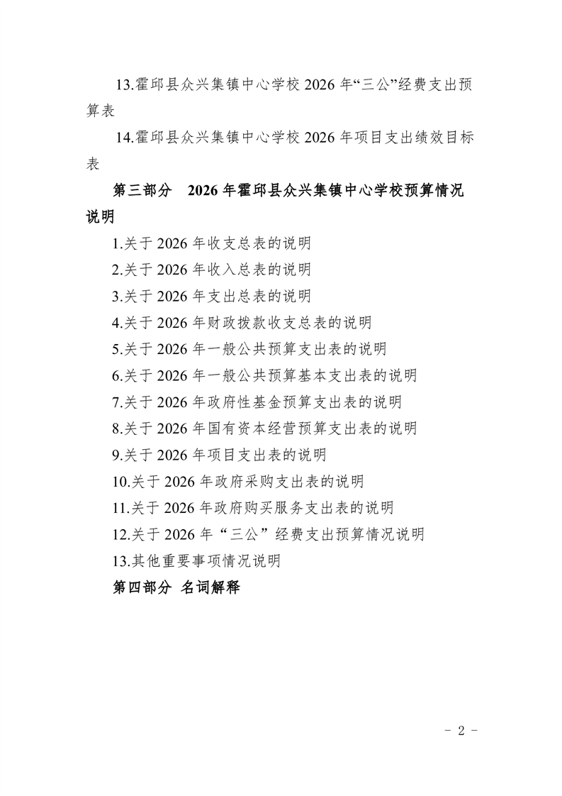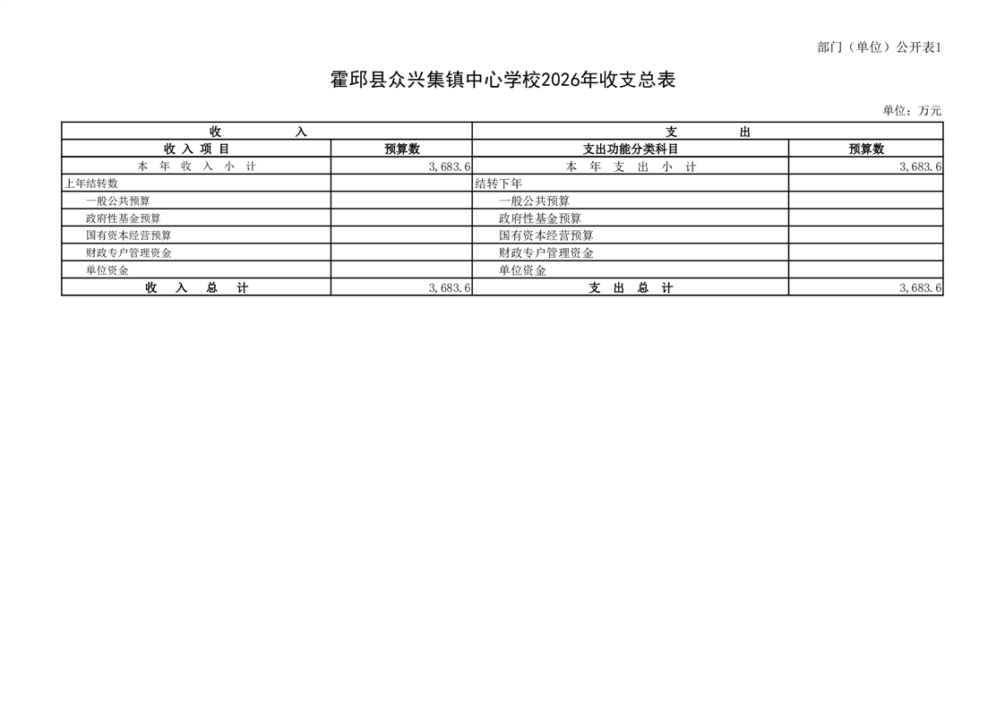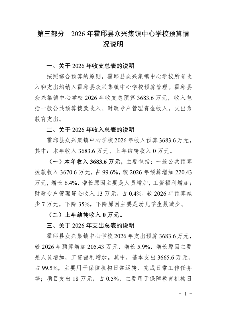 霍邱县众兴集镇中心学校2026 年单位预算