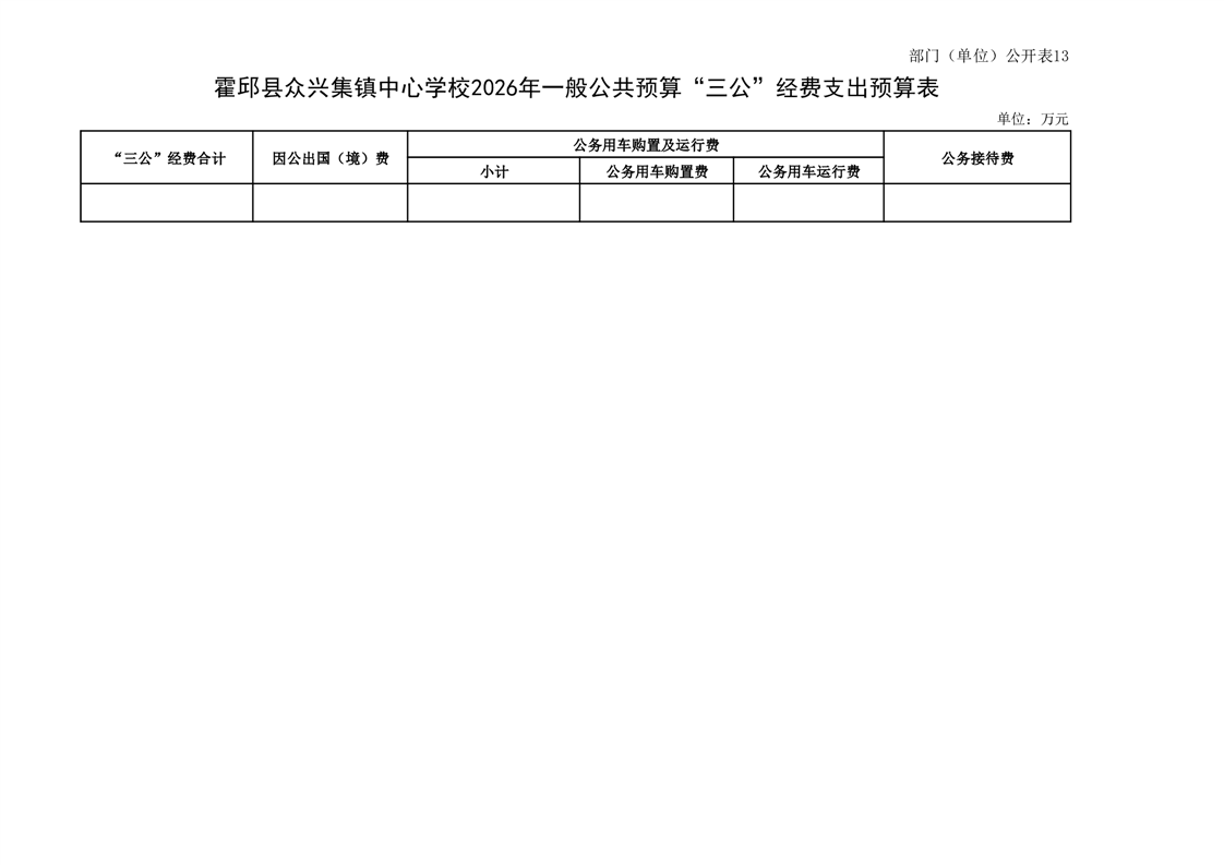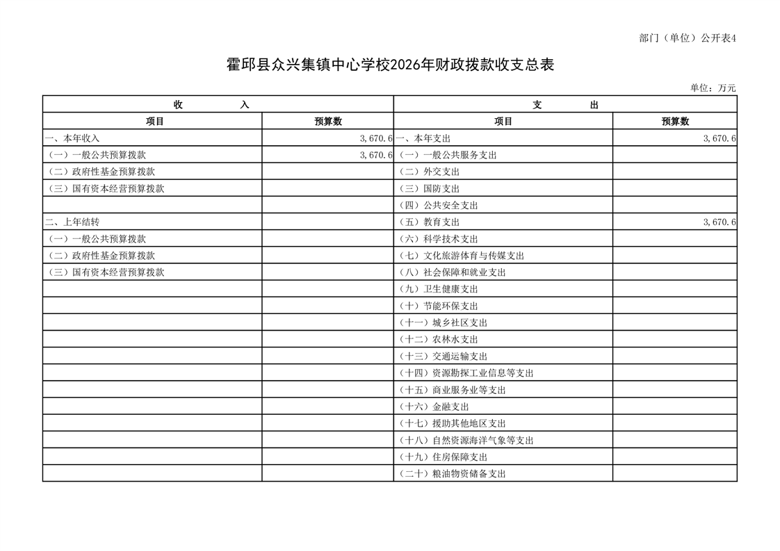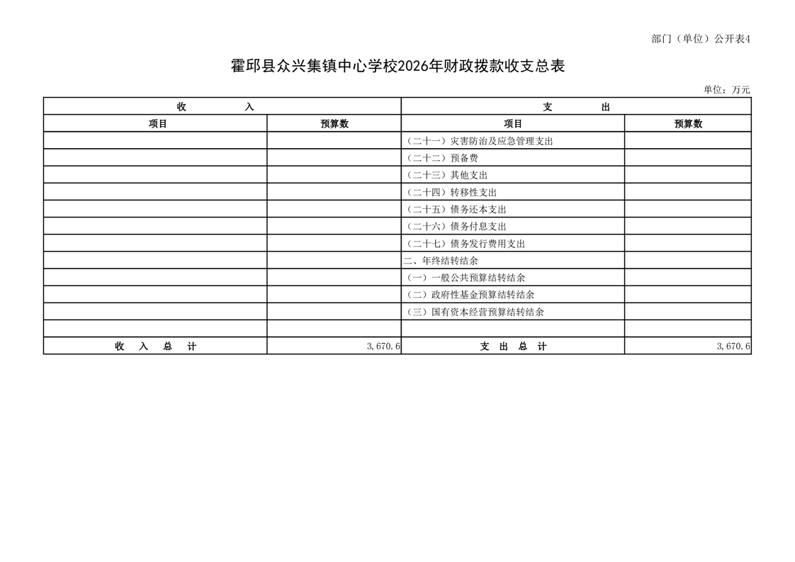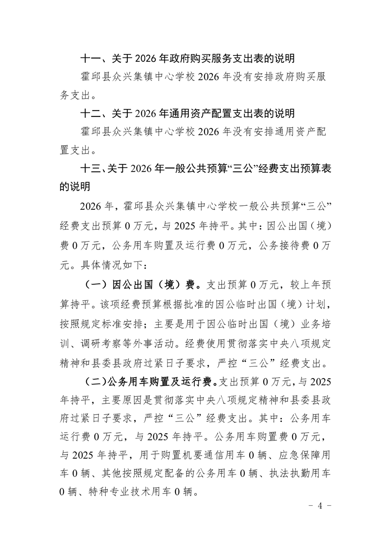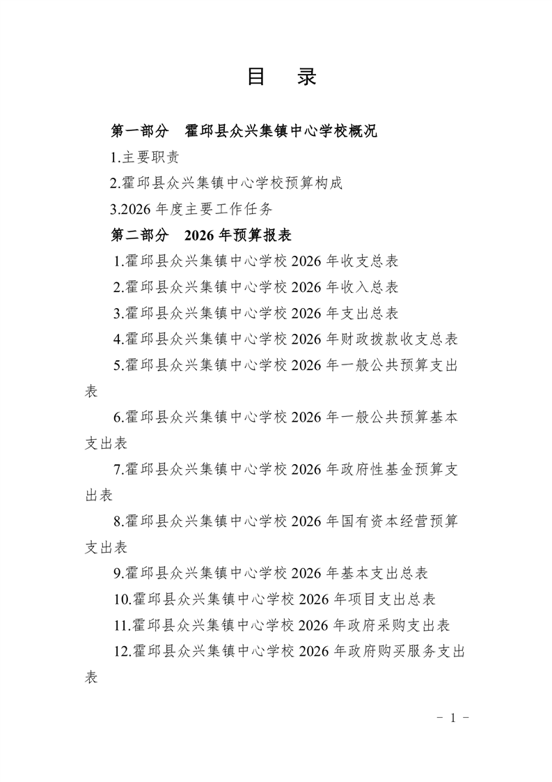 霍邱县众兴集镇中心学校2026 年单位预算