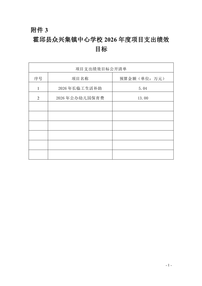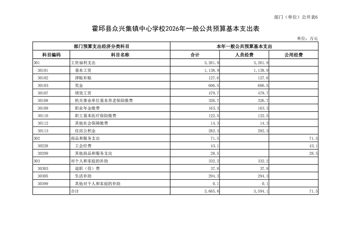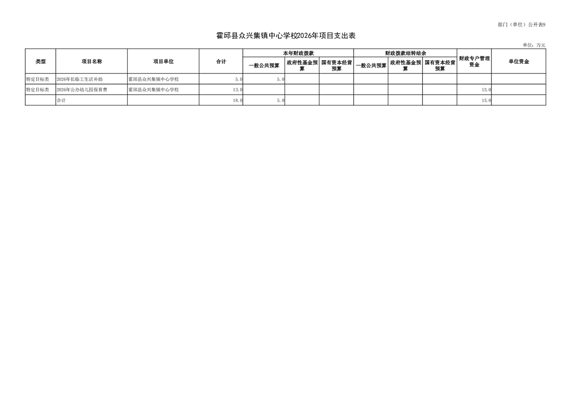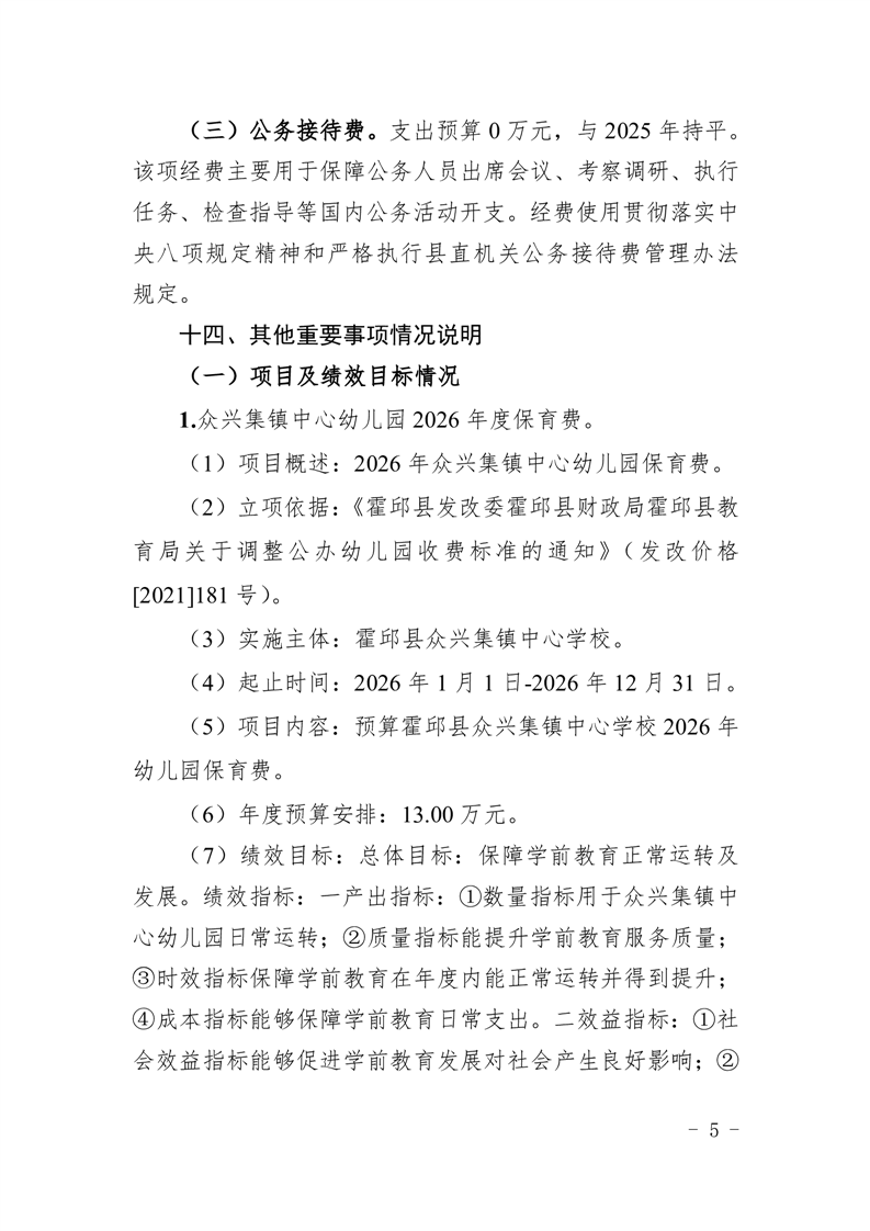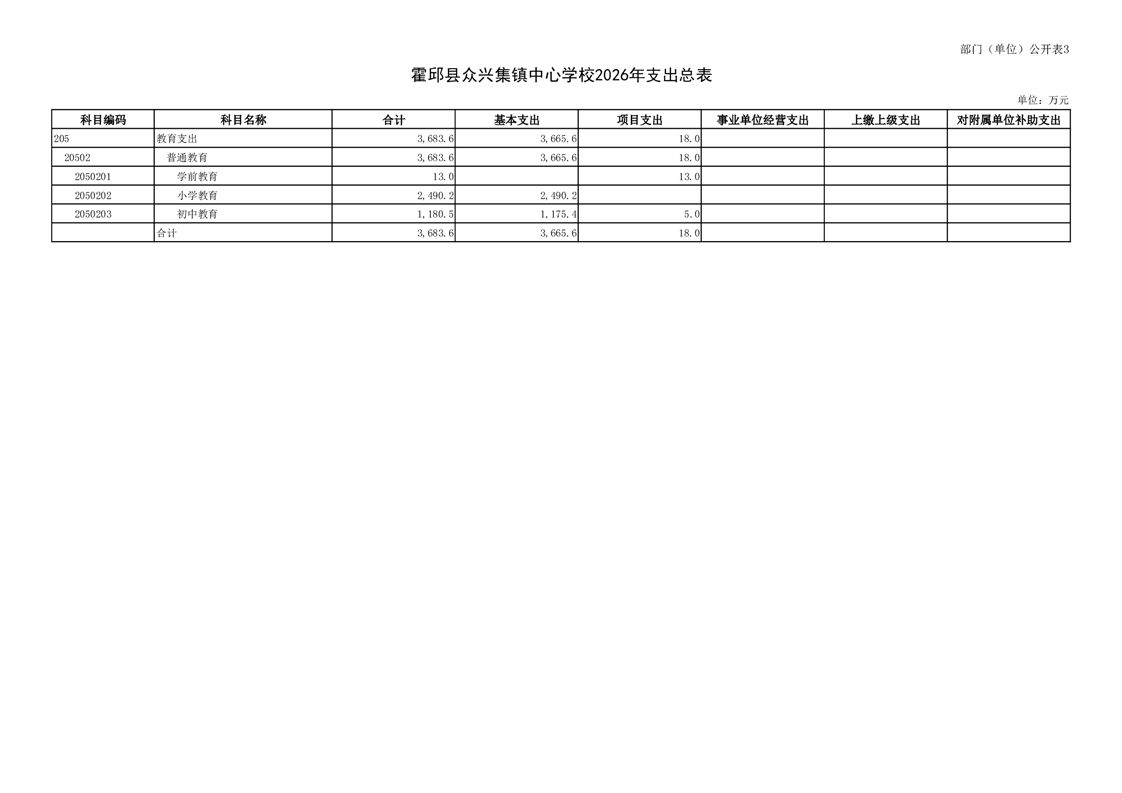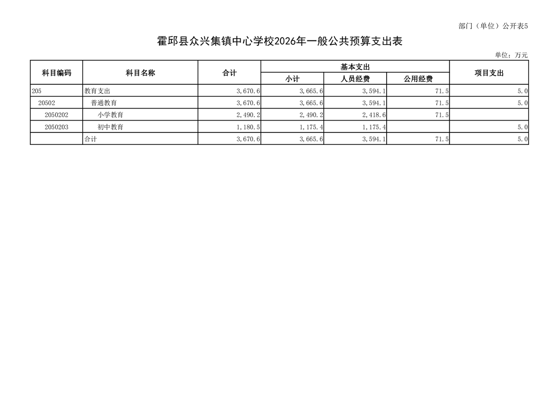 霍邱县众兴集镇中心学校2026 年单位预算