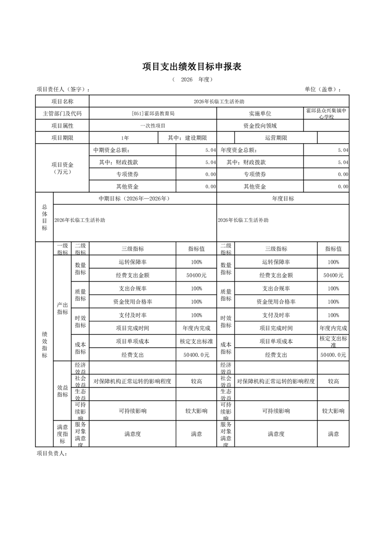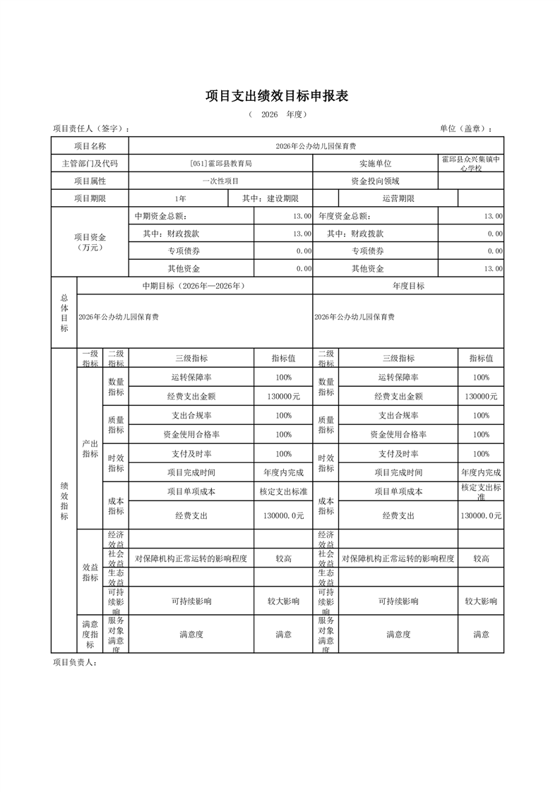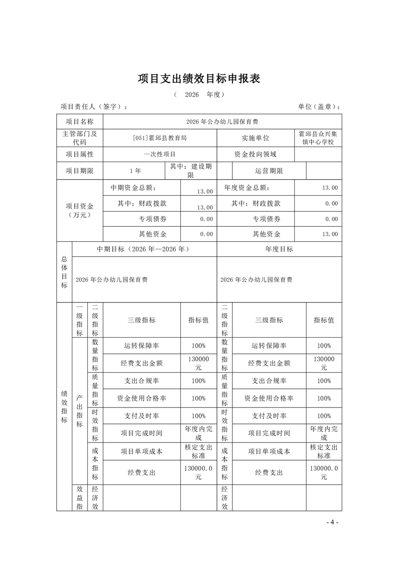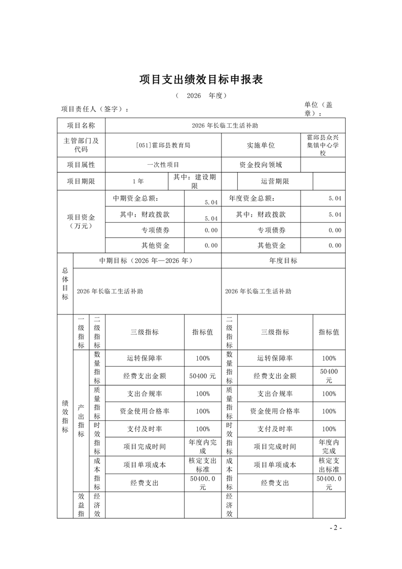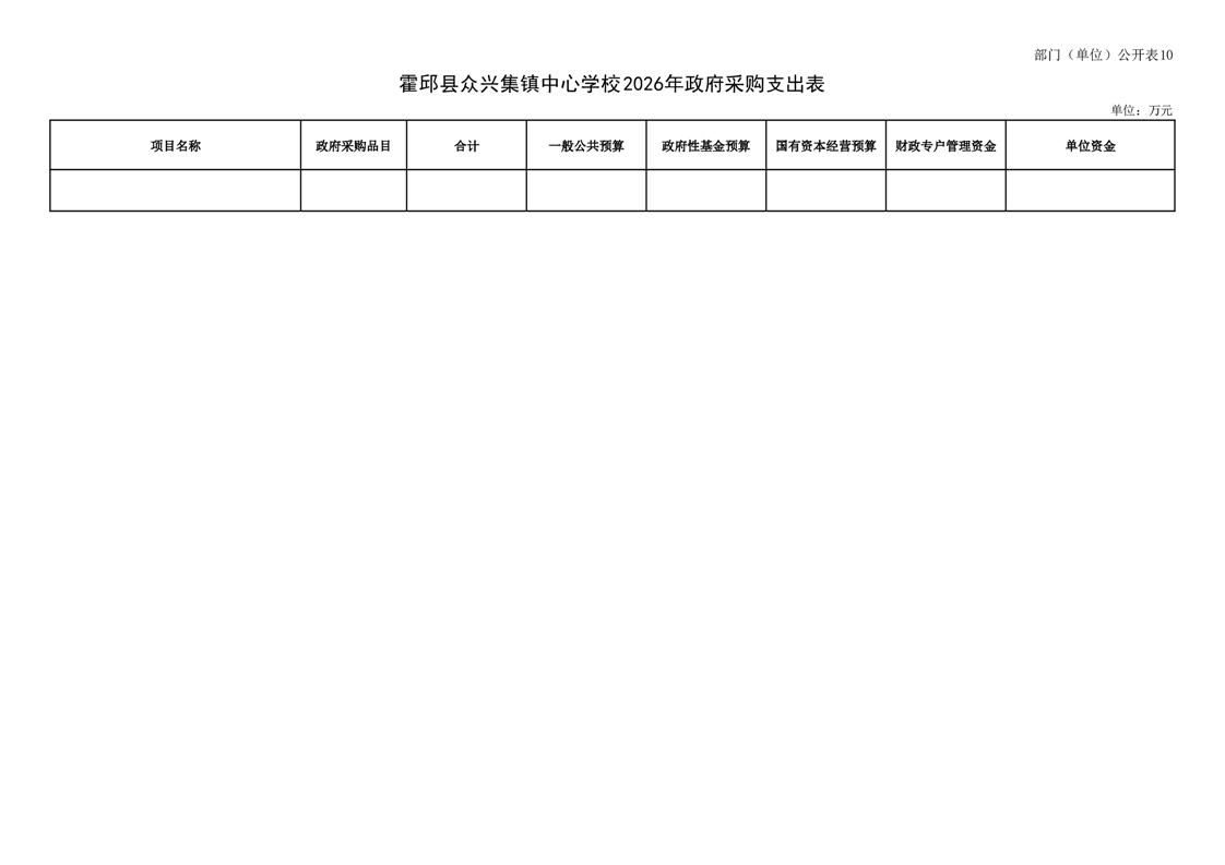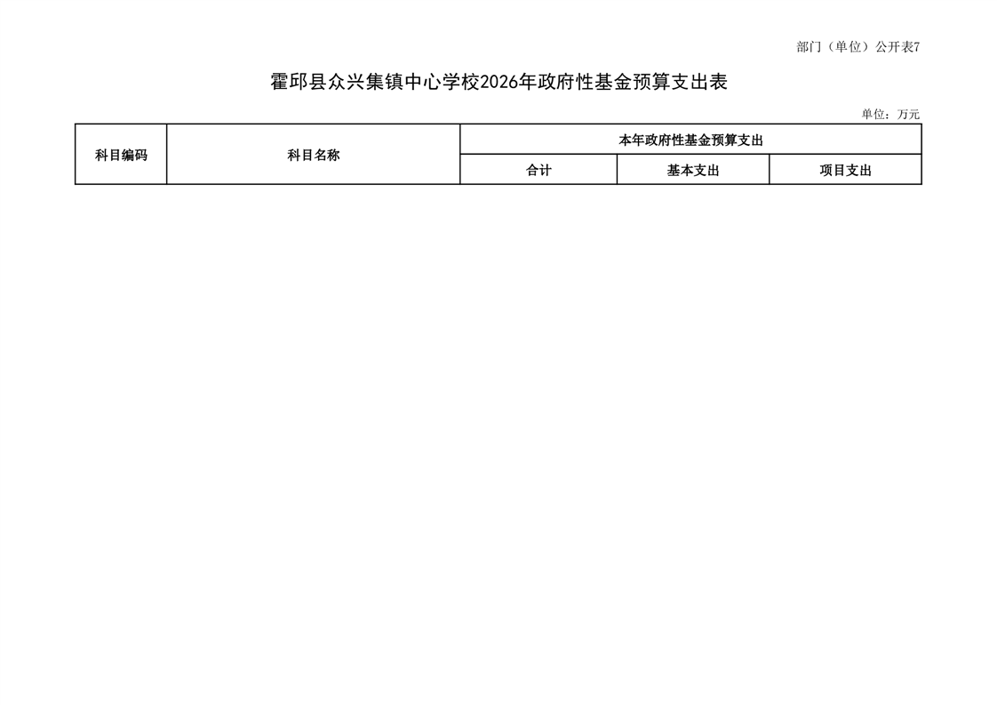 霍邱县众兴集镇中心学校2026 年单位预算