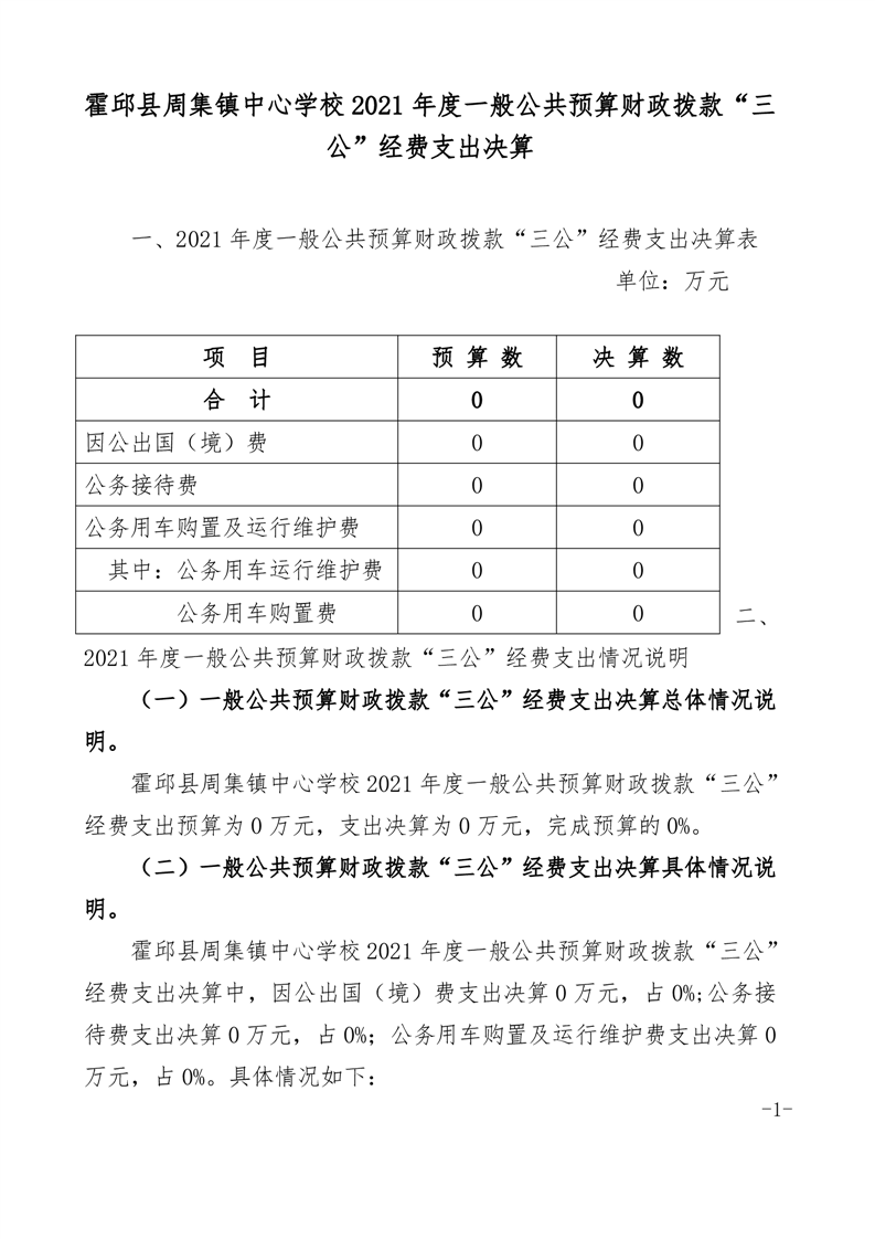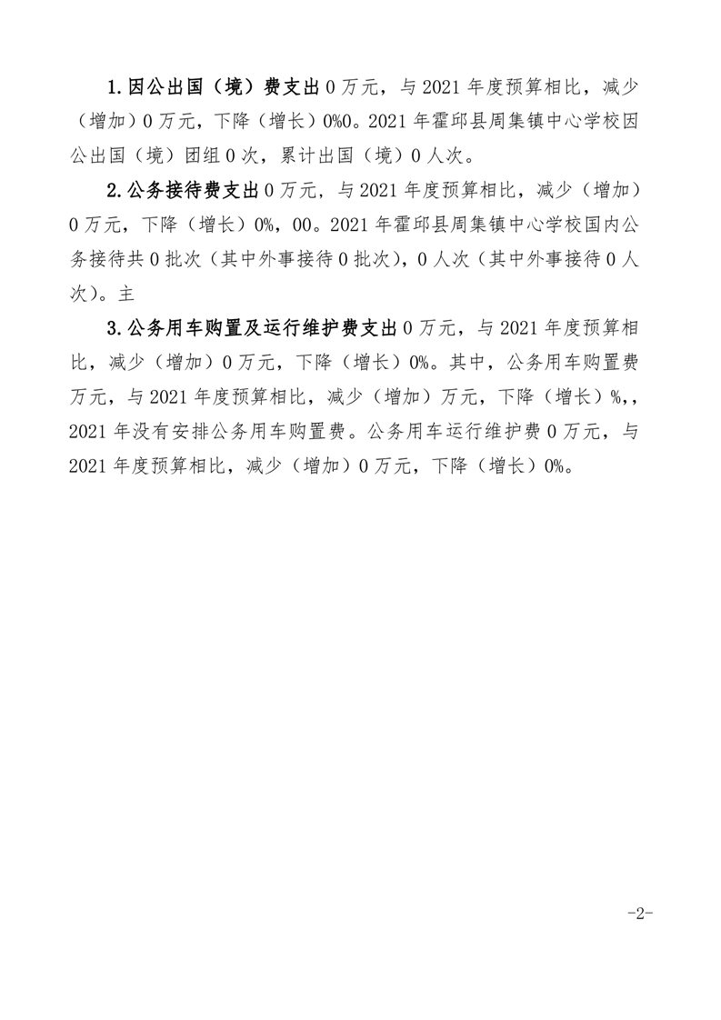 霍邱县周集镇中心学校2021年度一般公共预算财政拨款“三公”经费支出决算