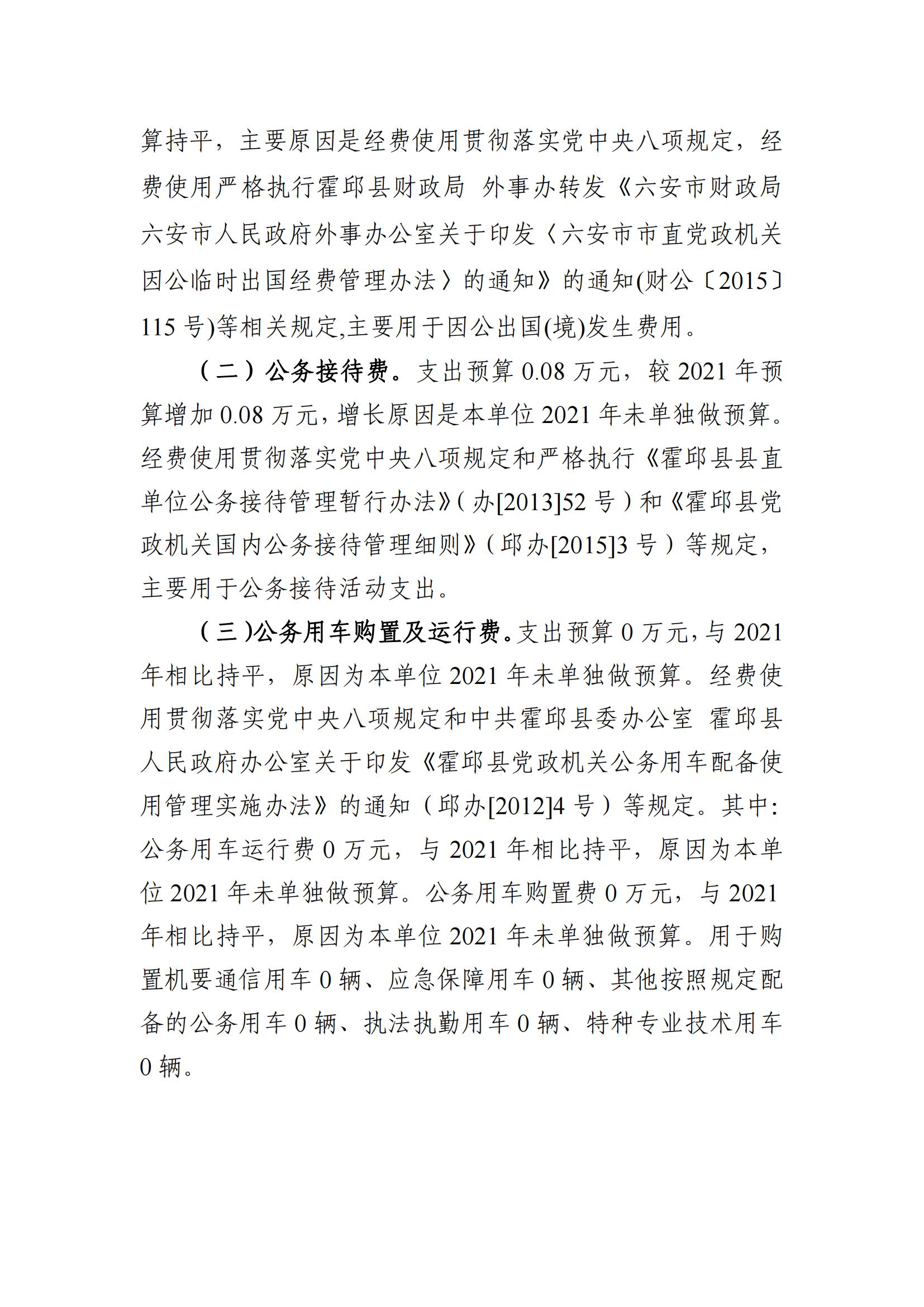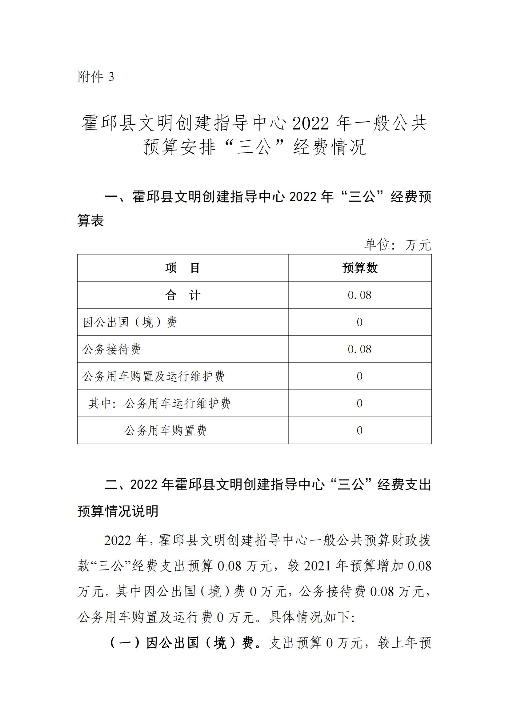 霍邱县文明创建指导中心2022年一般公共预算安排“三公”经费情况