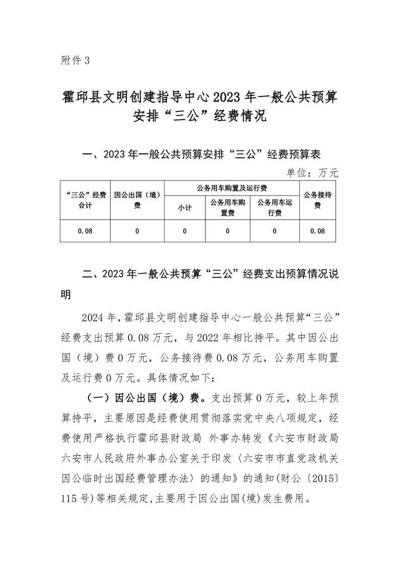 文明创建中心2023年部门单位一般公共预算安排“三公”经费情况公开