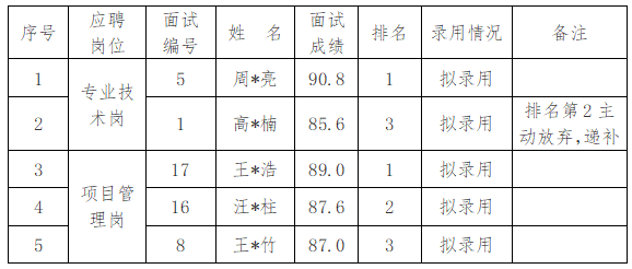 经发布招聘公告、网上报名、资格审查、面试、体检、考察等程序,现将安徽衡安建设工程有限公司2025年第一批社会招聘专业技术人员拟录用人员结果予以公示,公示时间为2025年12月25日至2025年12月29日。期间,如对公示结果有异议,可以向安徽衡安建设工程有限公司反映。
