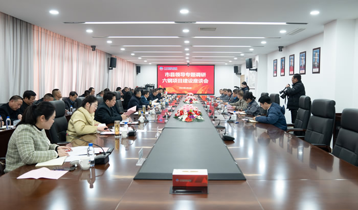 2023年2月4日,副市长、县委书记李煜率队调研六安钢铁控股集团重点项目建设工作并召开座谈会。县长韦能武,县人大常委会主任王俊,县委副书记、城关镇党委书记刘博,县委常委、常务副县长沈勇,县委常委、县委办主任李跃,副县长张彦、毛玲霞、唐明,县政协副主席徐丽,六安钢铁控股集团党委书记、董事长王建兵,党委副书记、行政总裁光超,副总裁、项目总指挥李伟,以及县直有关单位、有关乡镇、经济开发区主要负责人参加座谈会。