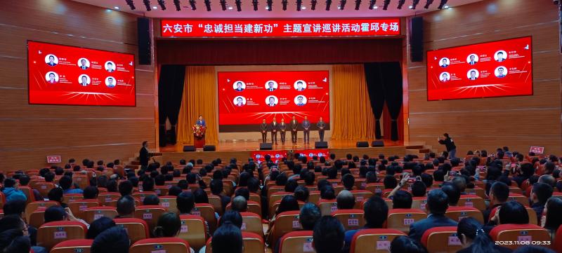 2023年11月8日,六安市“忠诚担当建新功”主题宣讲巡讲活动专场报告会在我县举行。市委讲师团团长、市红色资源保护利用中心主任孙炜,县委副书记、城关镇党委书记刘博,及各乡镇、县直各单位党员干部500多人聆听报告。